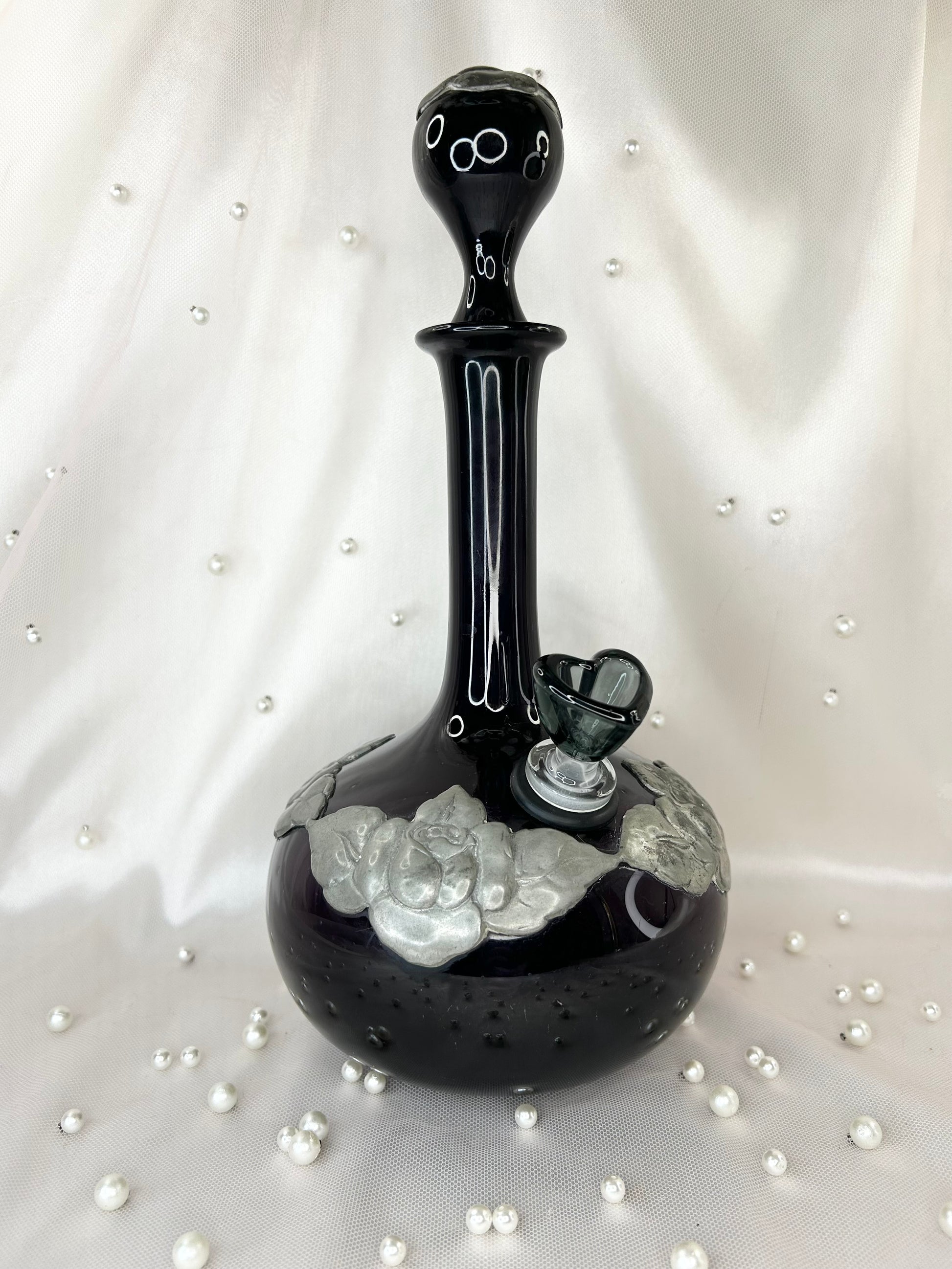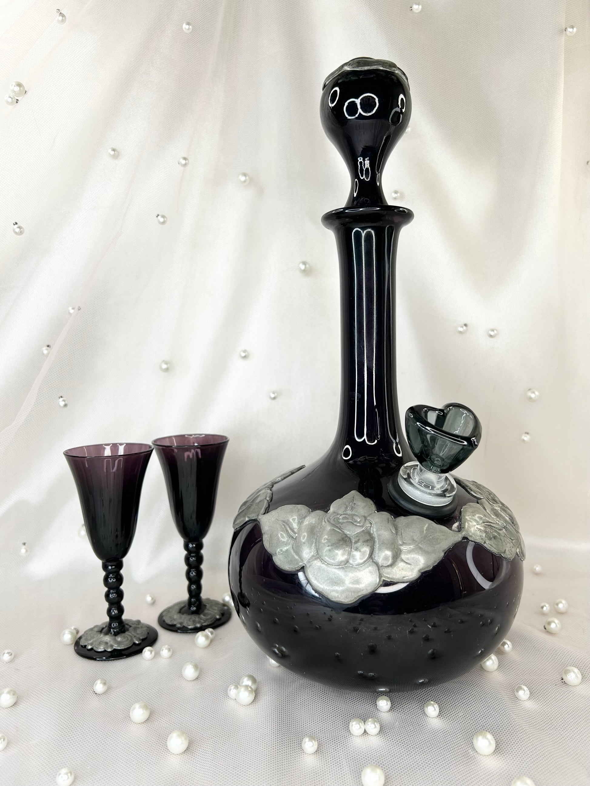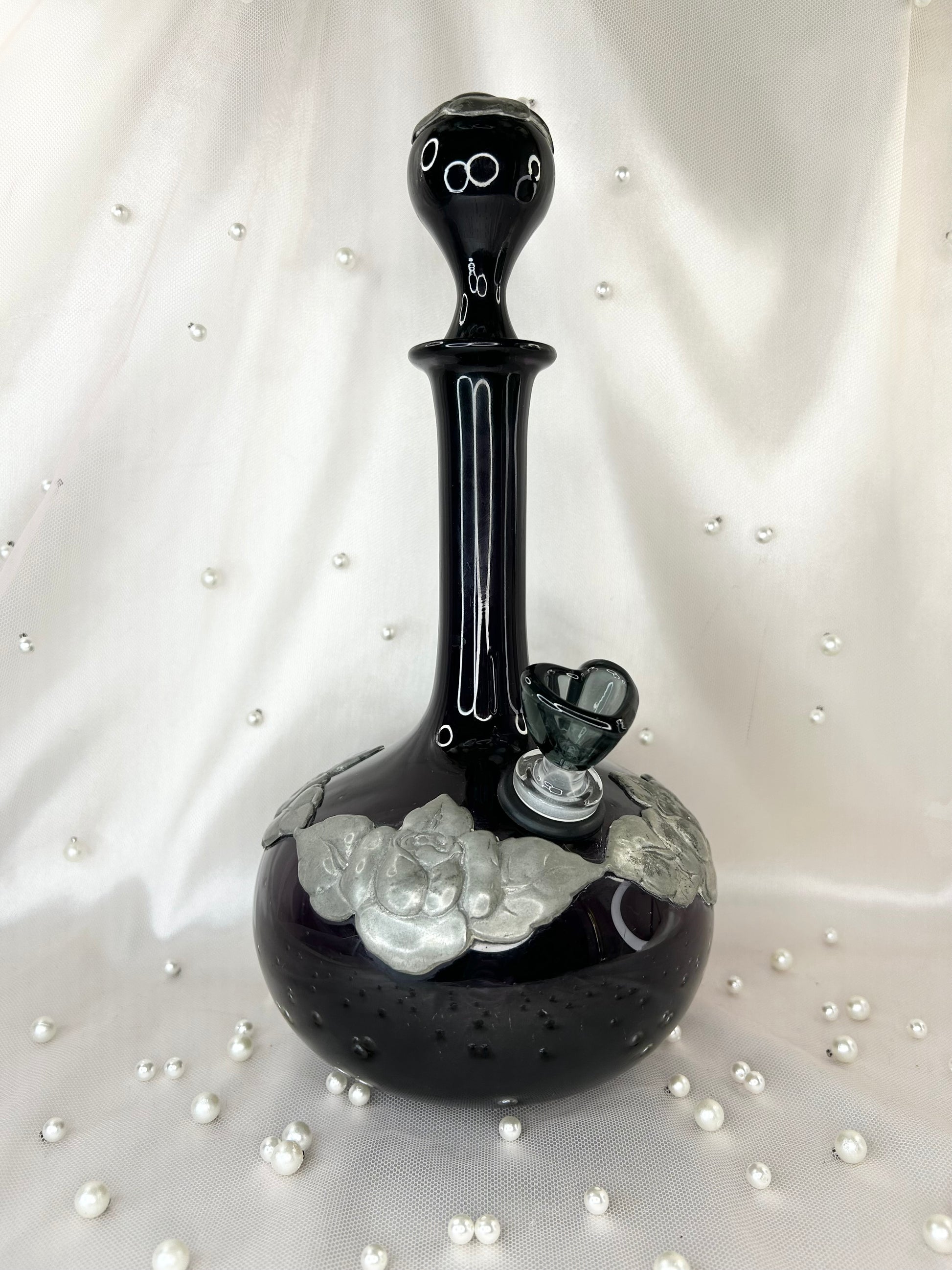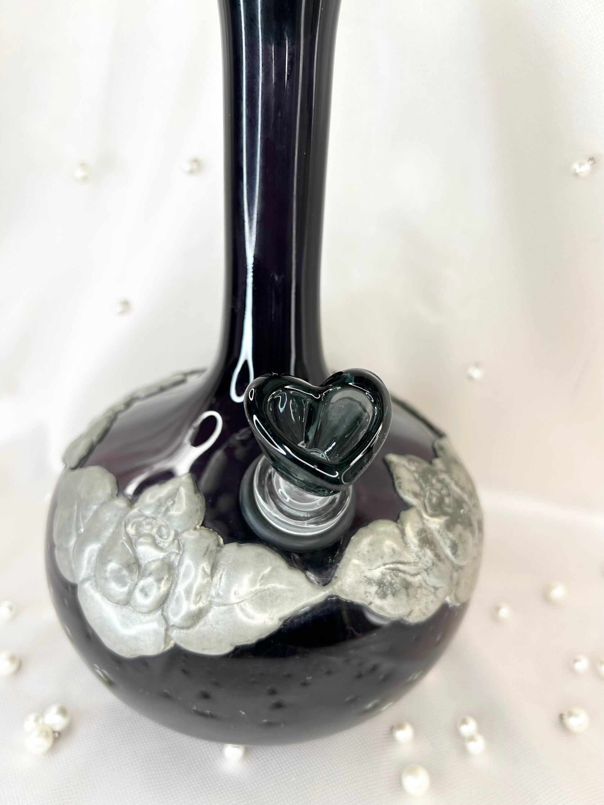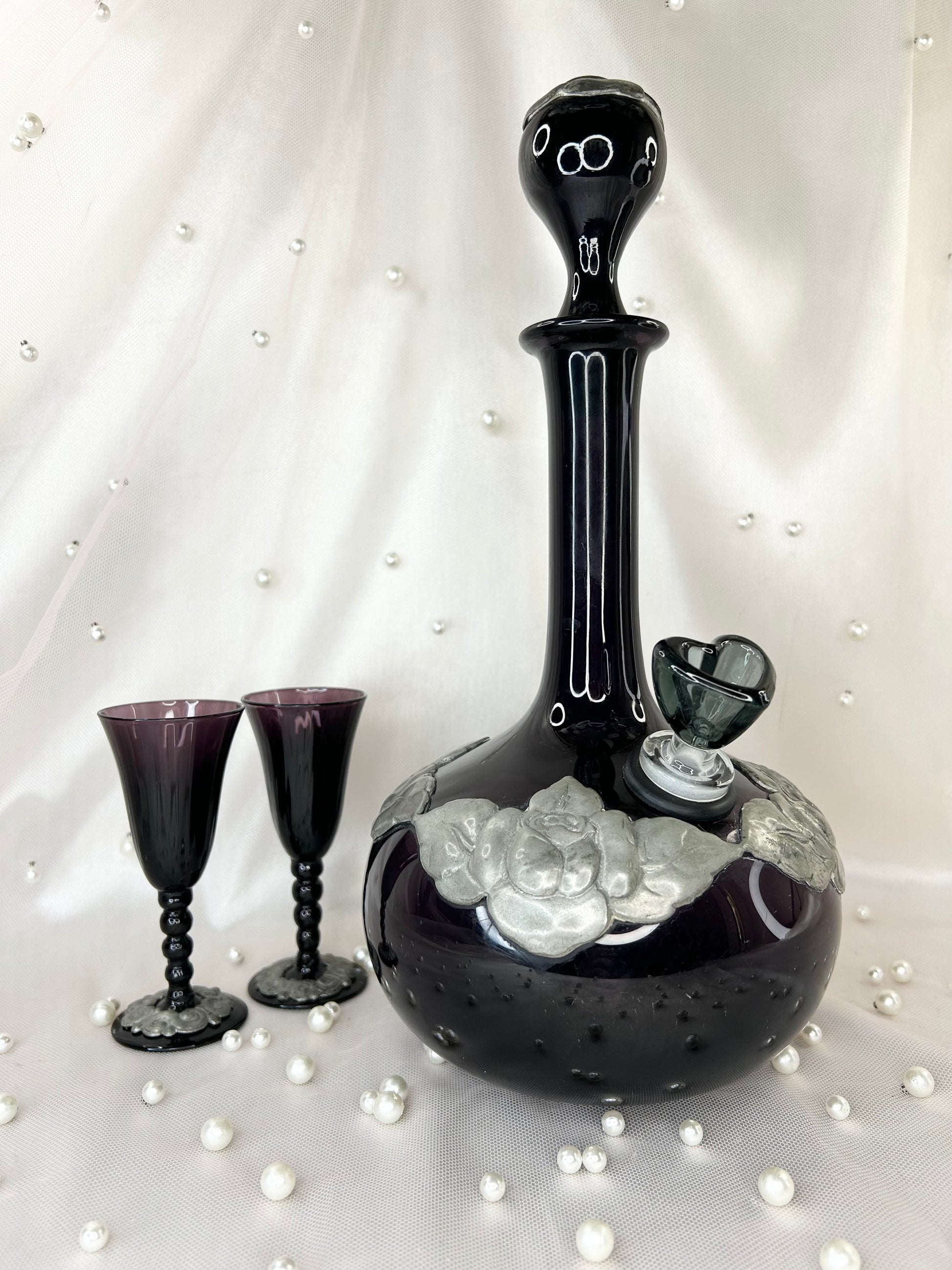 • Includes 14mm black heart glass bowl piece, bong and two matching cordials