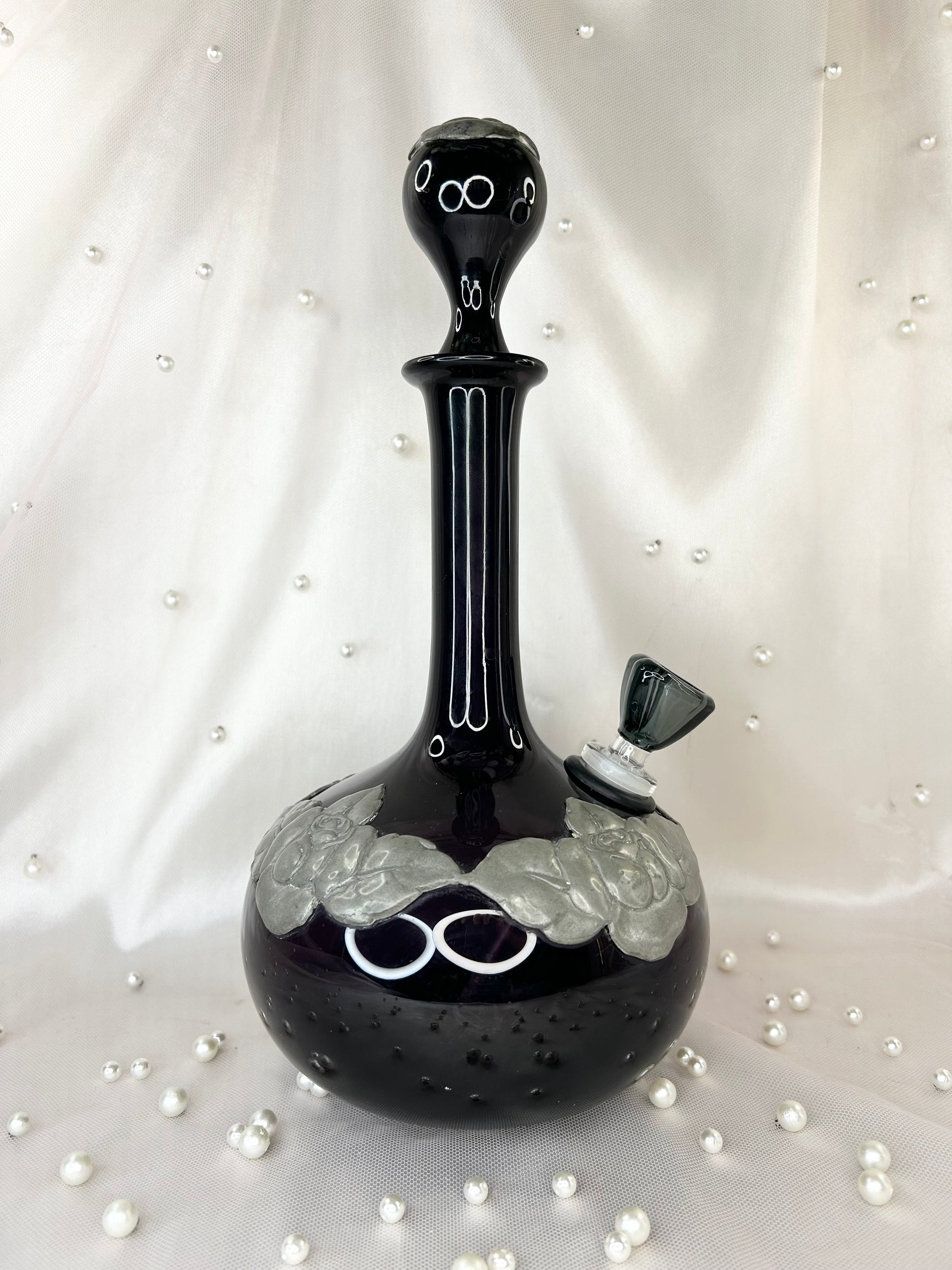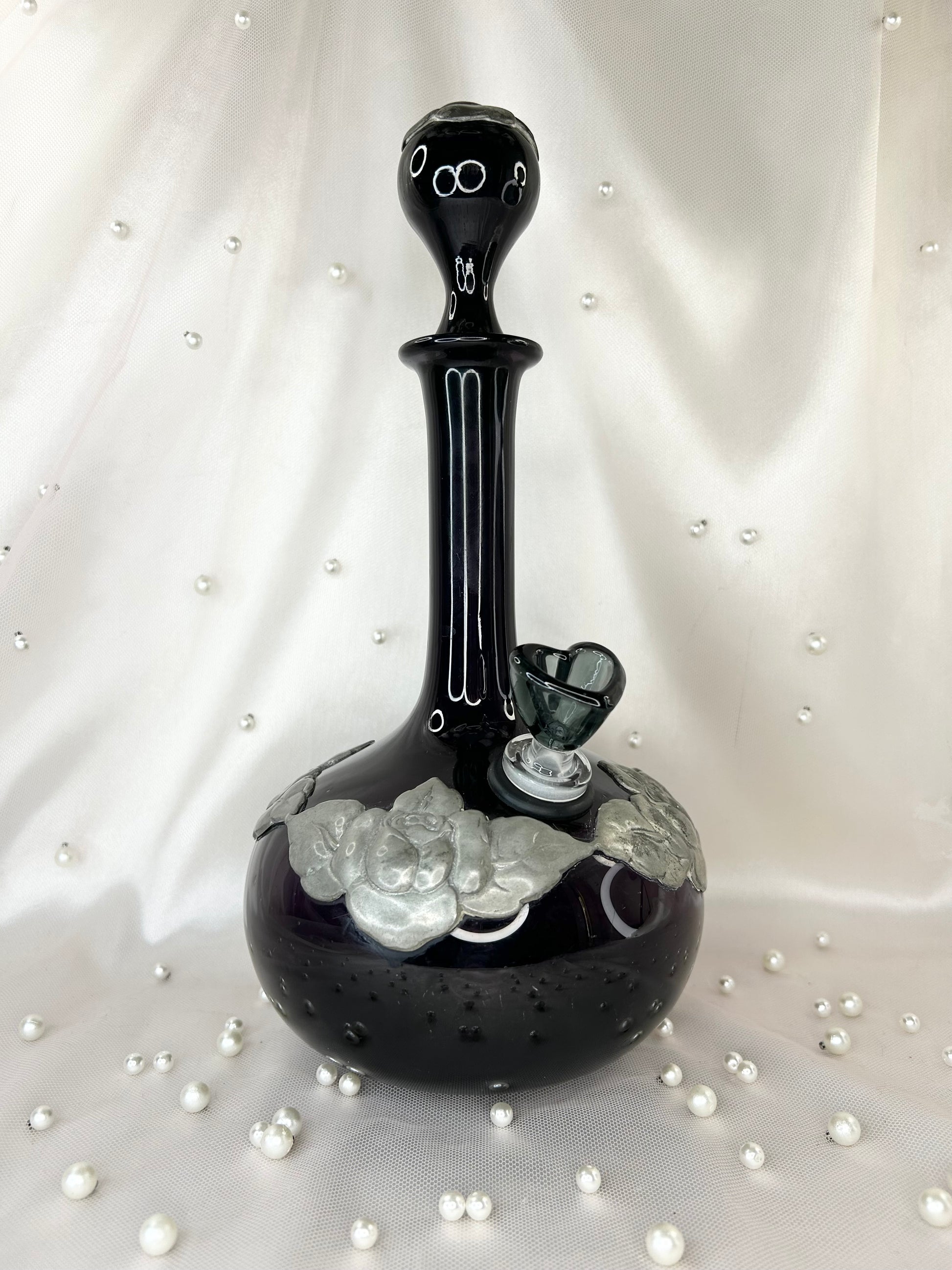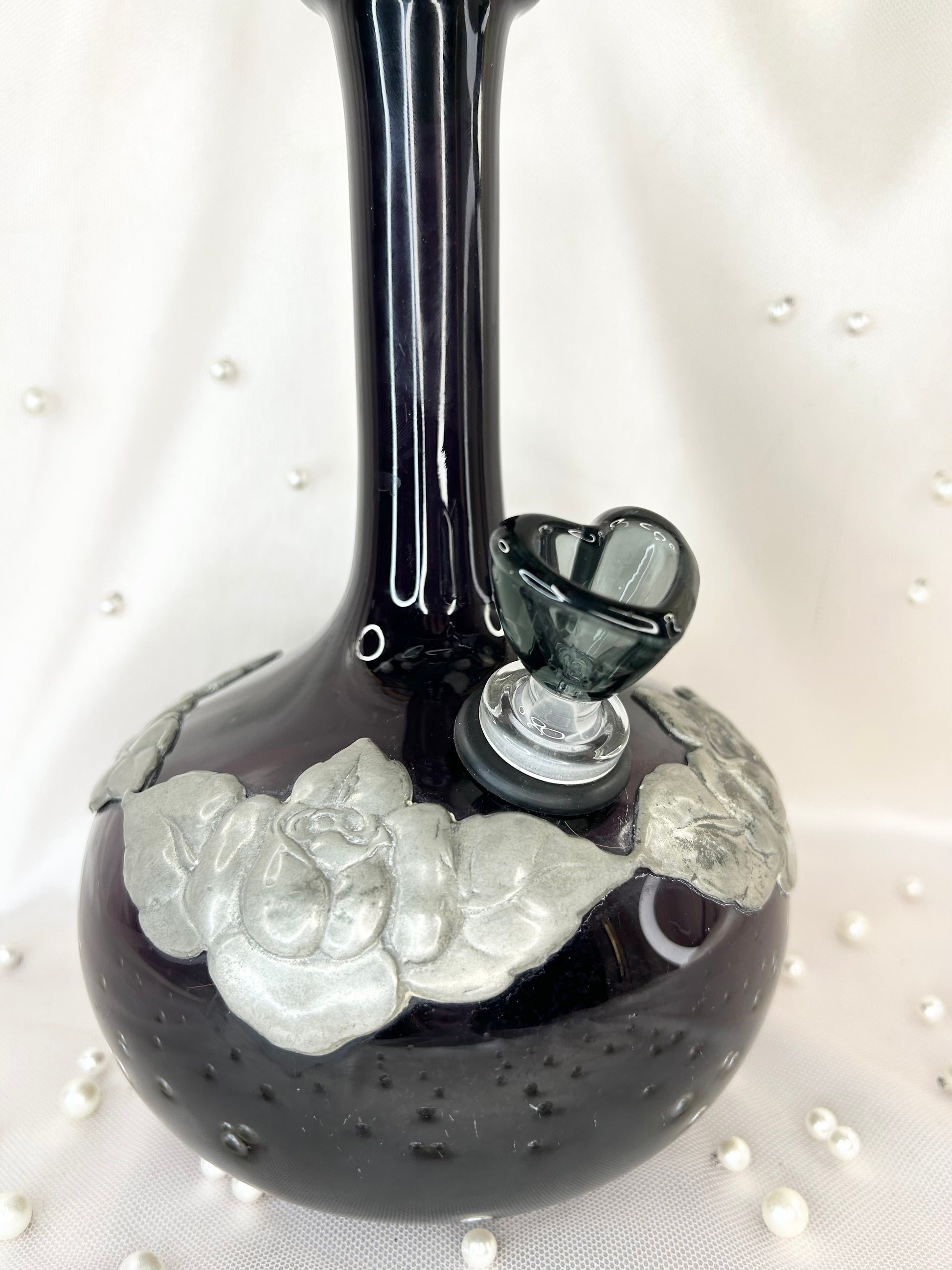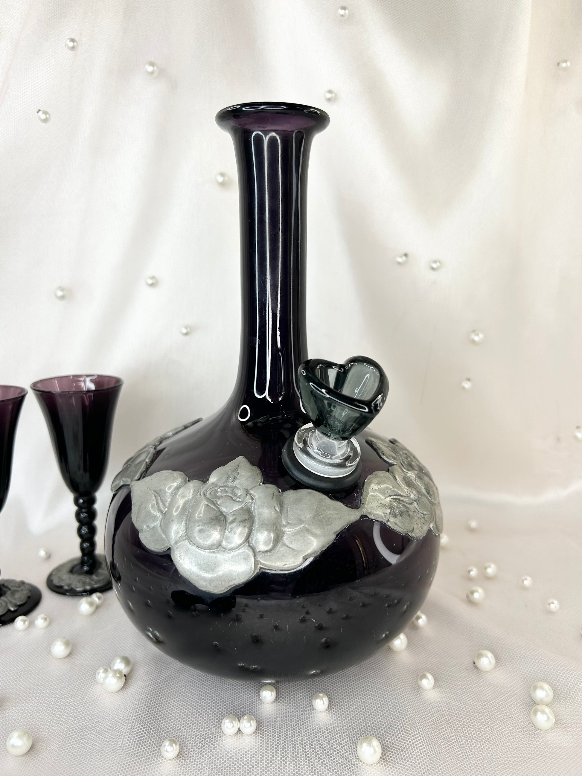 • Includes 14mm black heart glass bowl piece, bong and two matching cordials