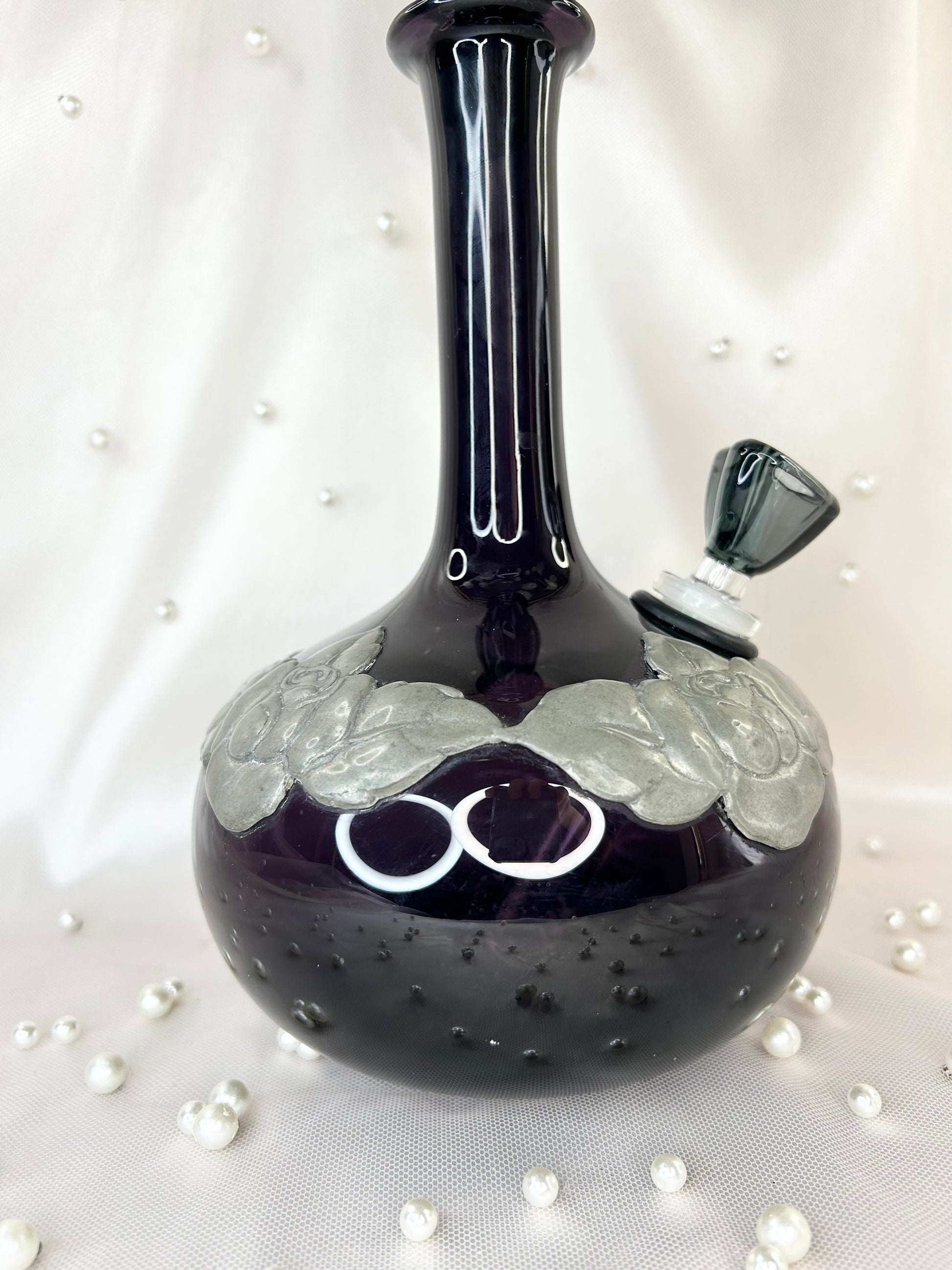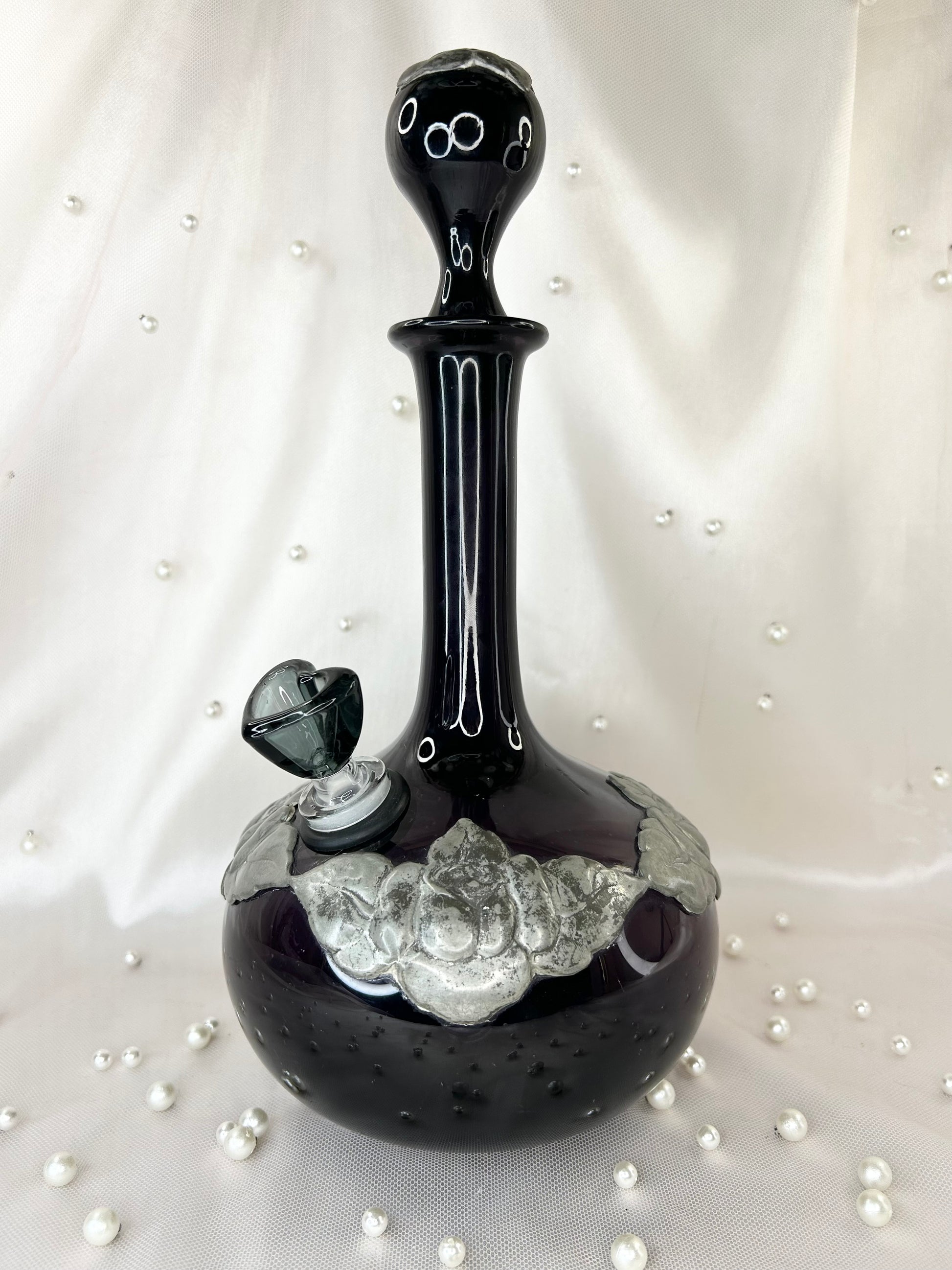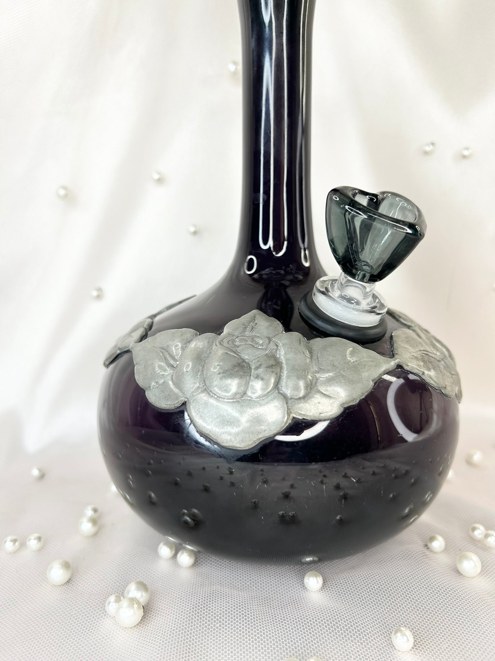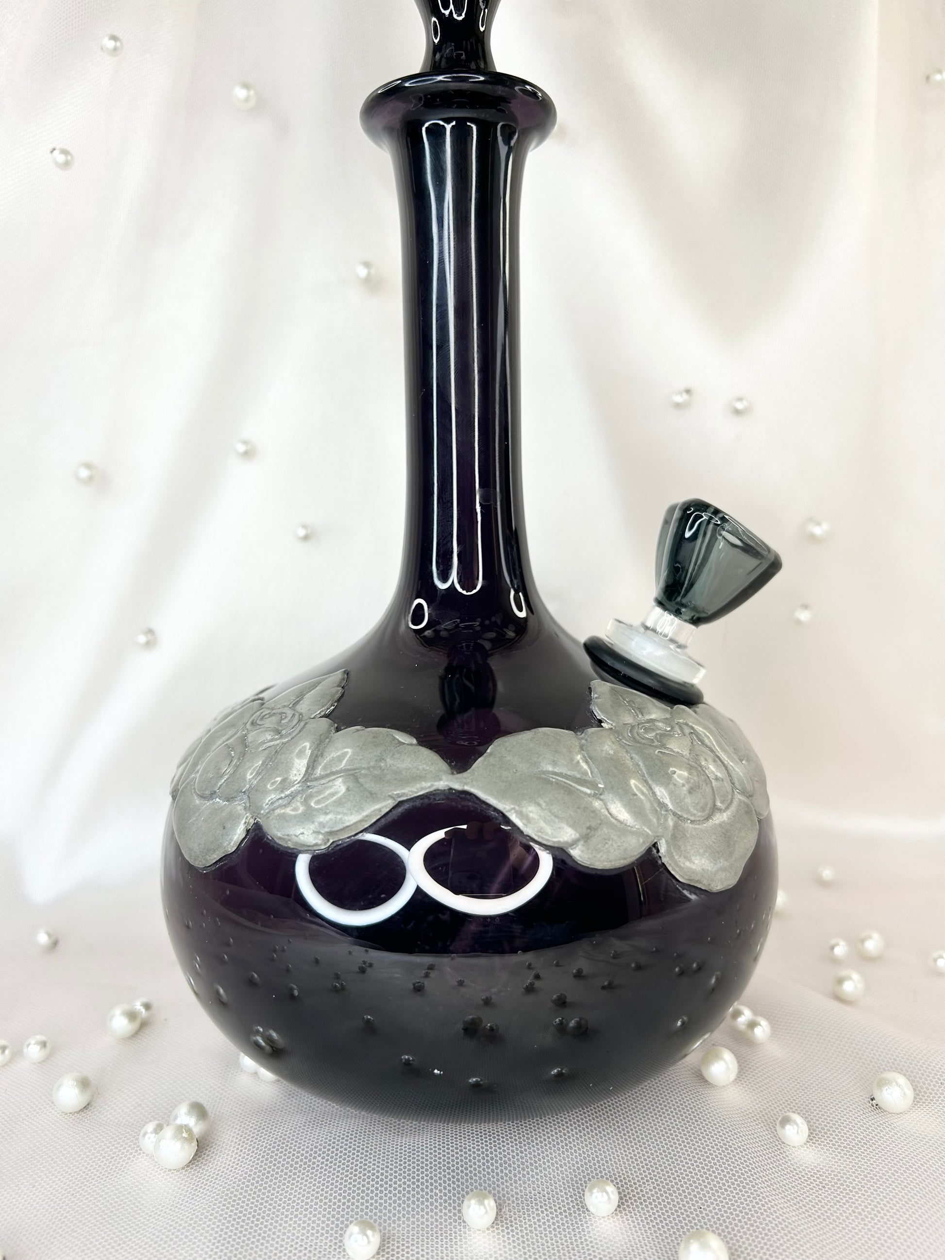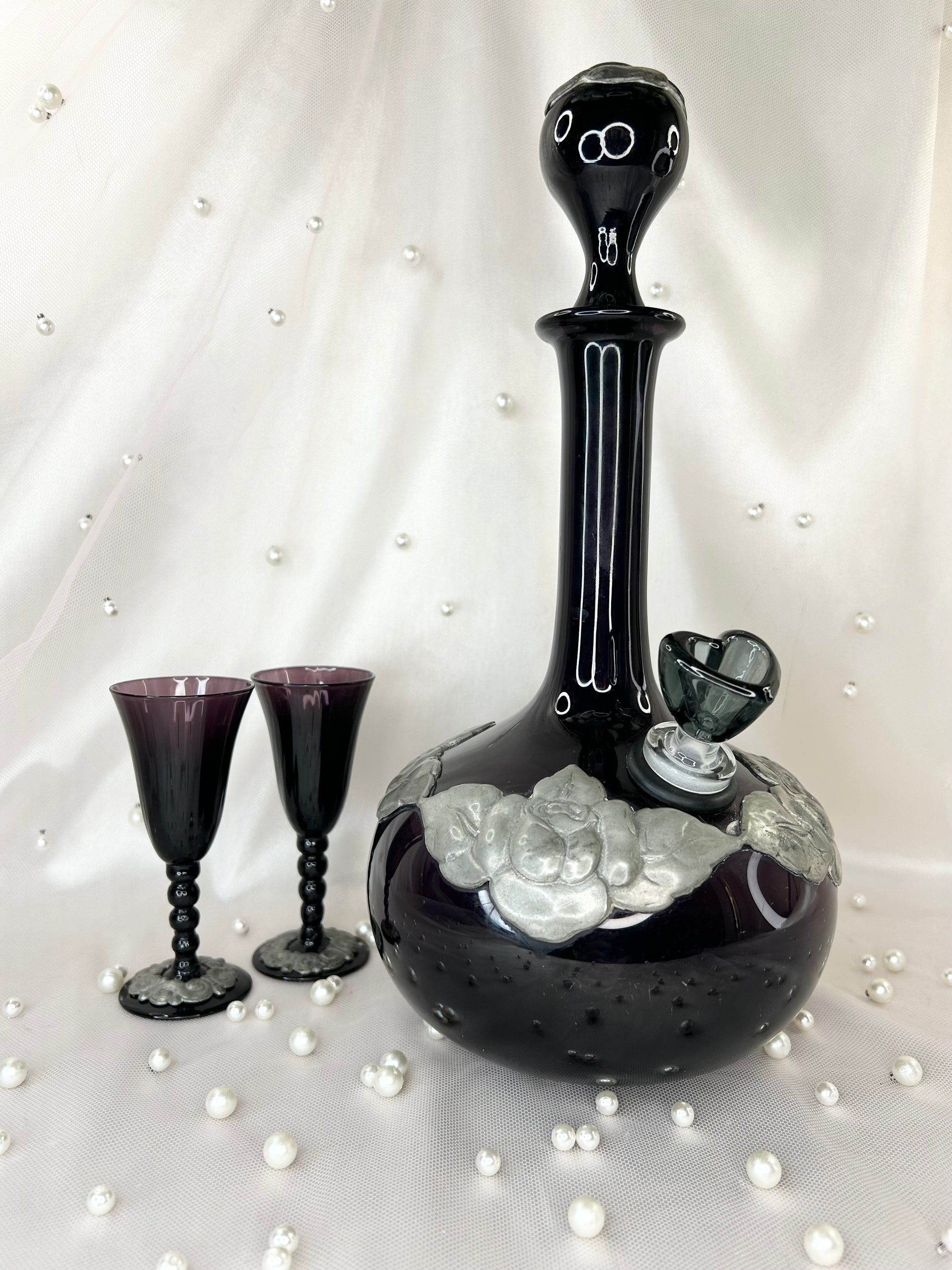 • Includes 14mm black heart glass bowl piece, bong and two matching cordials