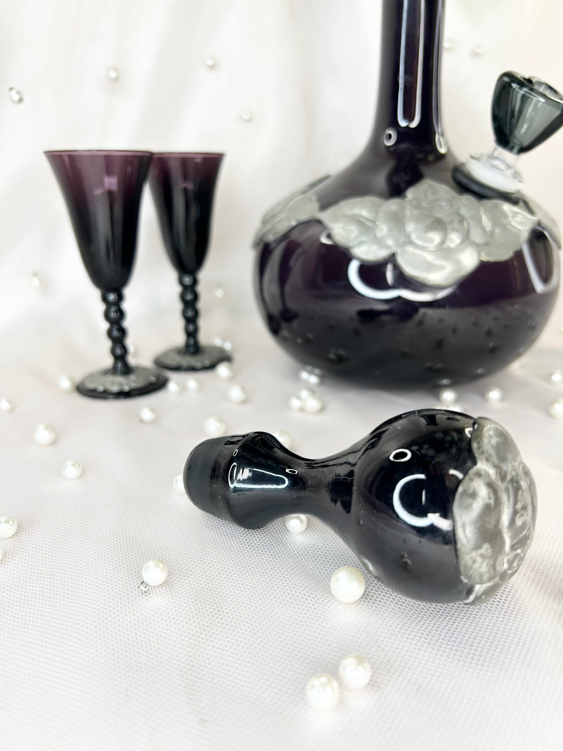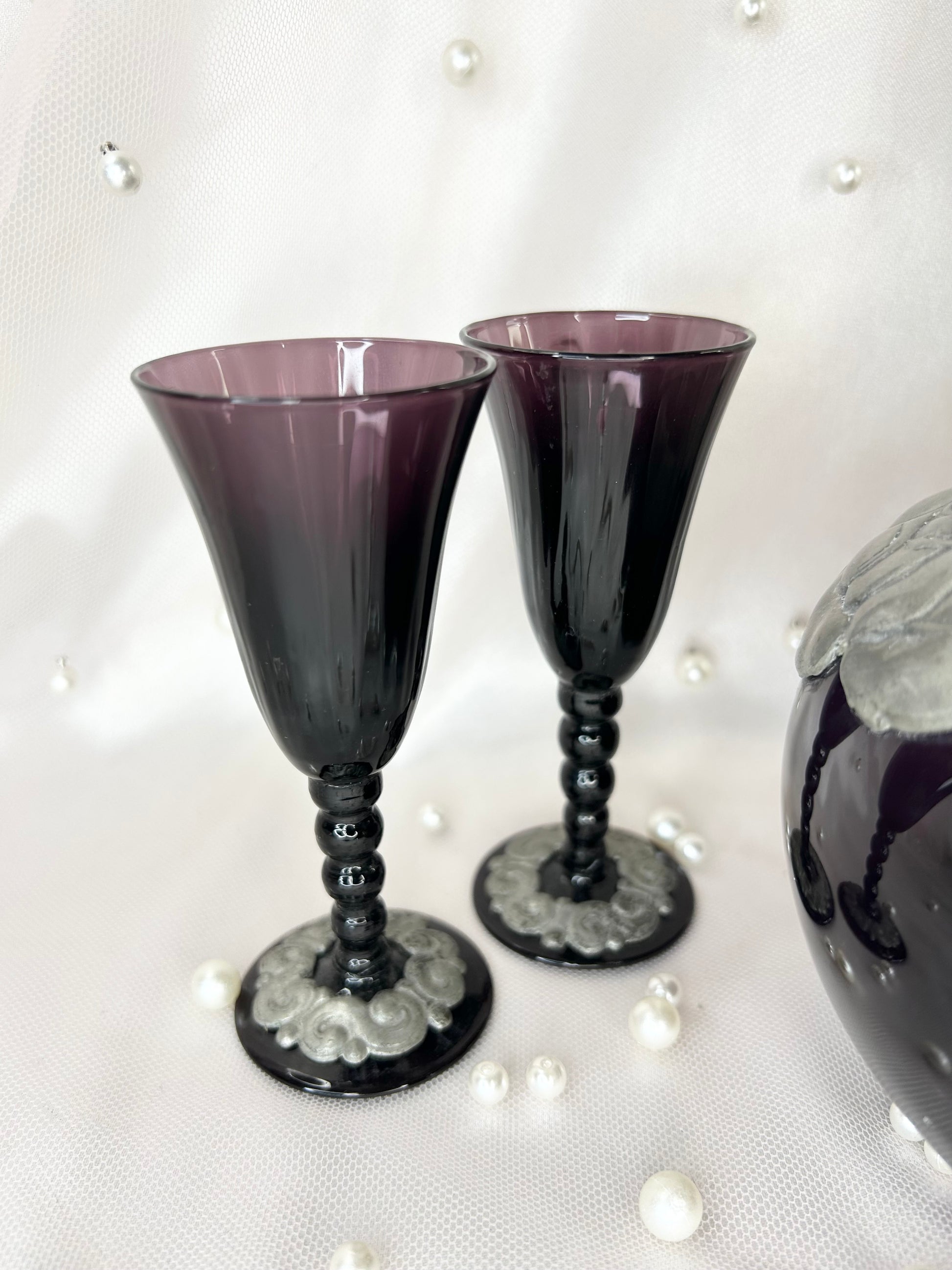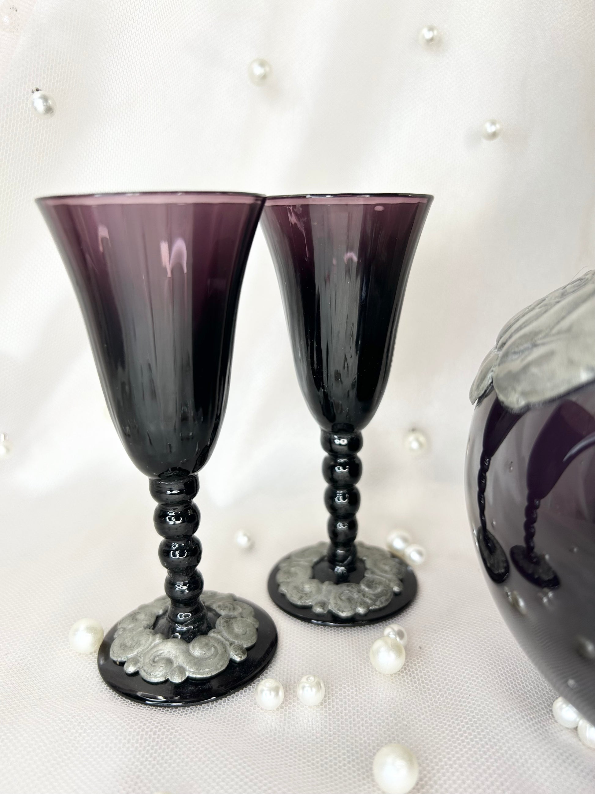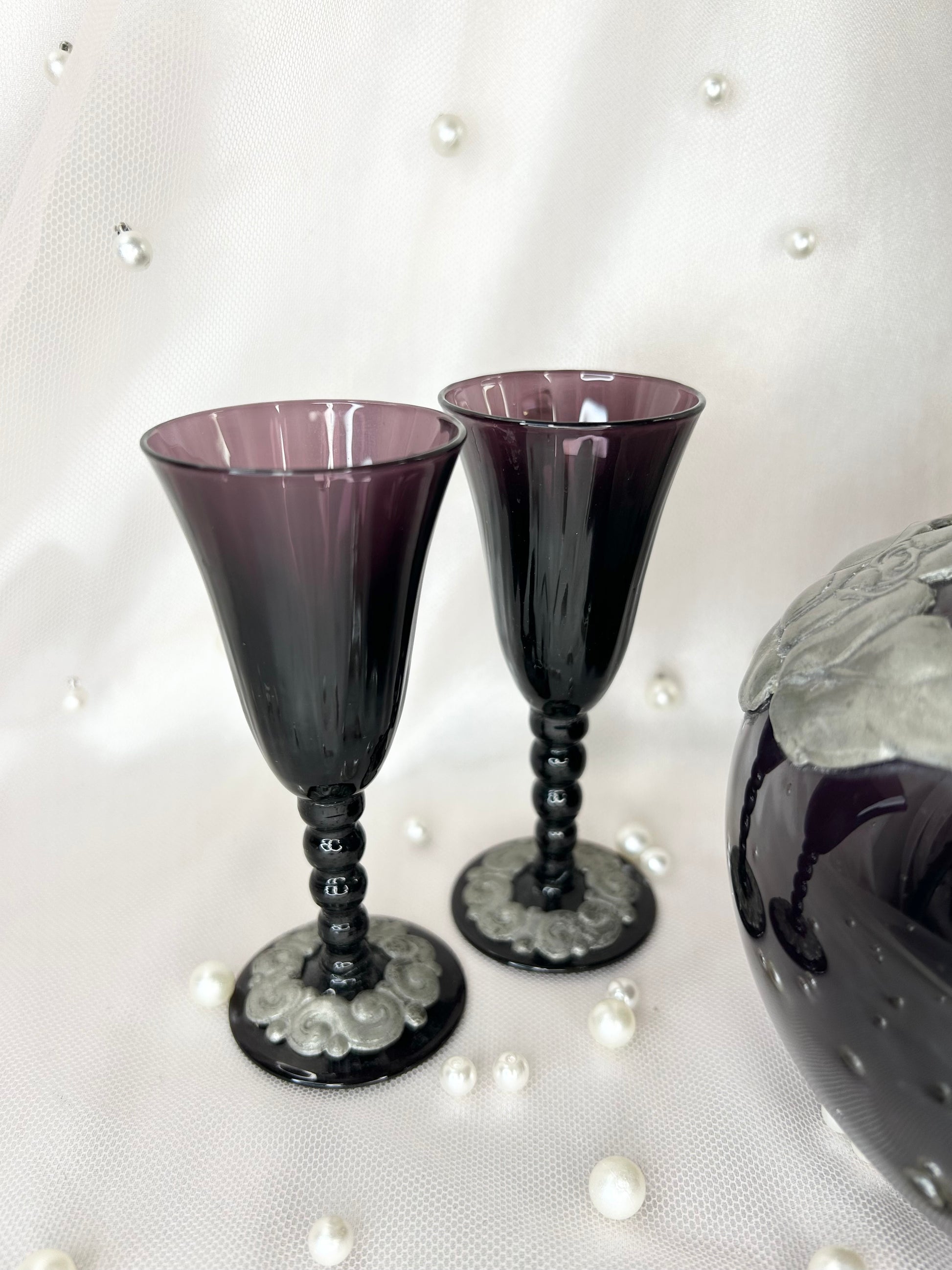 • Includes 14mm black heart glass bowl piece, bong and two matching cordials