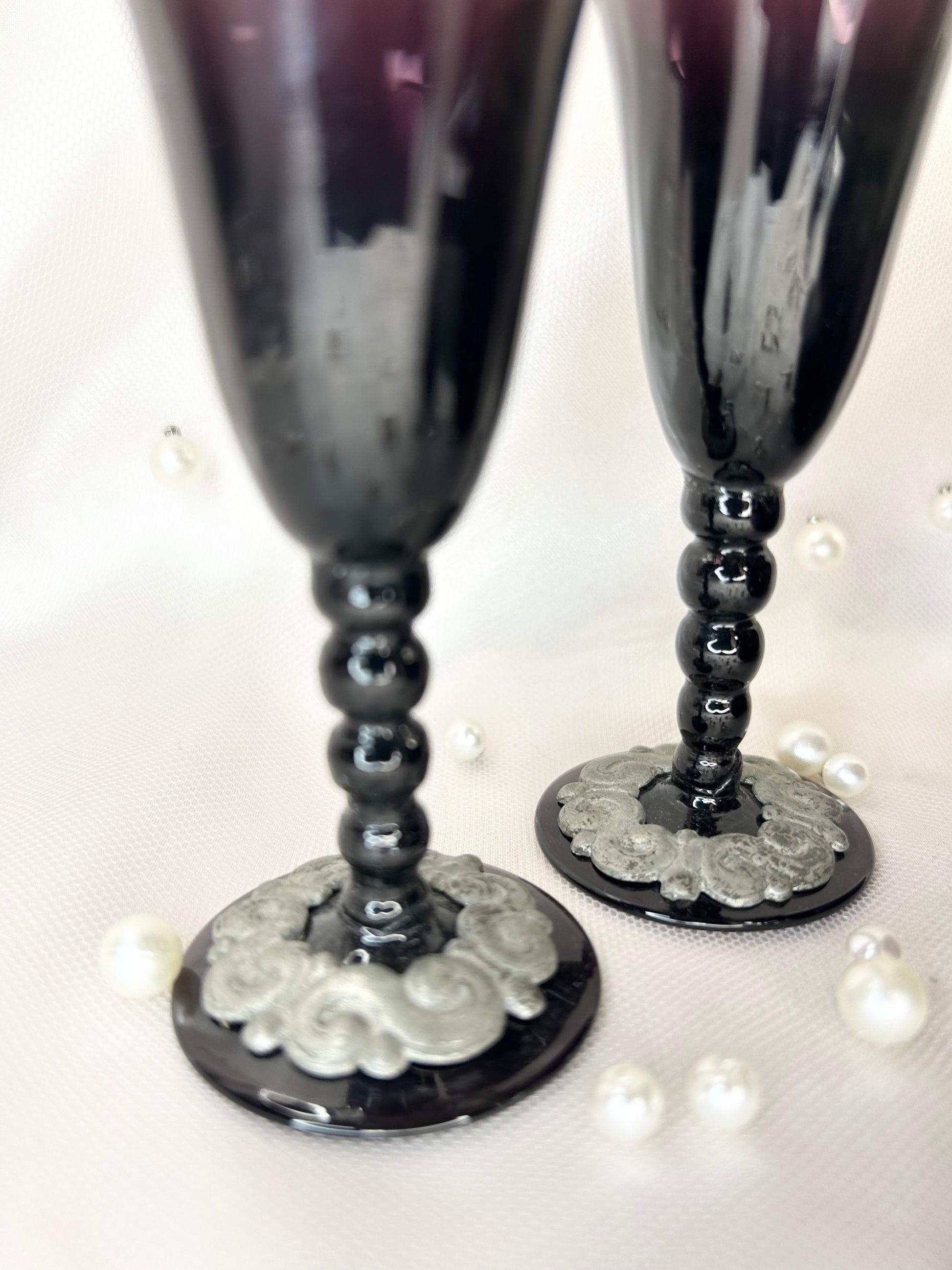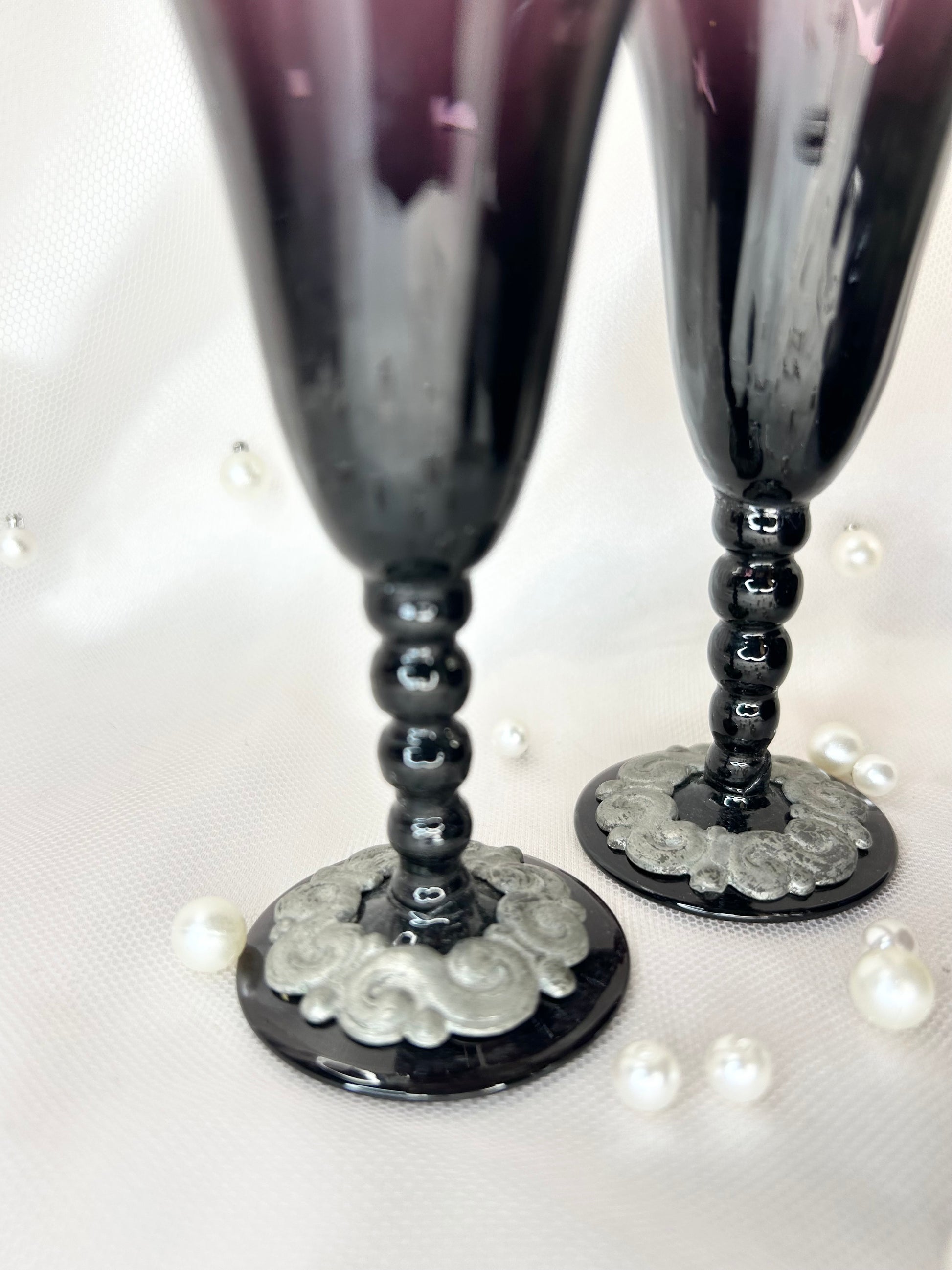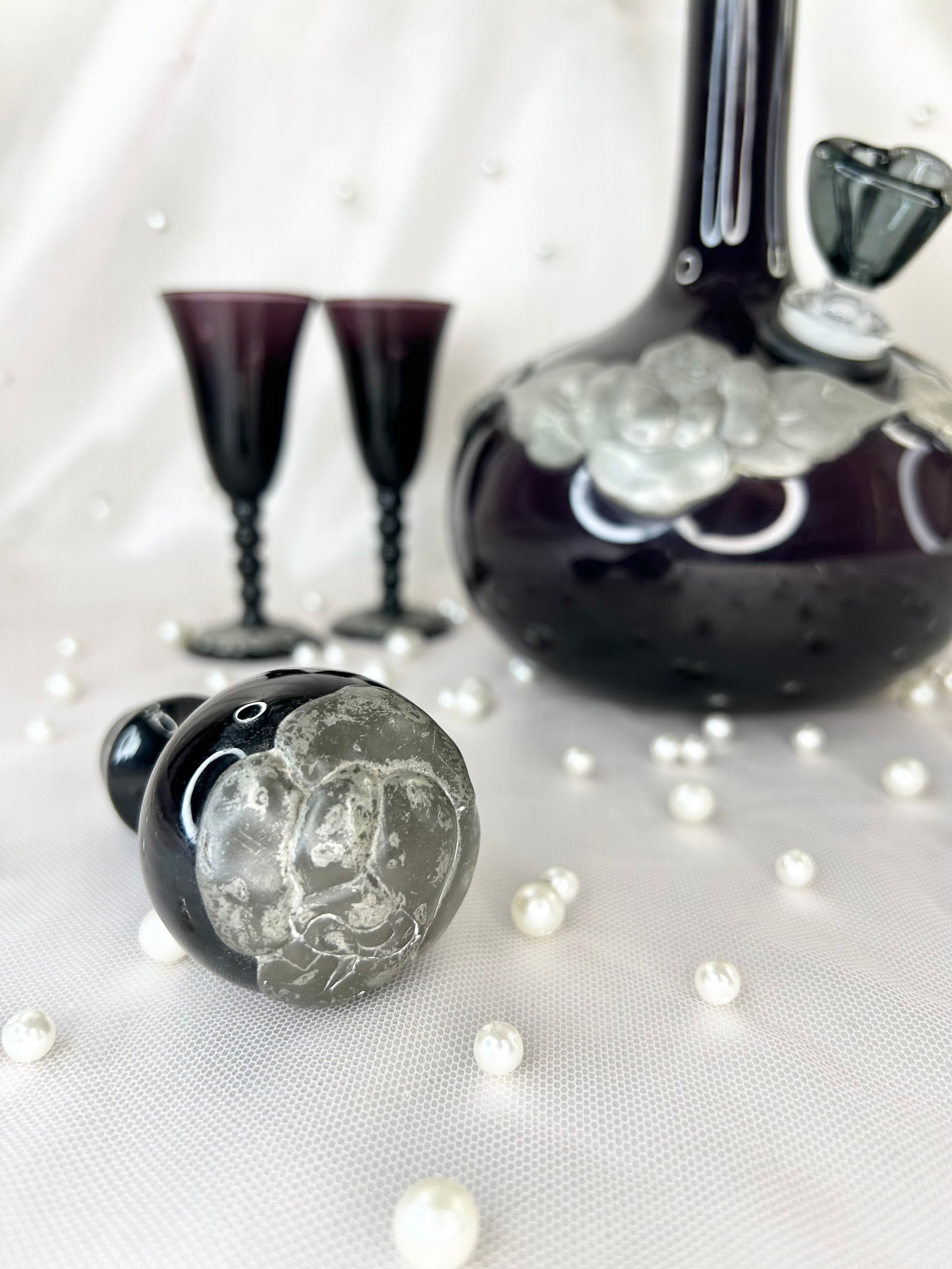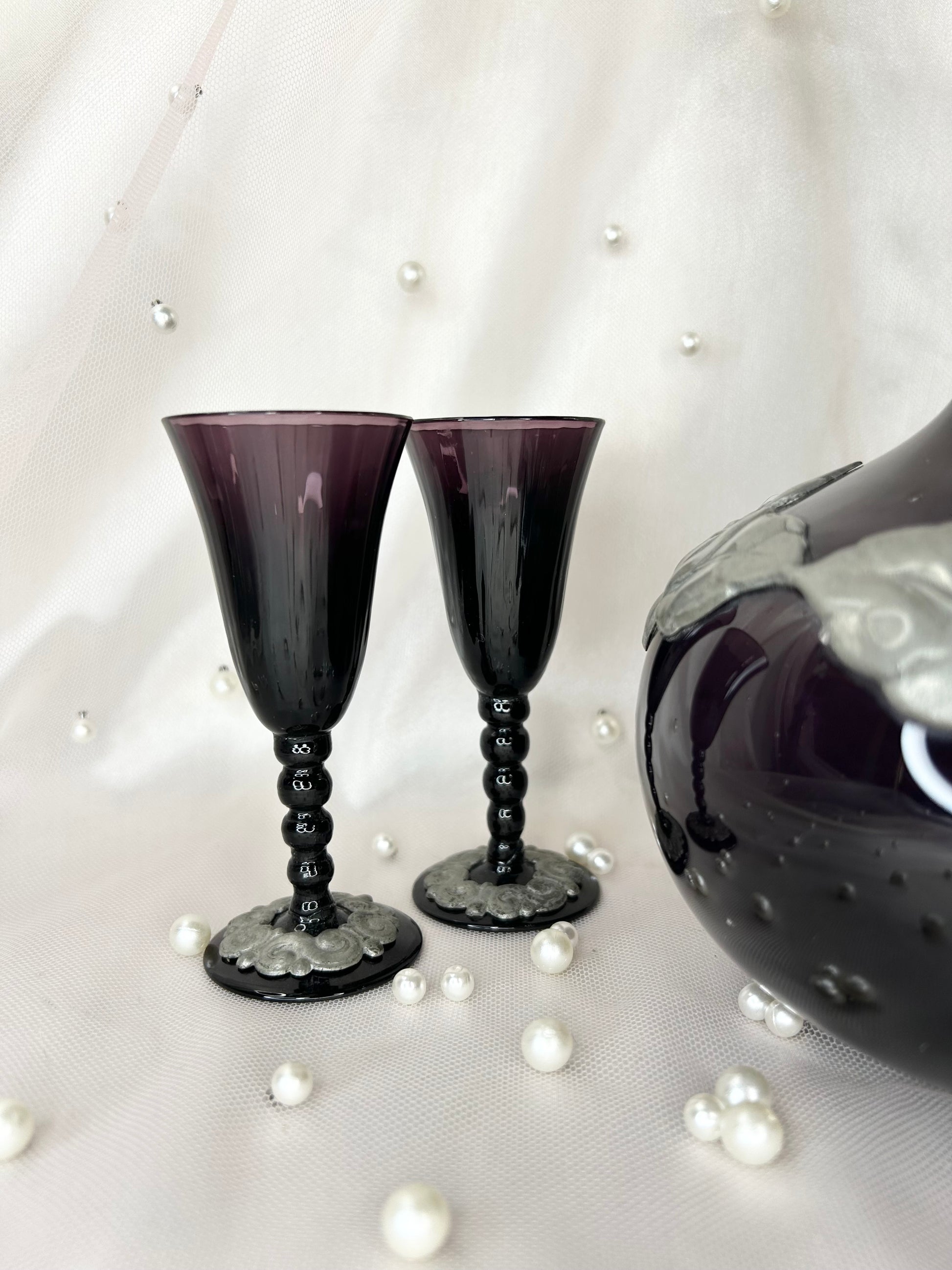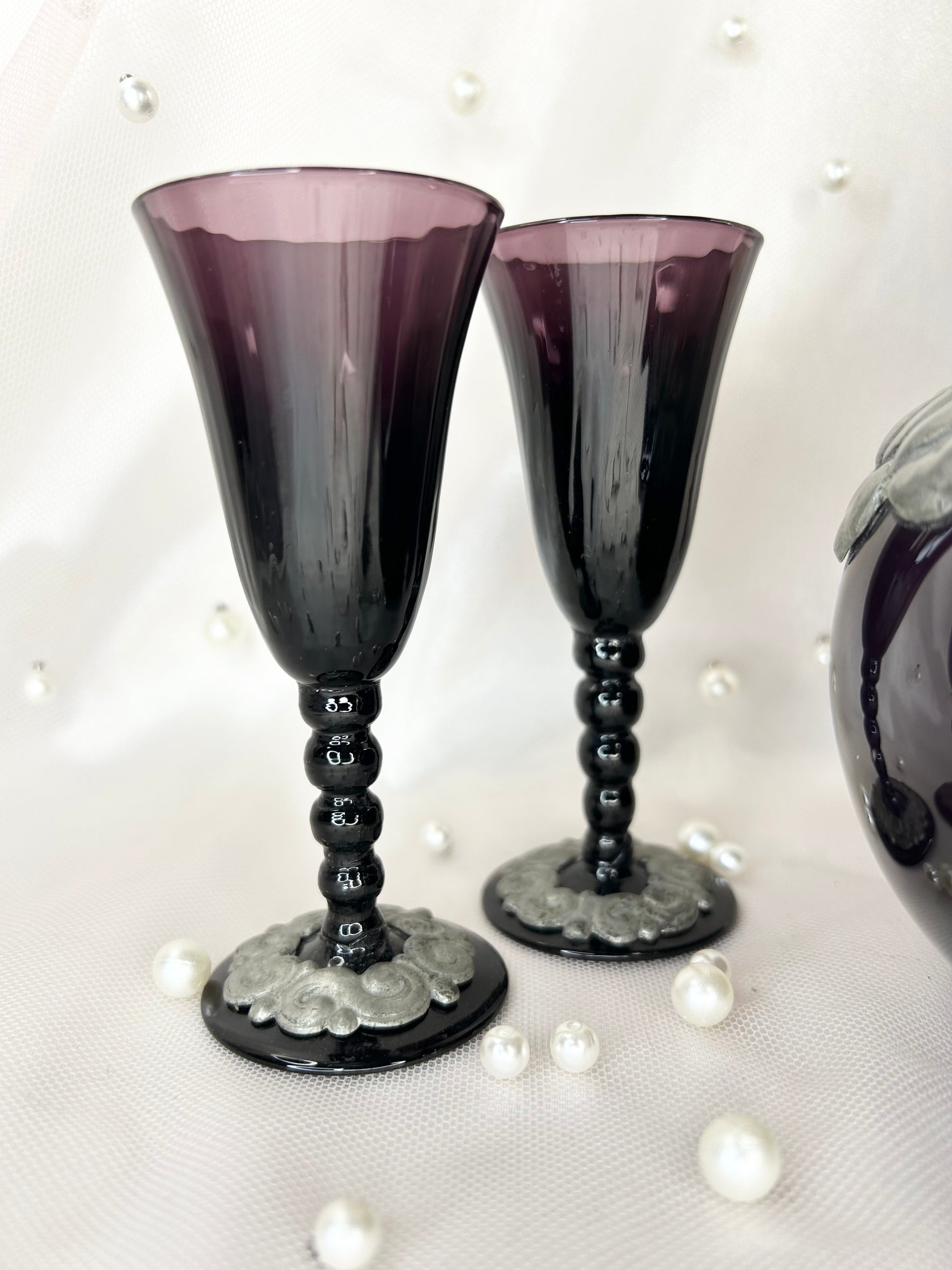 • Includes 14mm black heart glass bowl piece, bong and two matching cordials