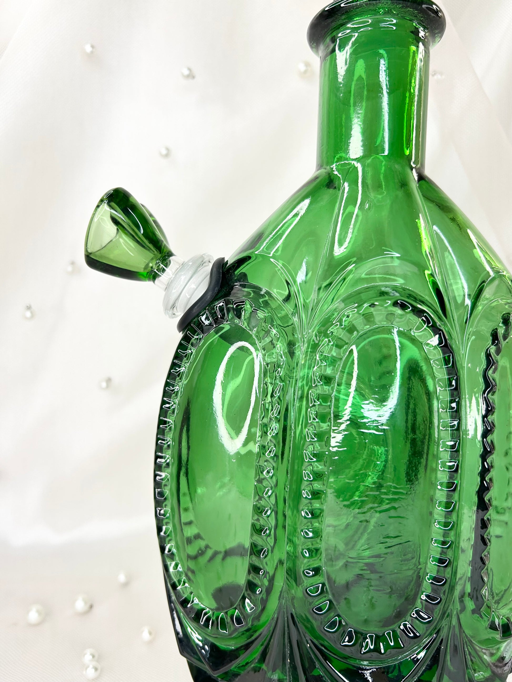 - Made of green glass