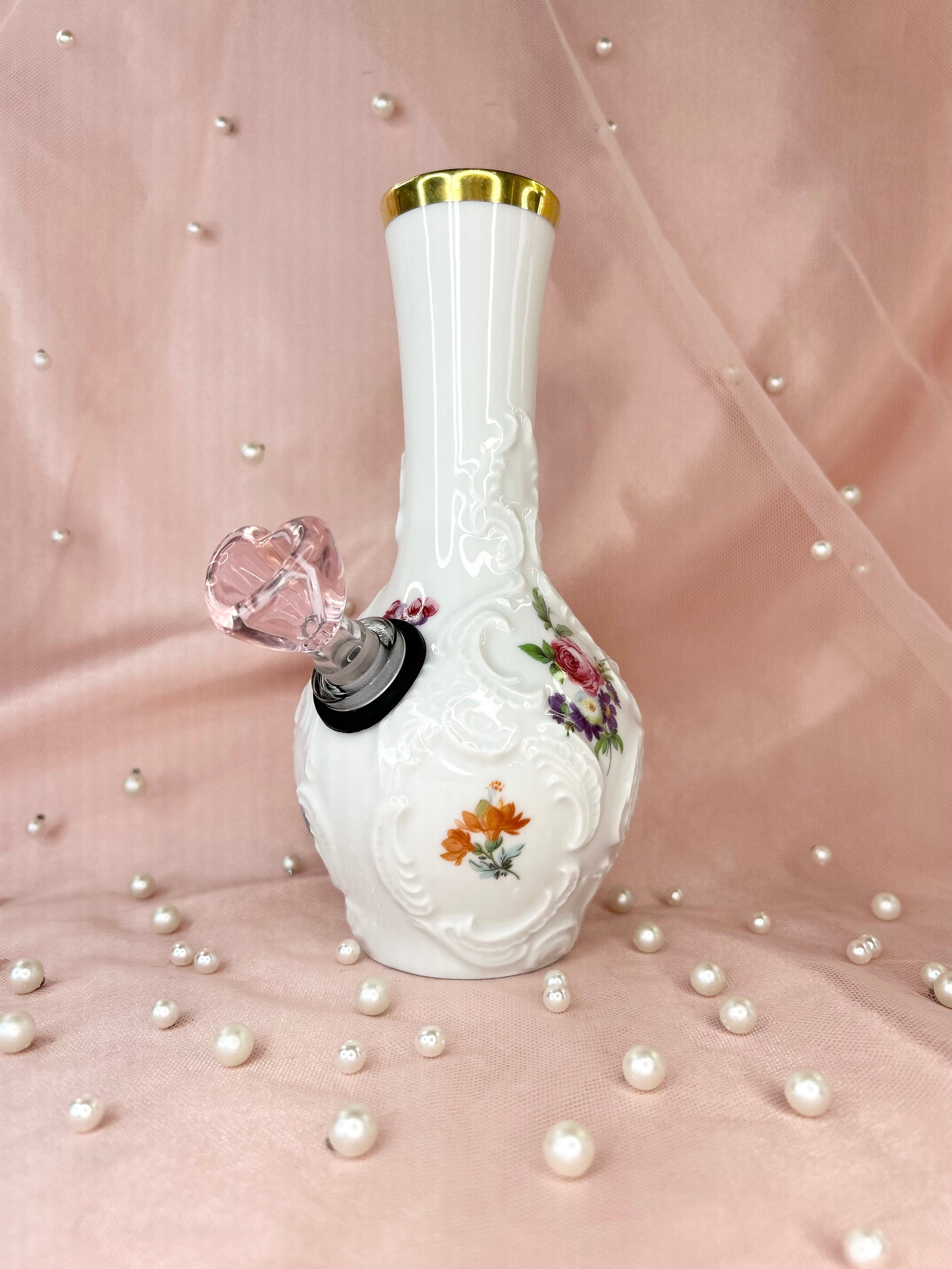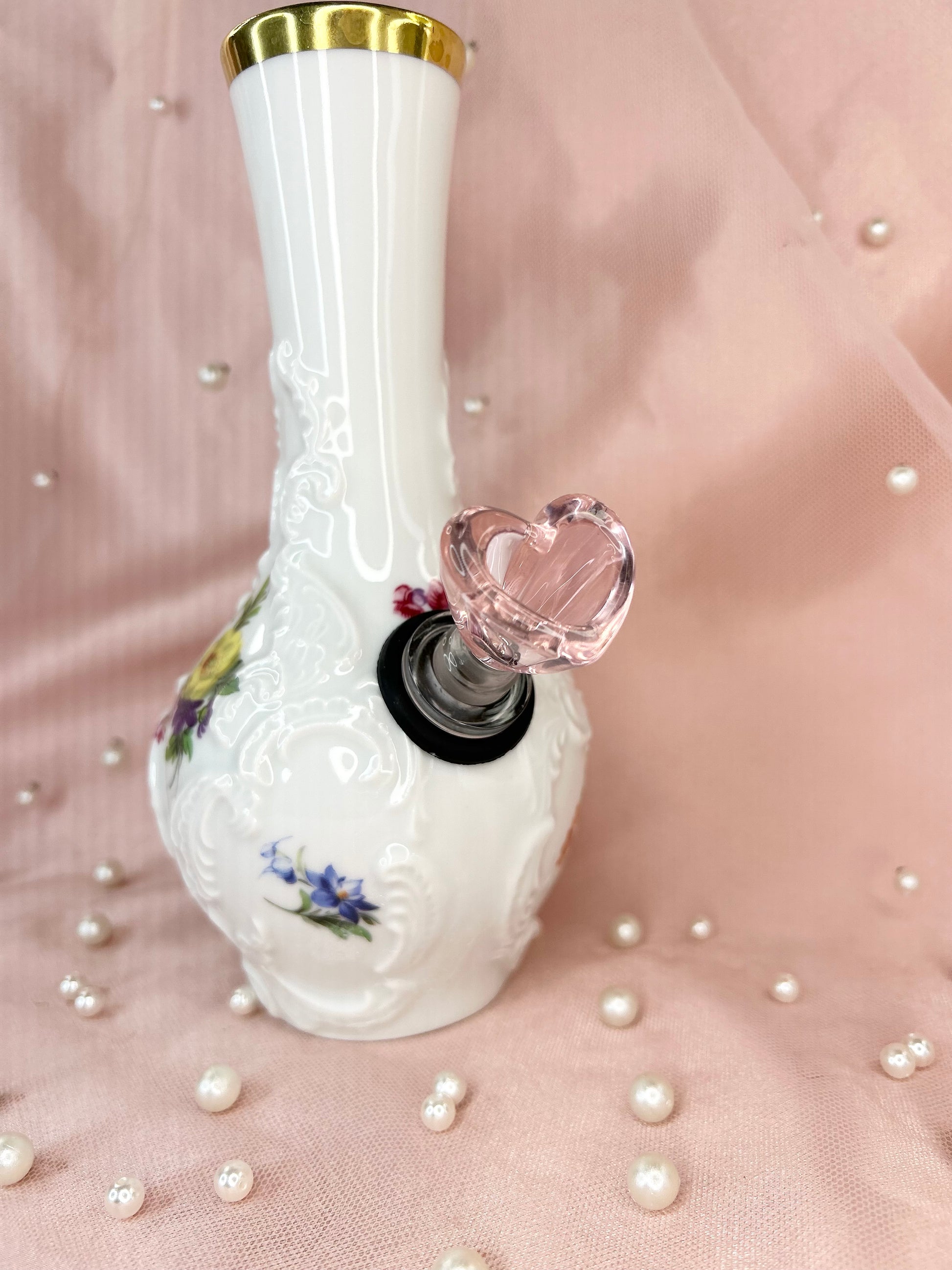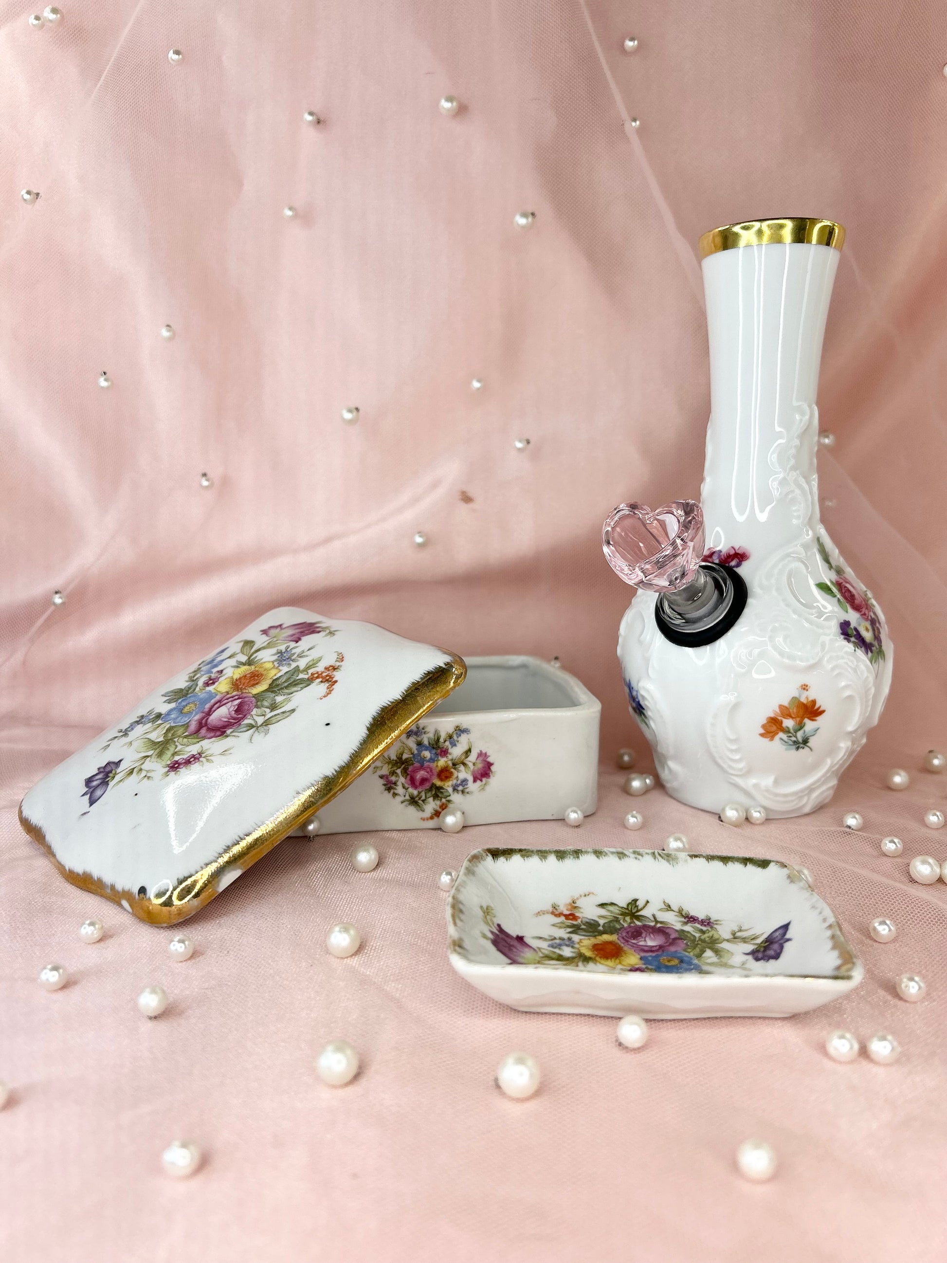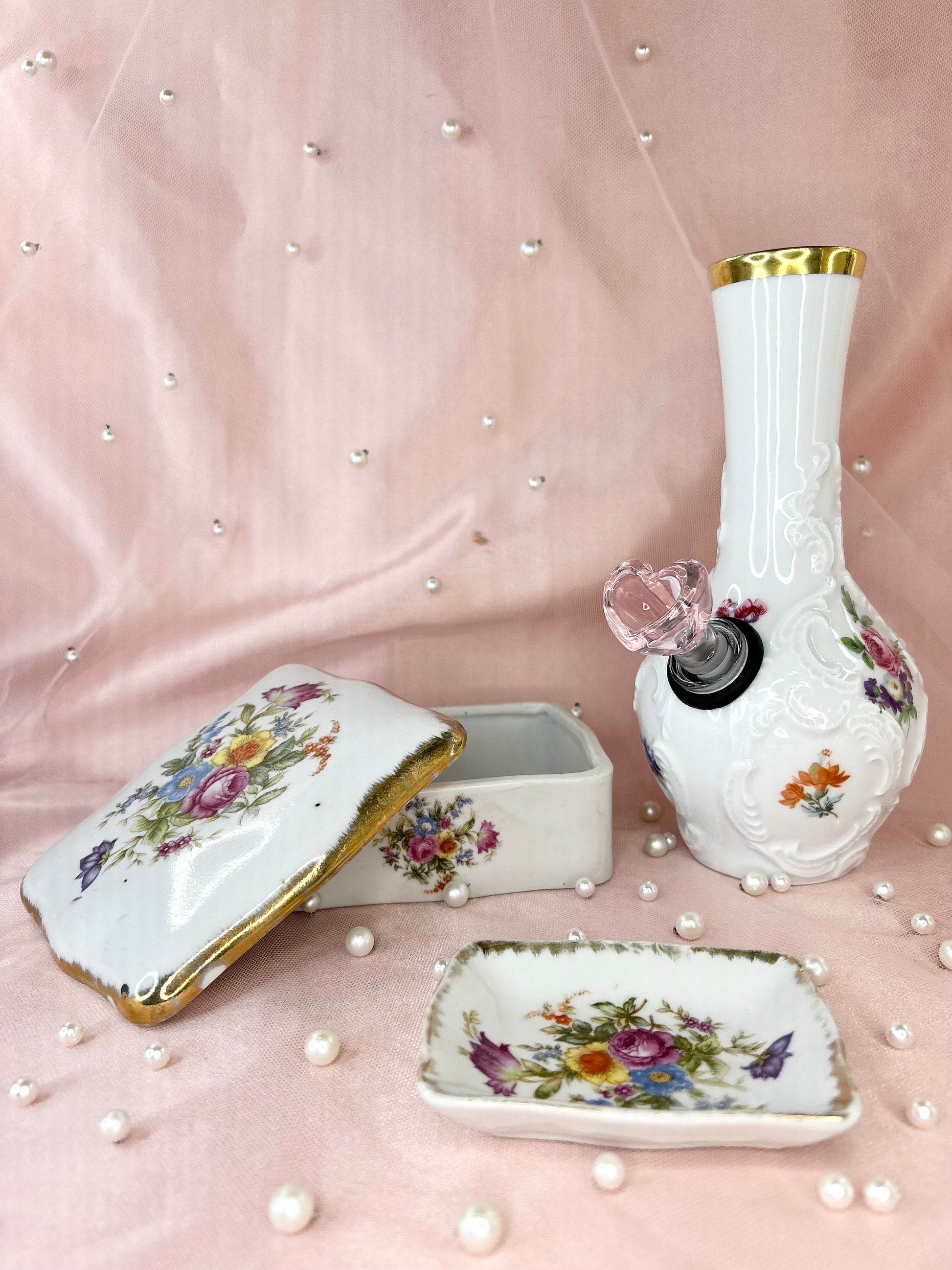 - Includes 14mm pink glass heart bowl piece, bong, ashtray and matching box