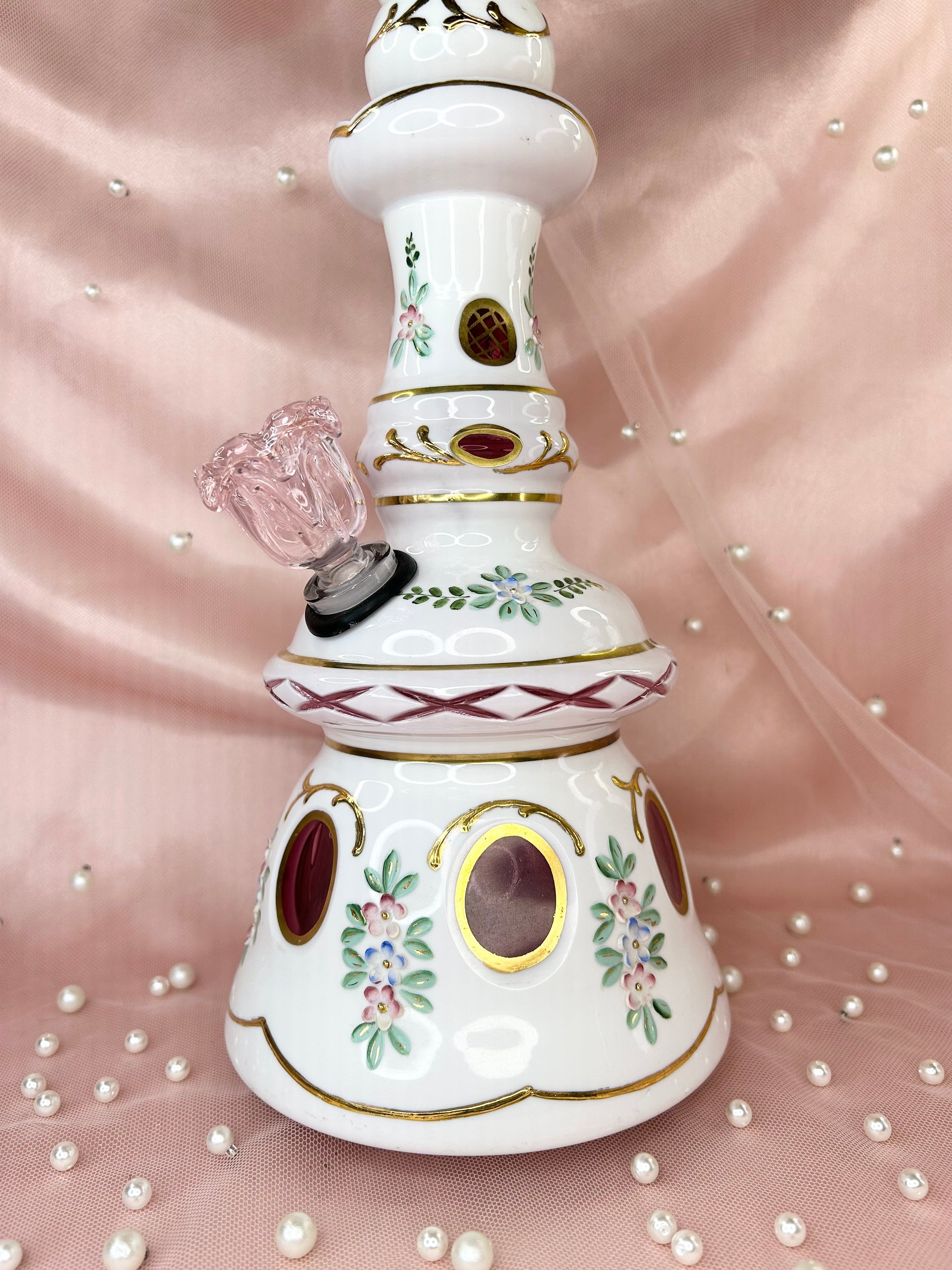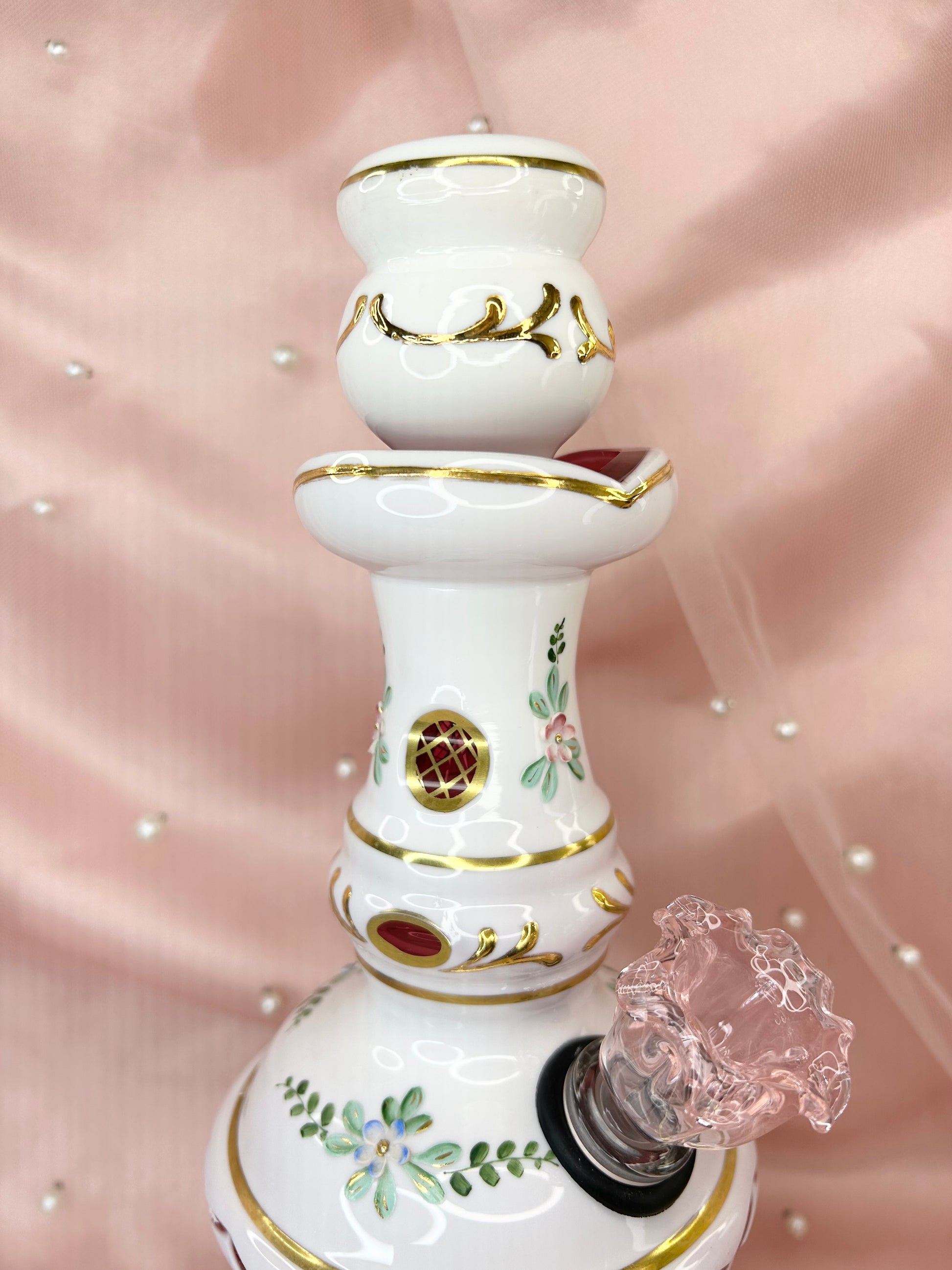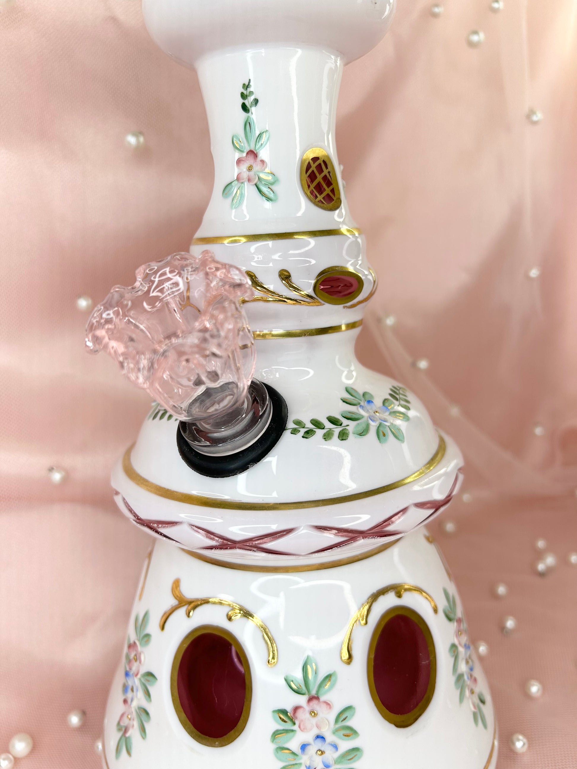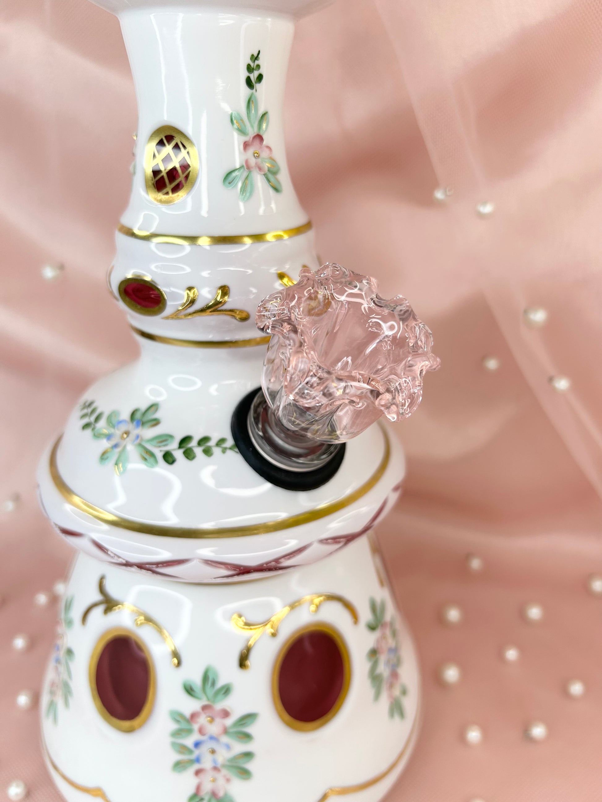 - Includes 14mm pink glass flower bowl