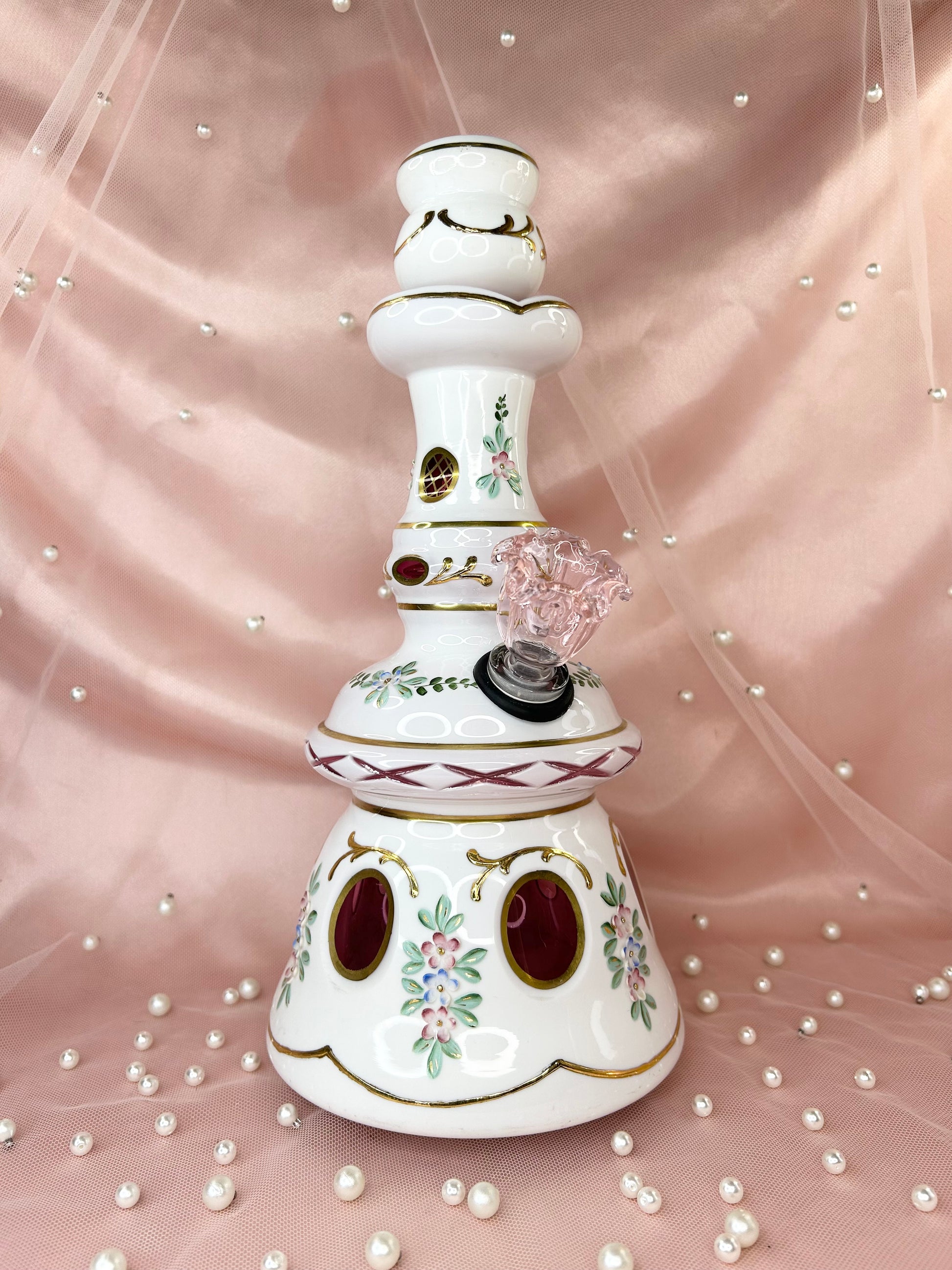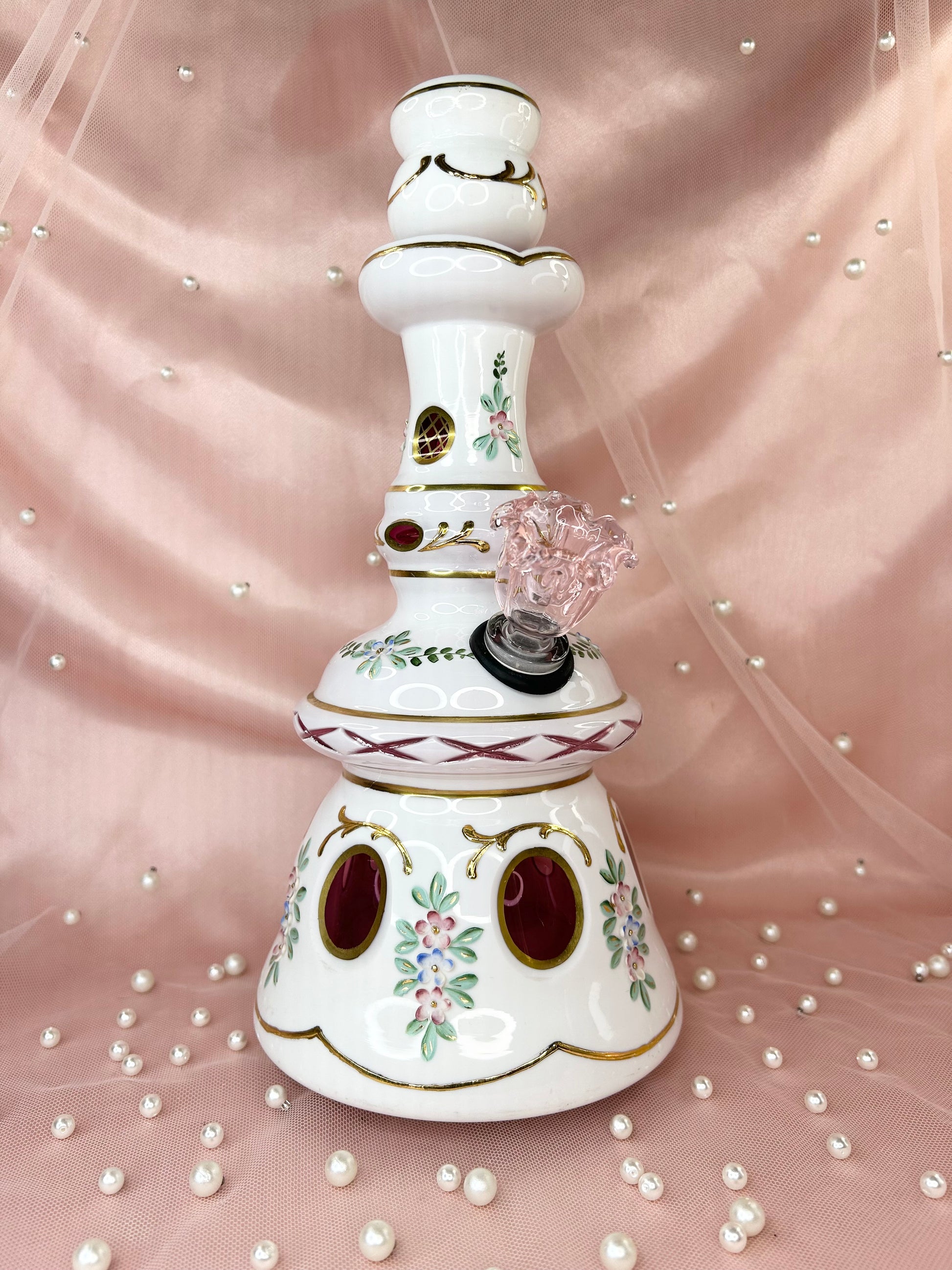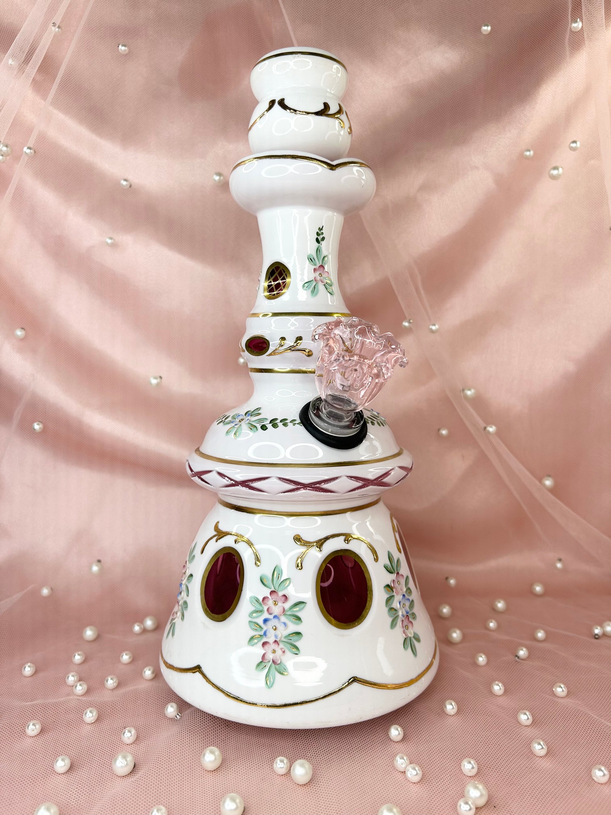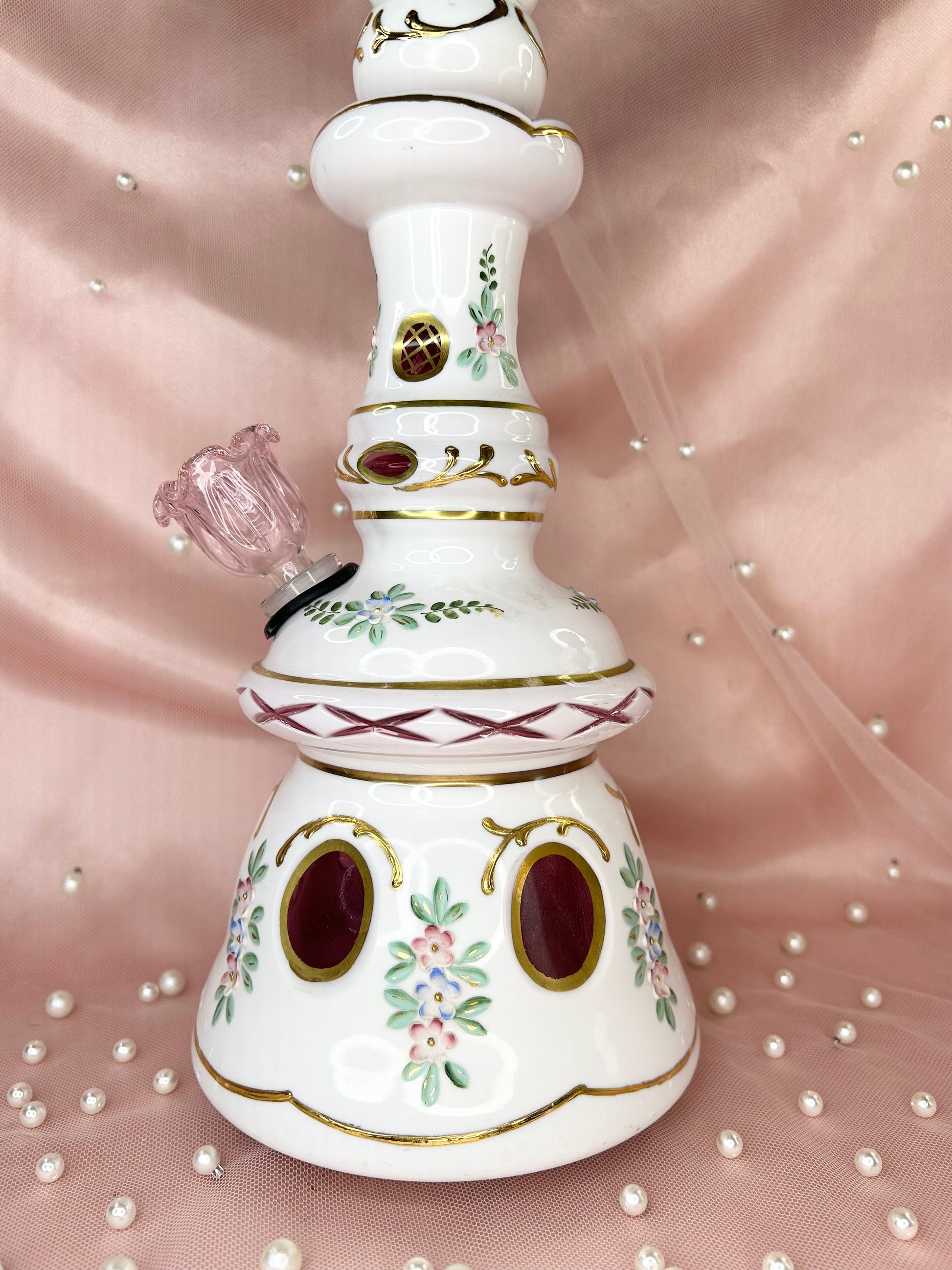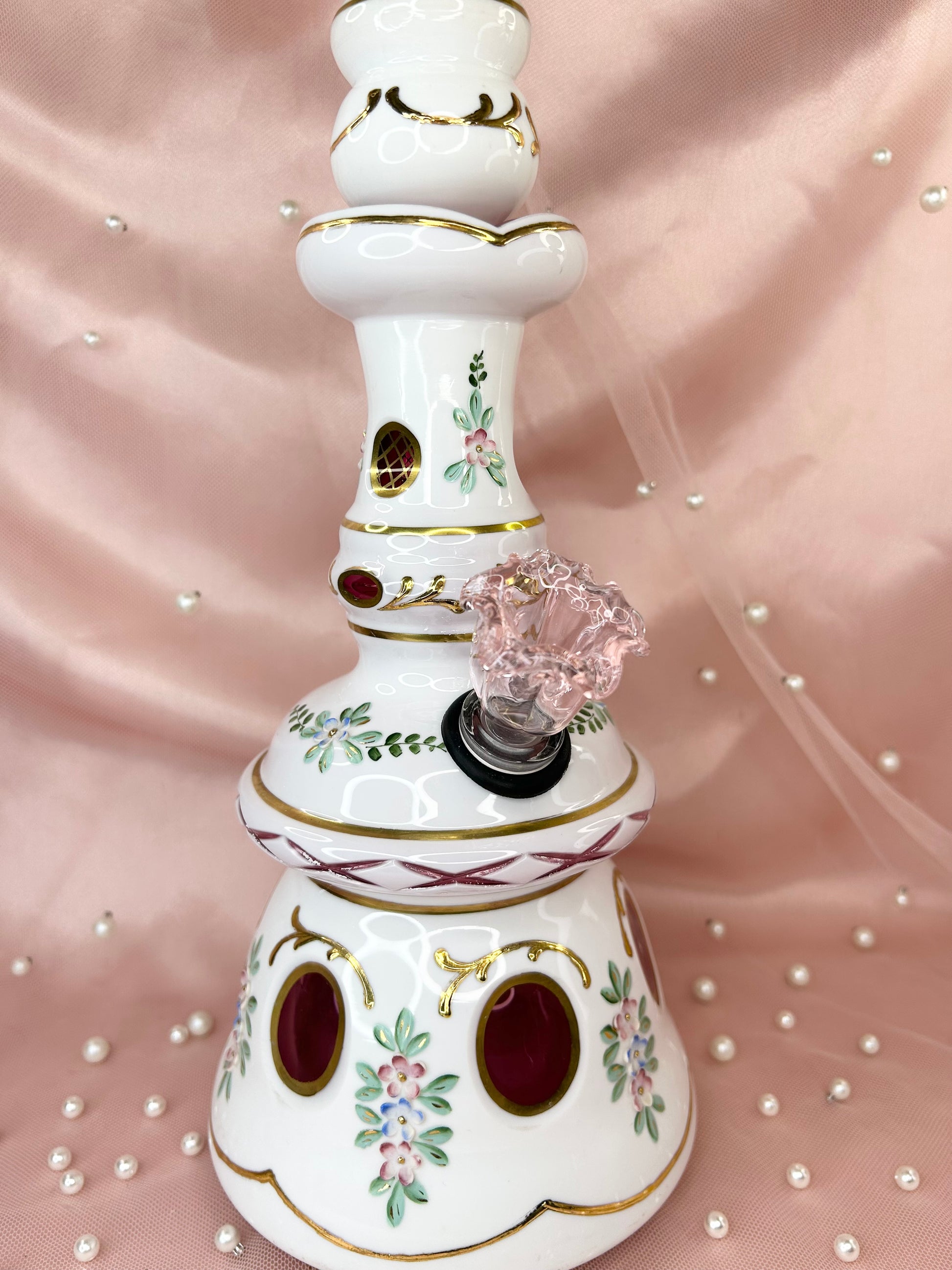 - Includes 14mm pink glass flower bowl