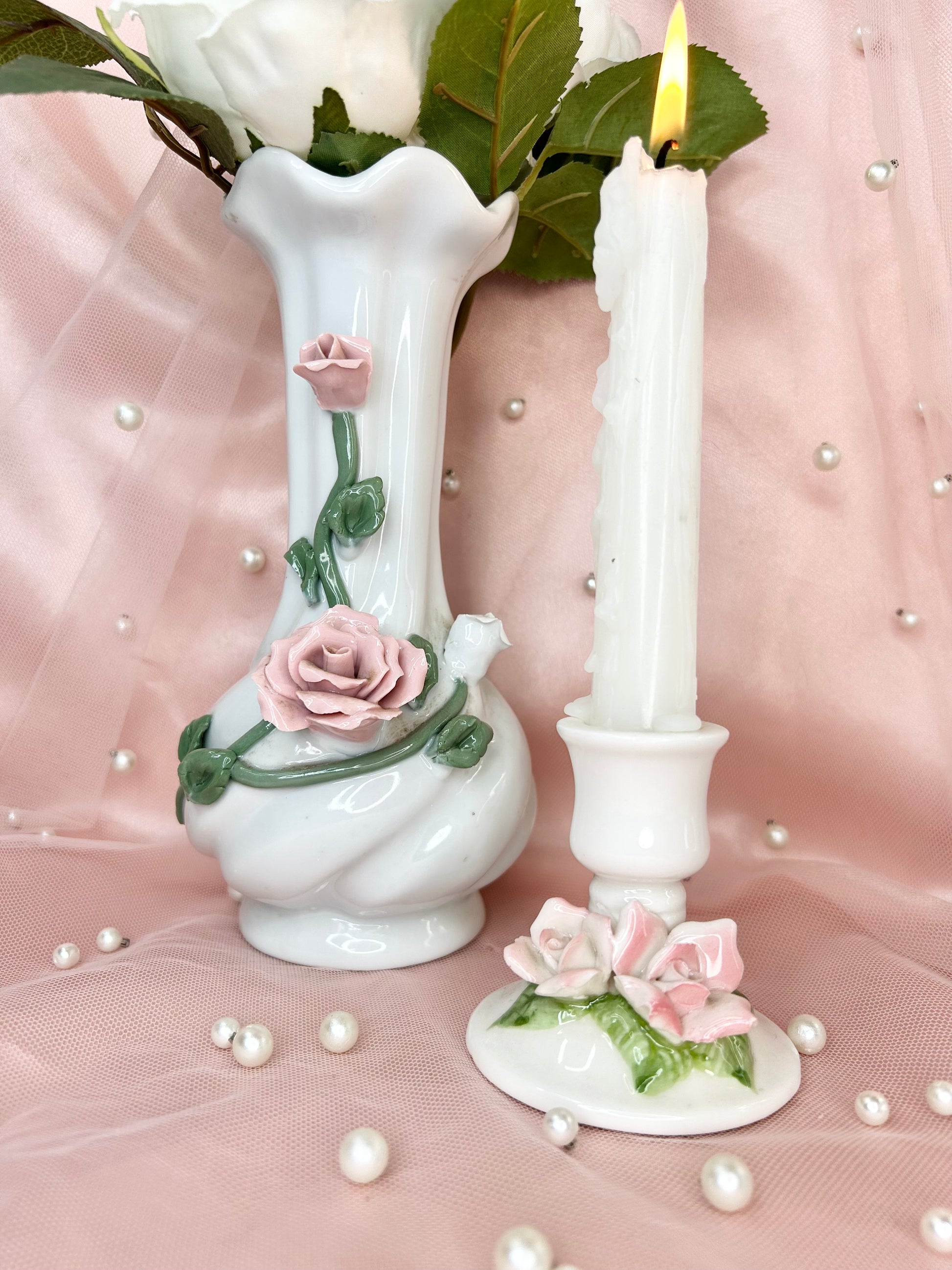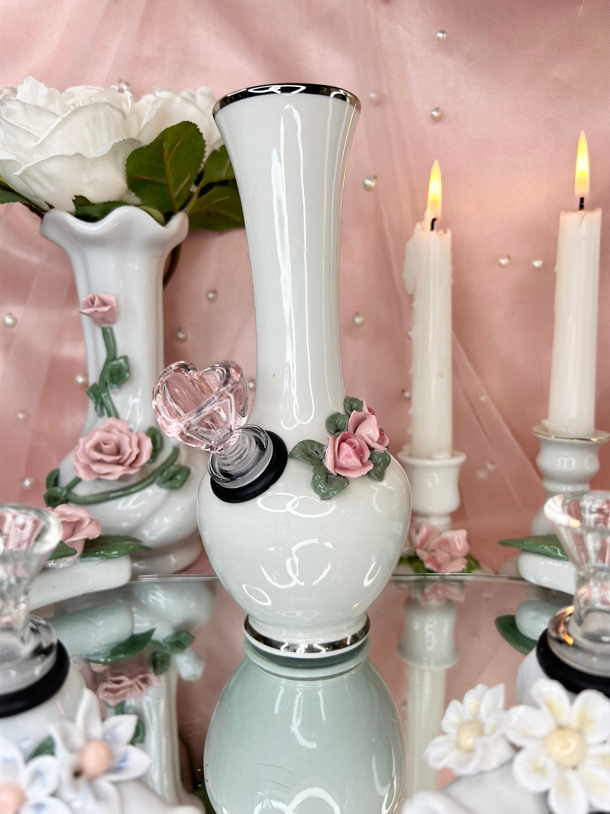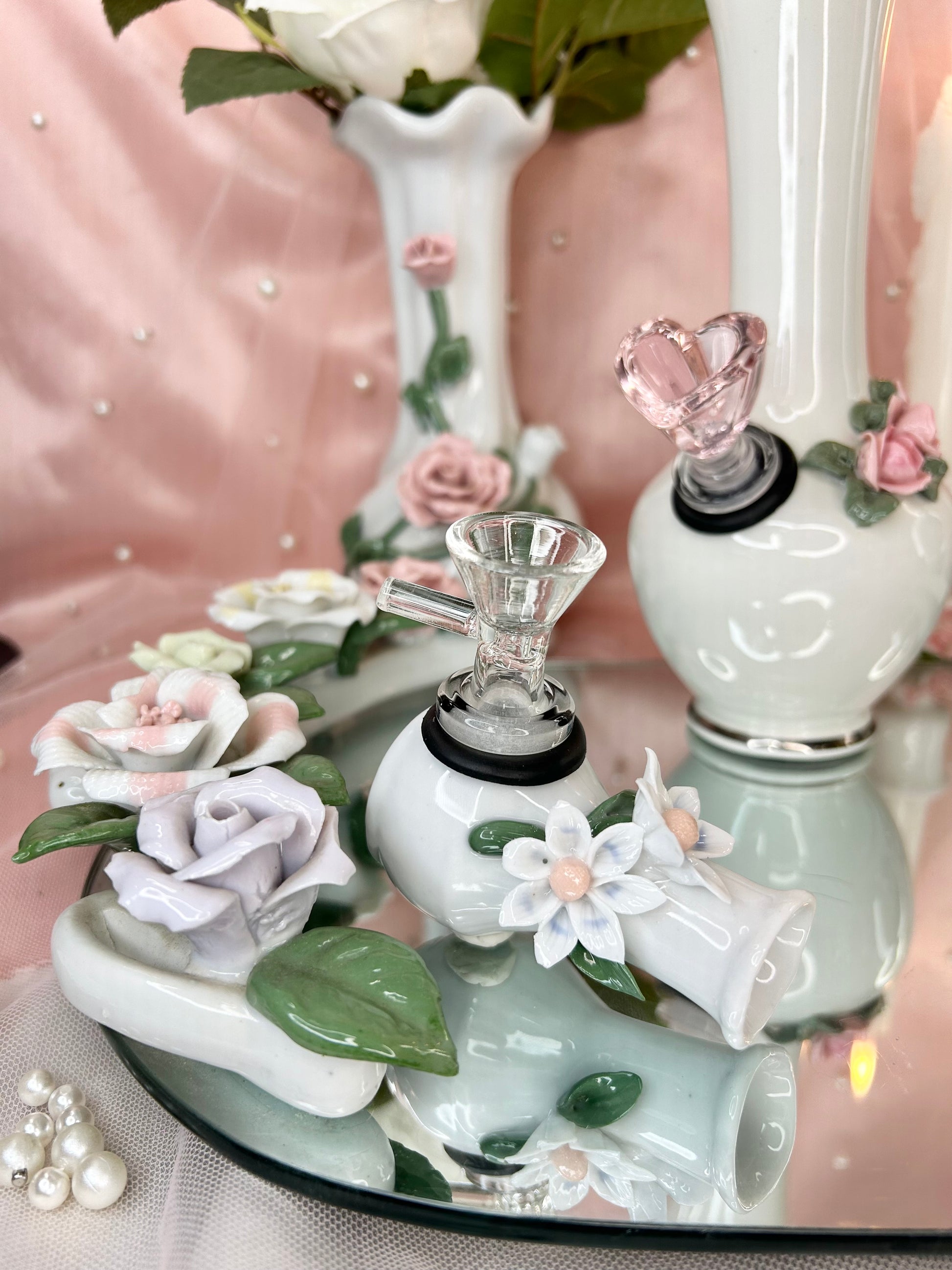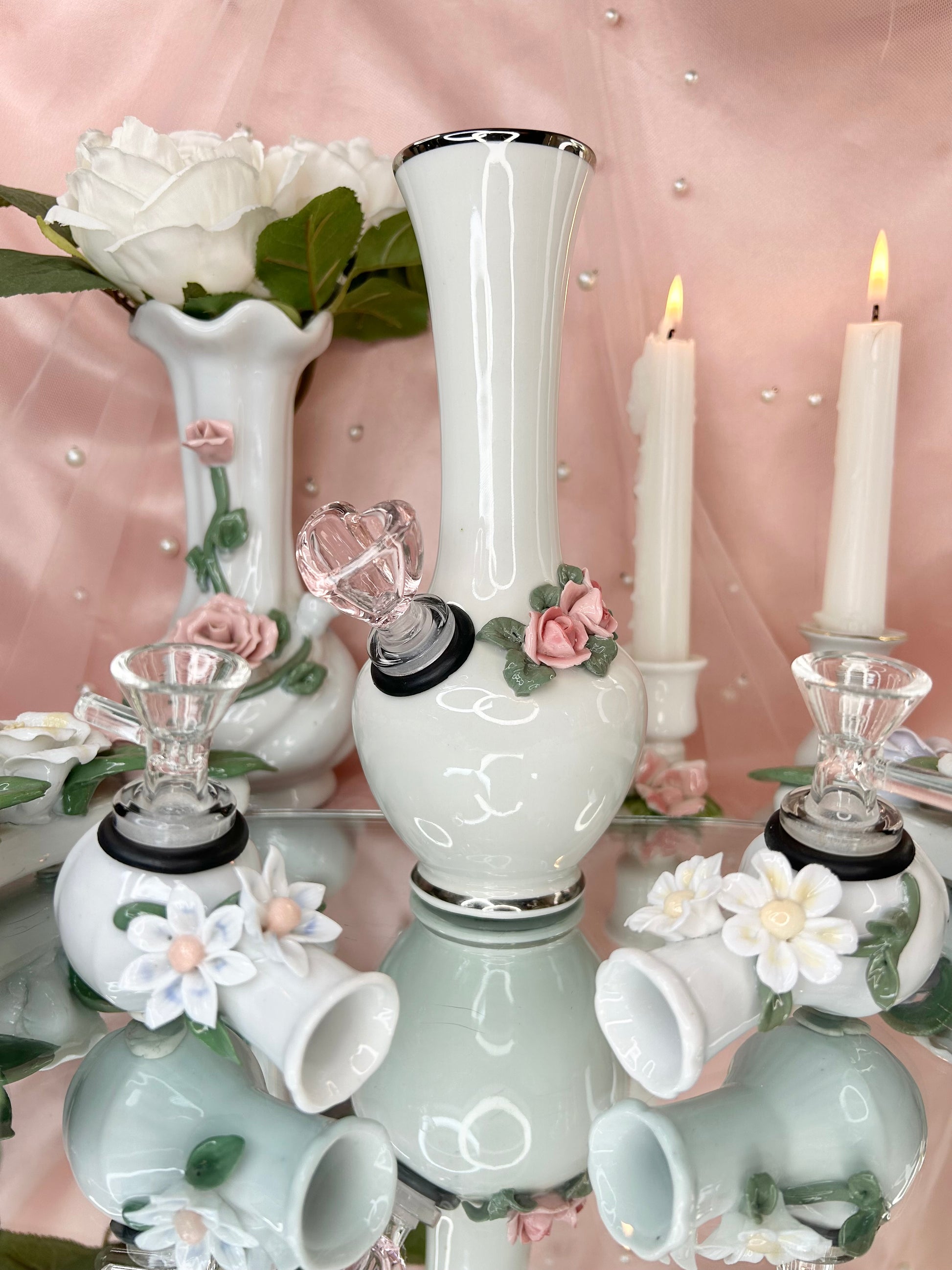 - Wedding Set includes four pipes, two rose bongs, five 14mm bowl pieces, lighters, matches, floral candle holders, candles, matching vase, porcelain leaf joint holder, four ashtrays and floral mirror tray to display it all