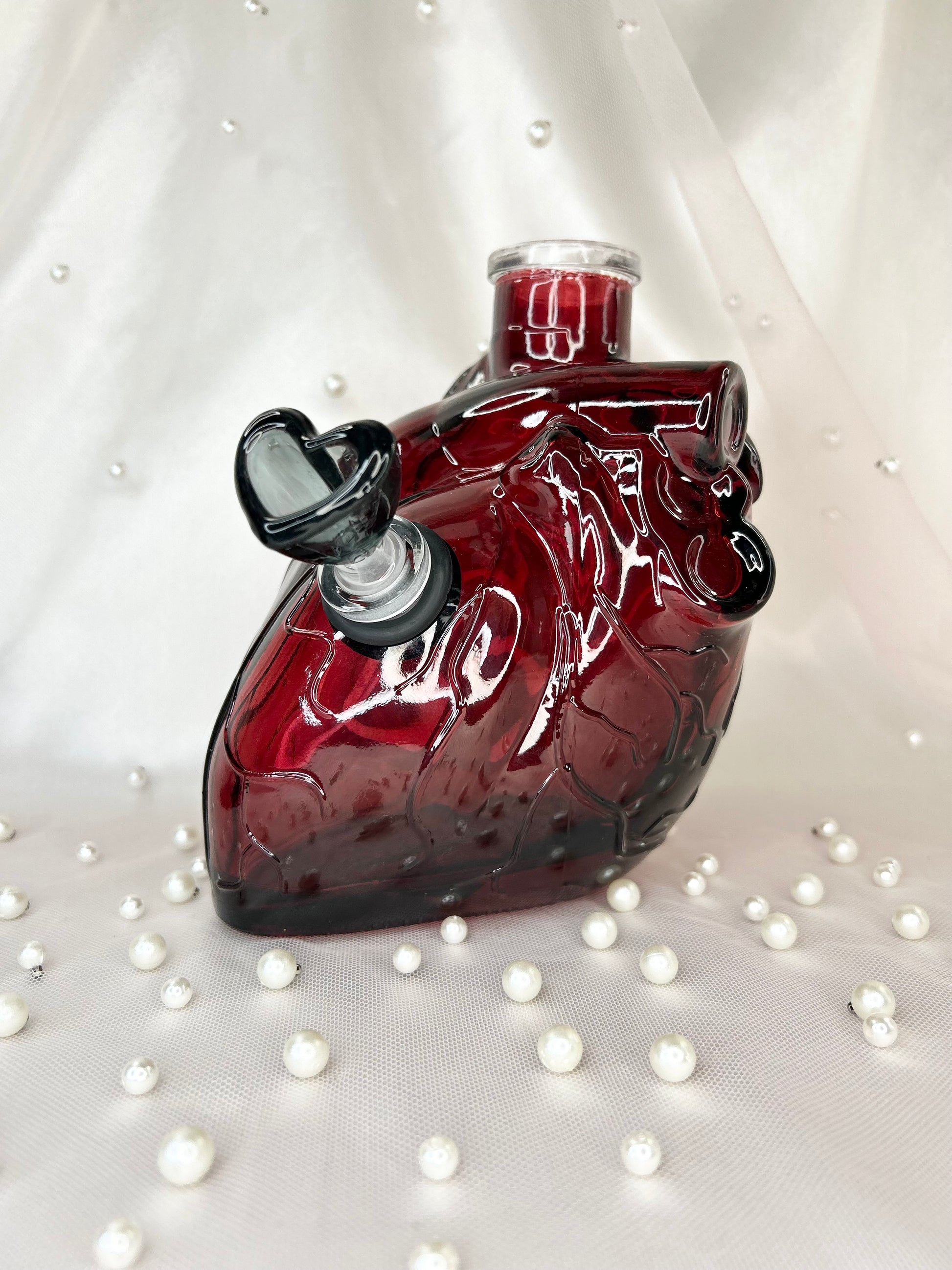 - Includes 14mm black heart bowl piece, anatomical heart bong and red farber brothers cordial