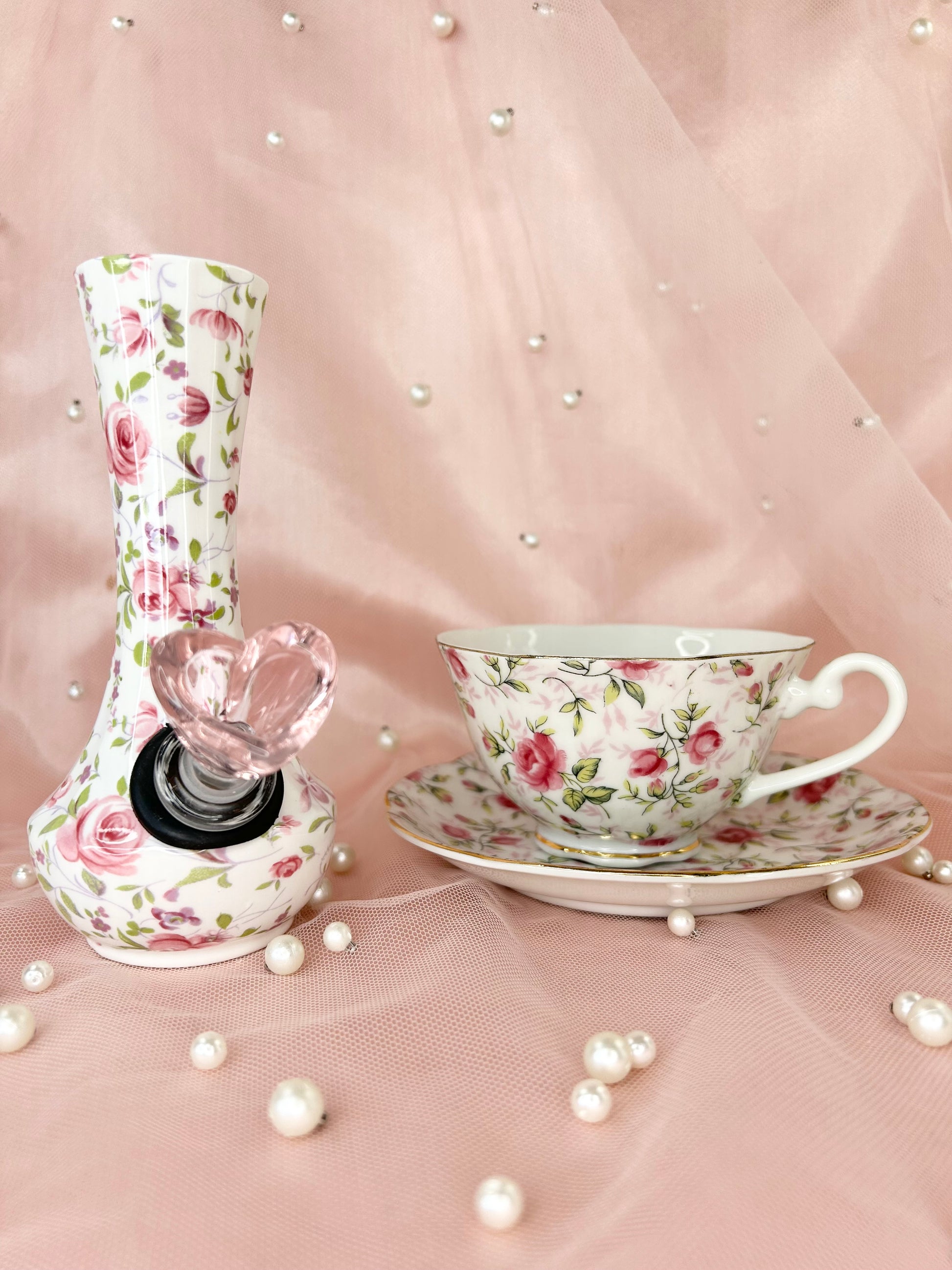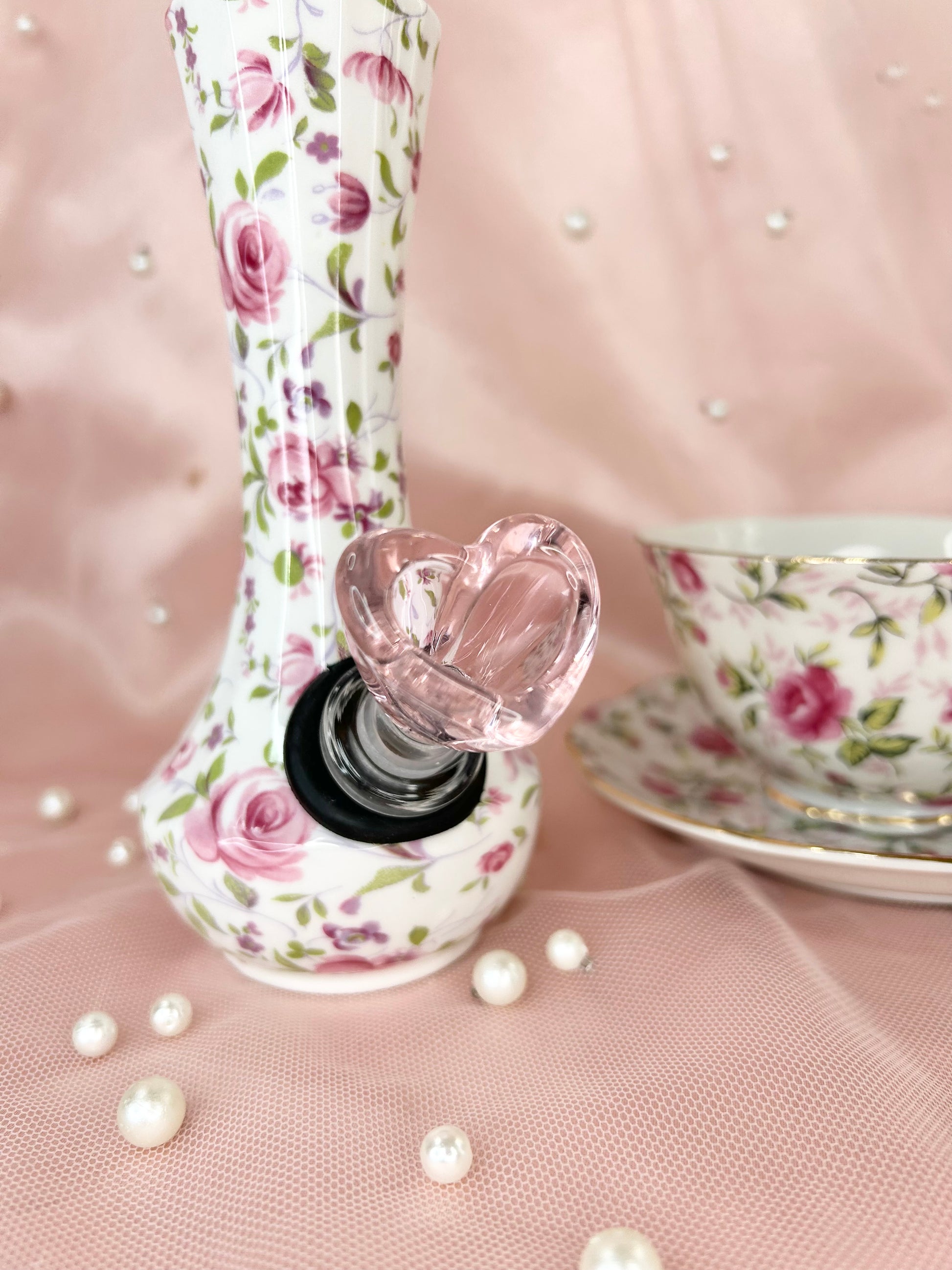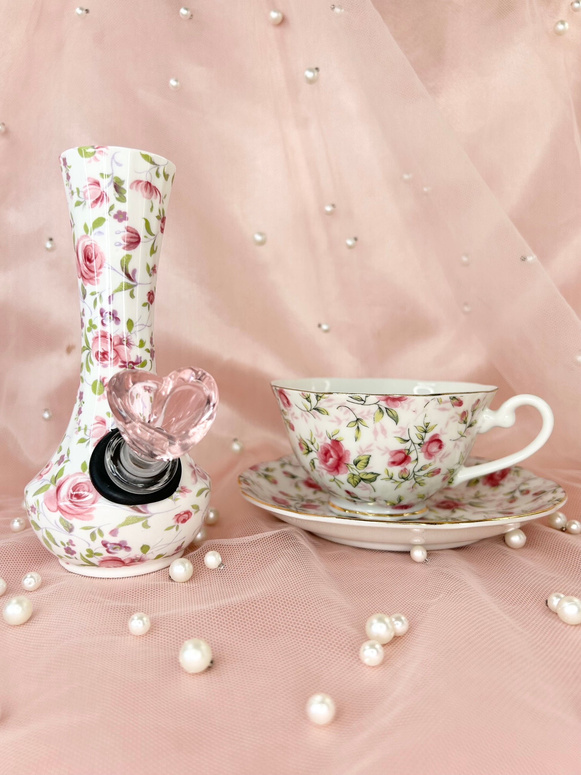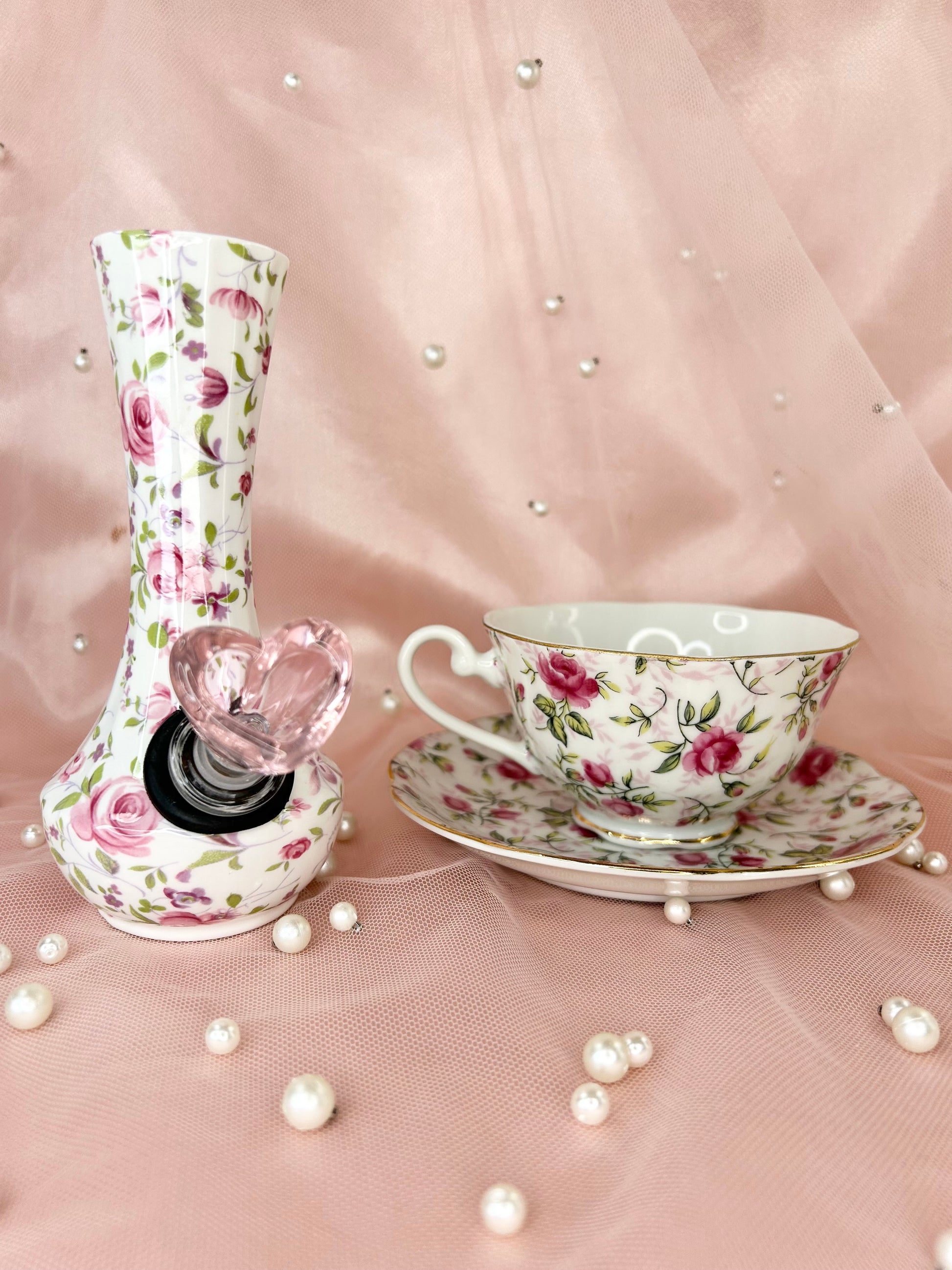 • Includes pipe, 14mm pink glass heart bowl, tea cup, plate, sugar and creamer pitcher