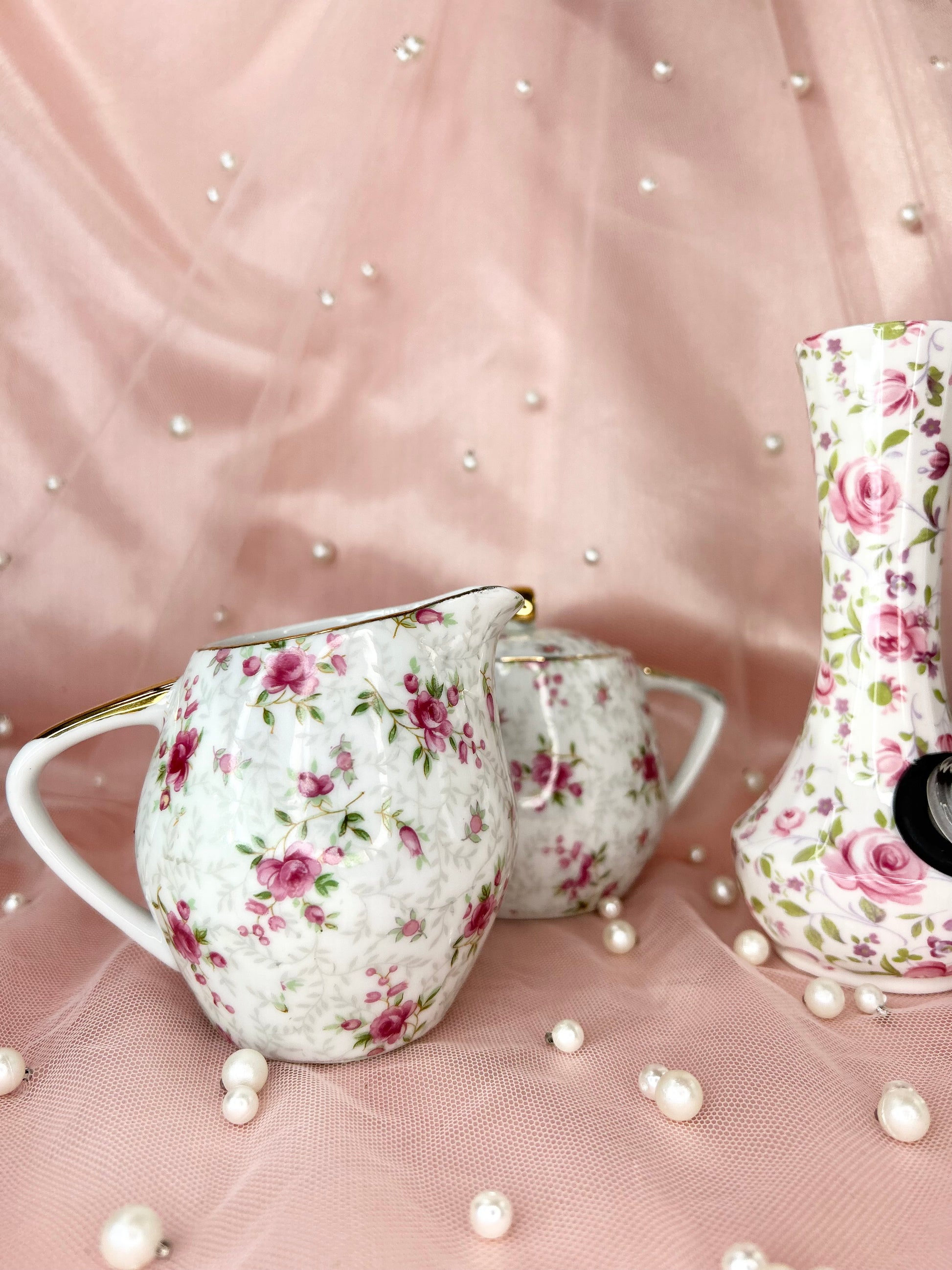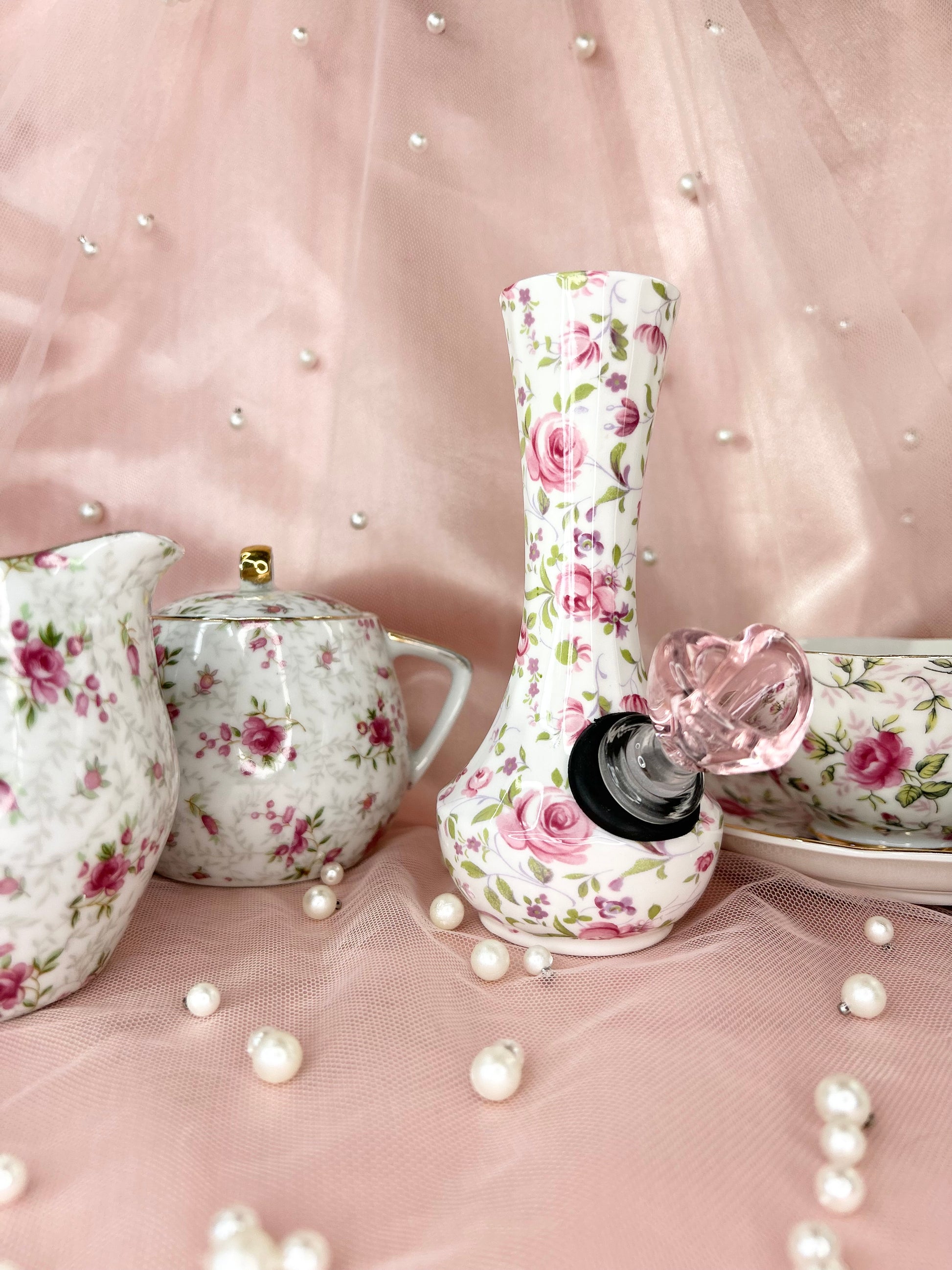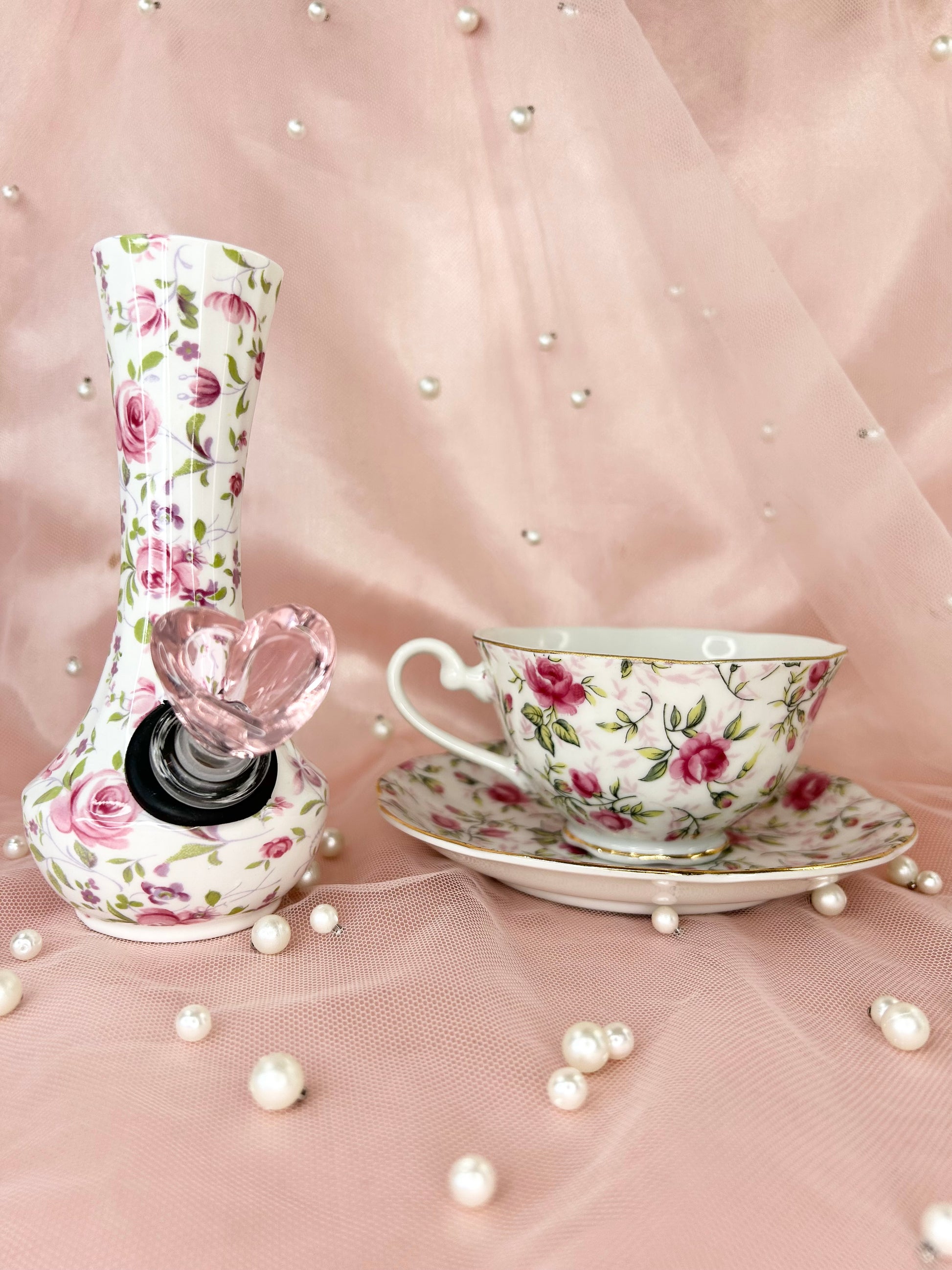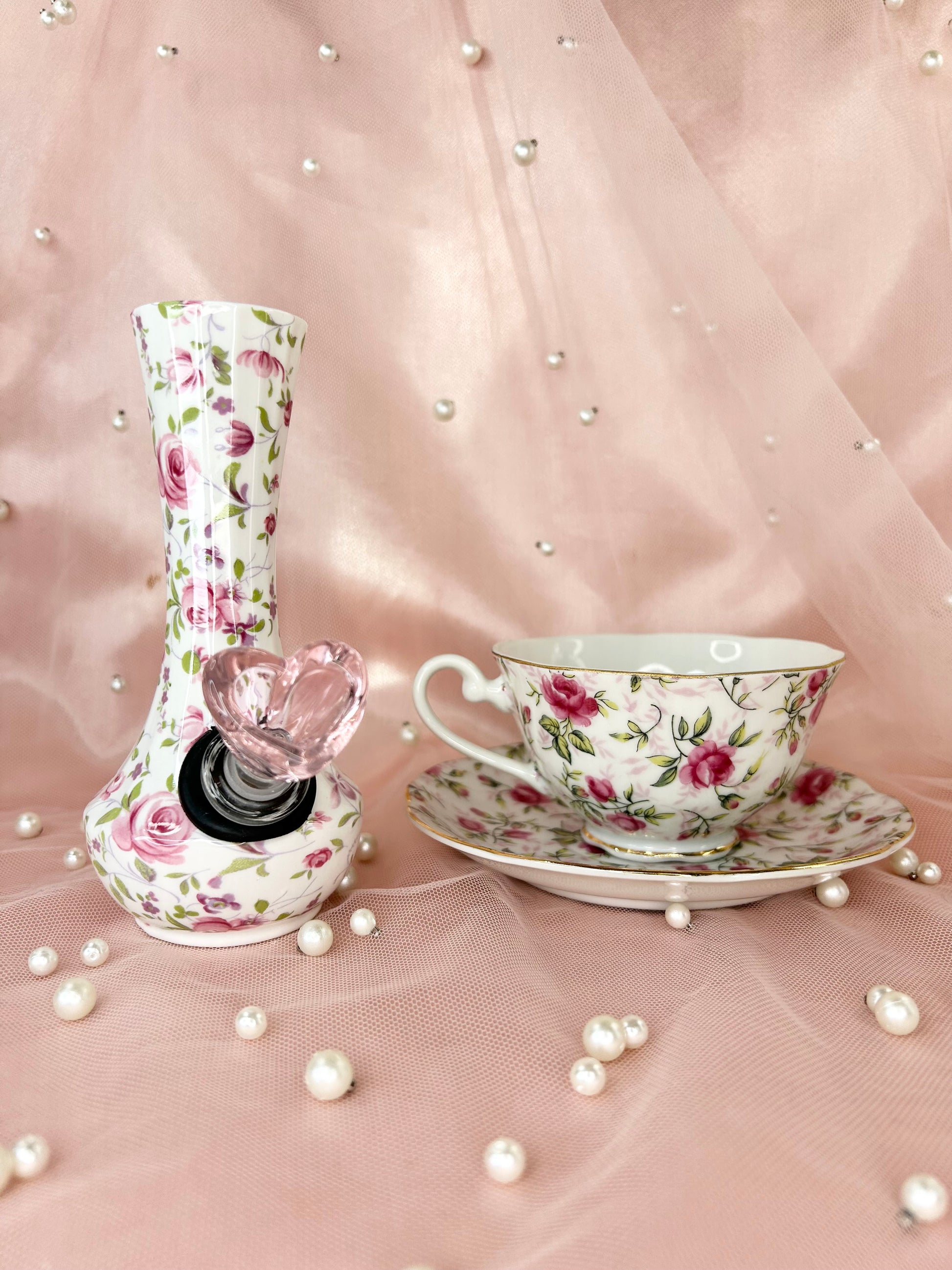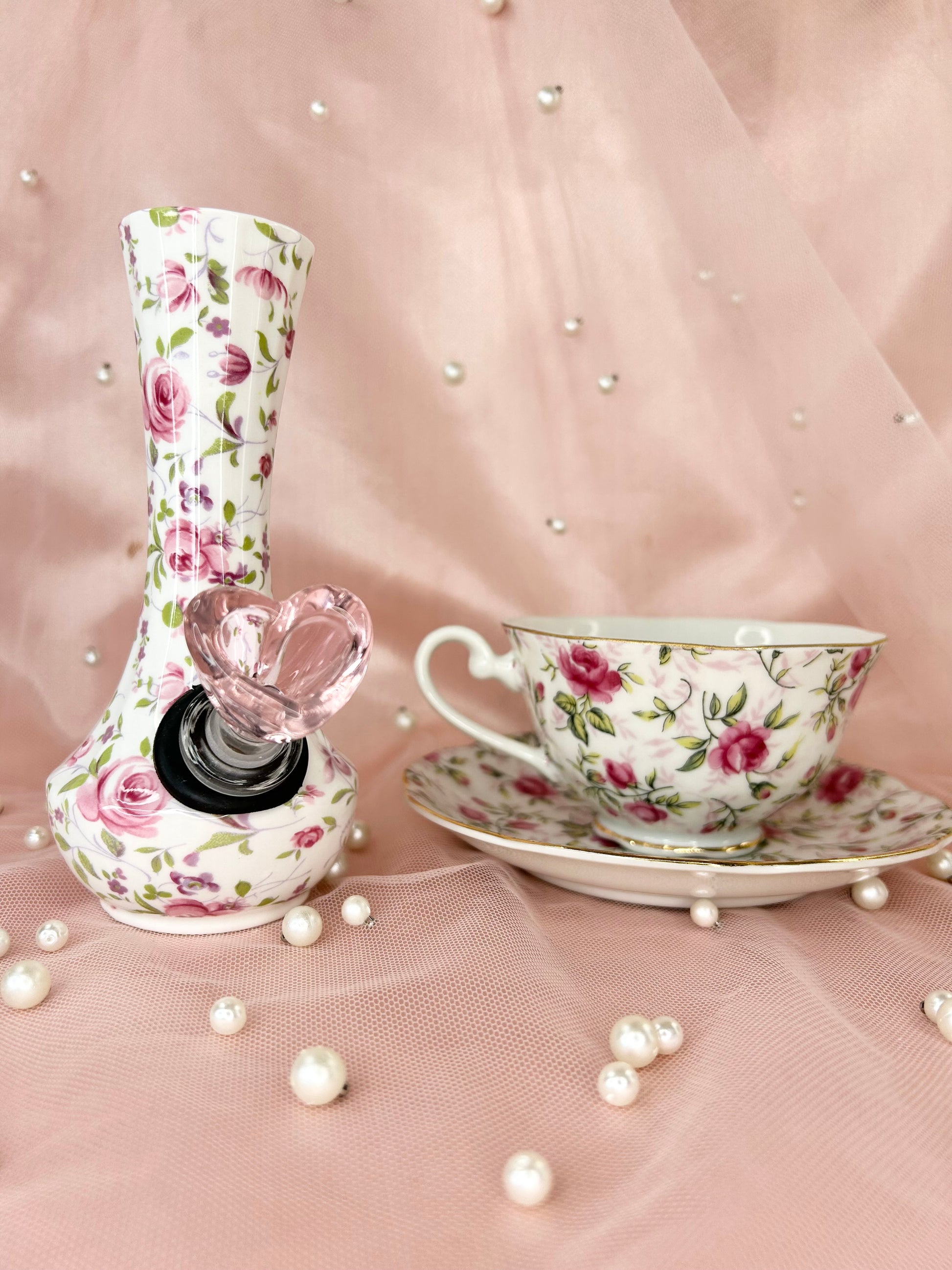 • Includes pipe, 14mm pink glass heart bowl, tea cup, plate, sugar and creamer pitcher