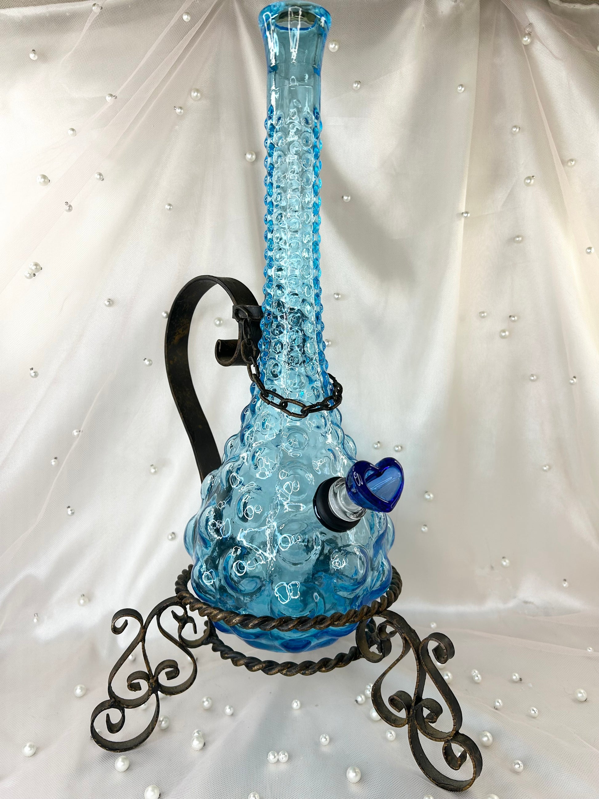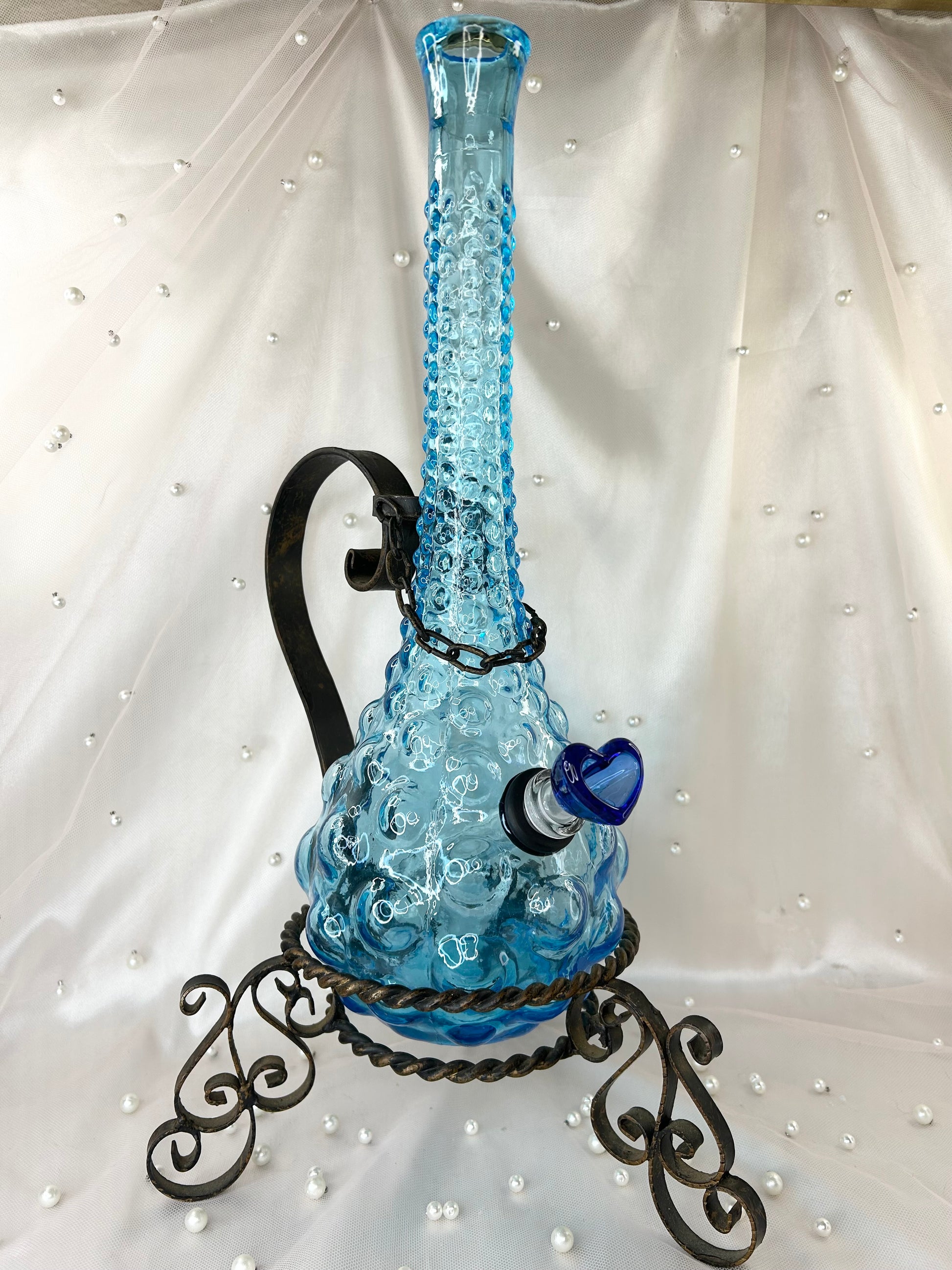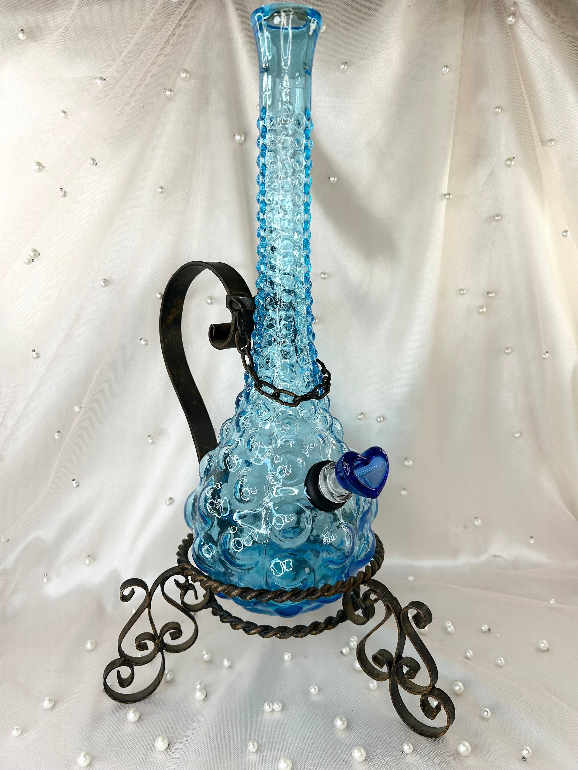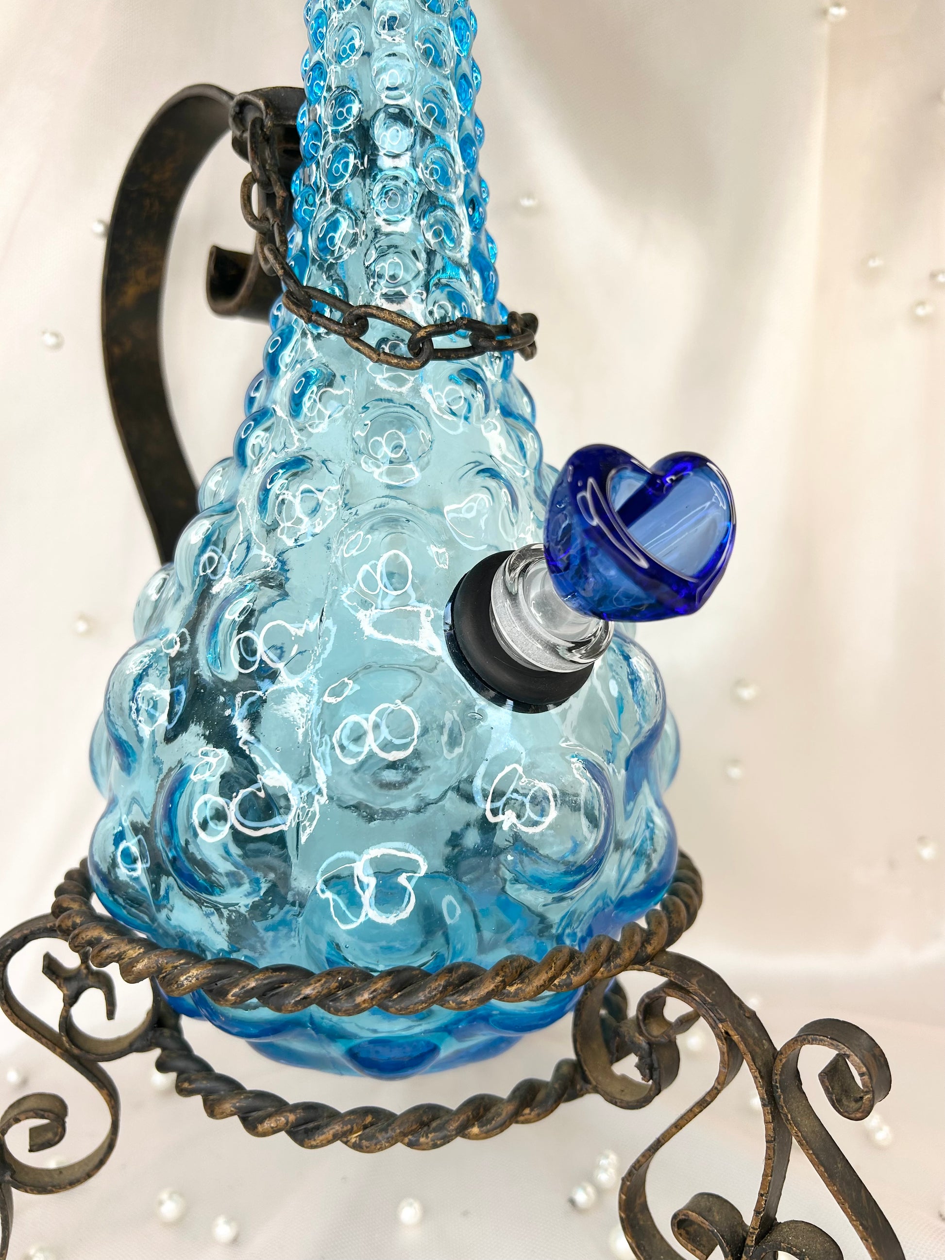 • Includes bong, 14mm blue heart glass bowl piece, ornate brass holder