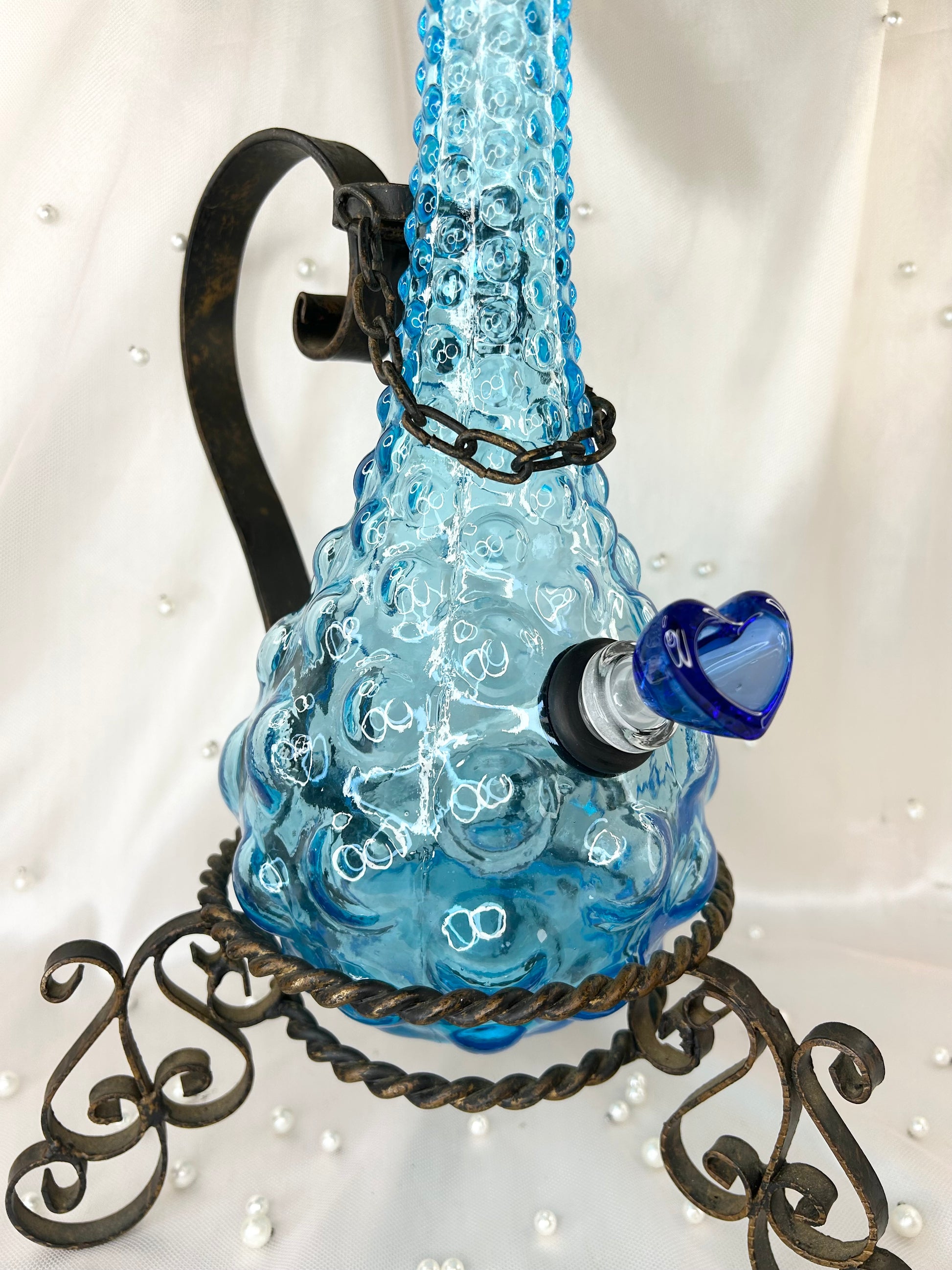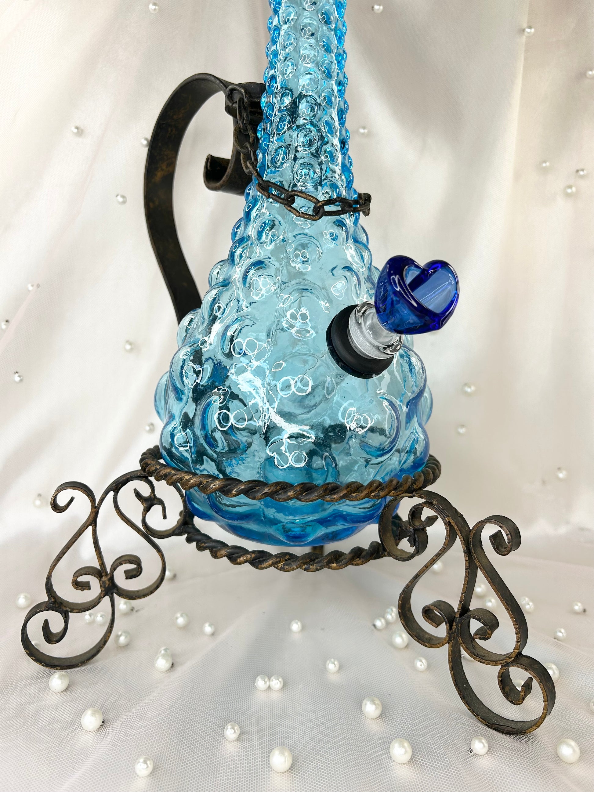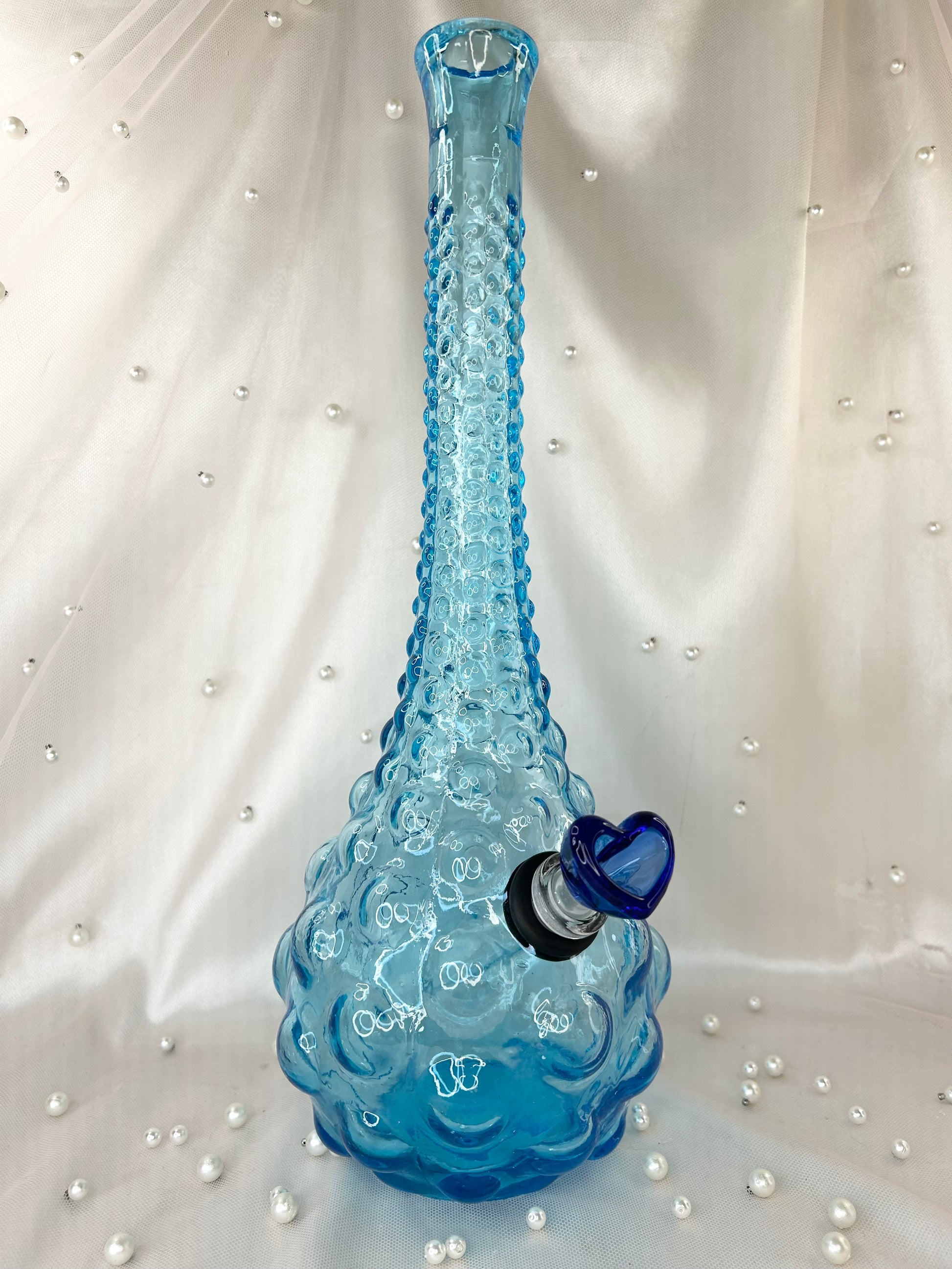 • Includes bong, 14mm blue heart glass bowl piece, ornate brass holder