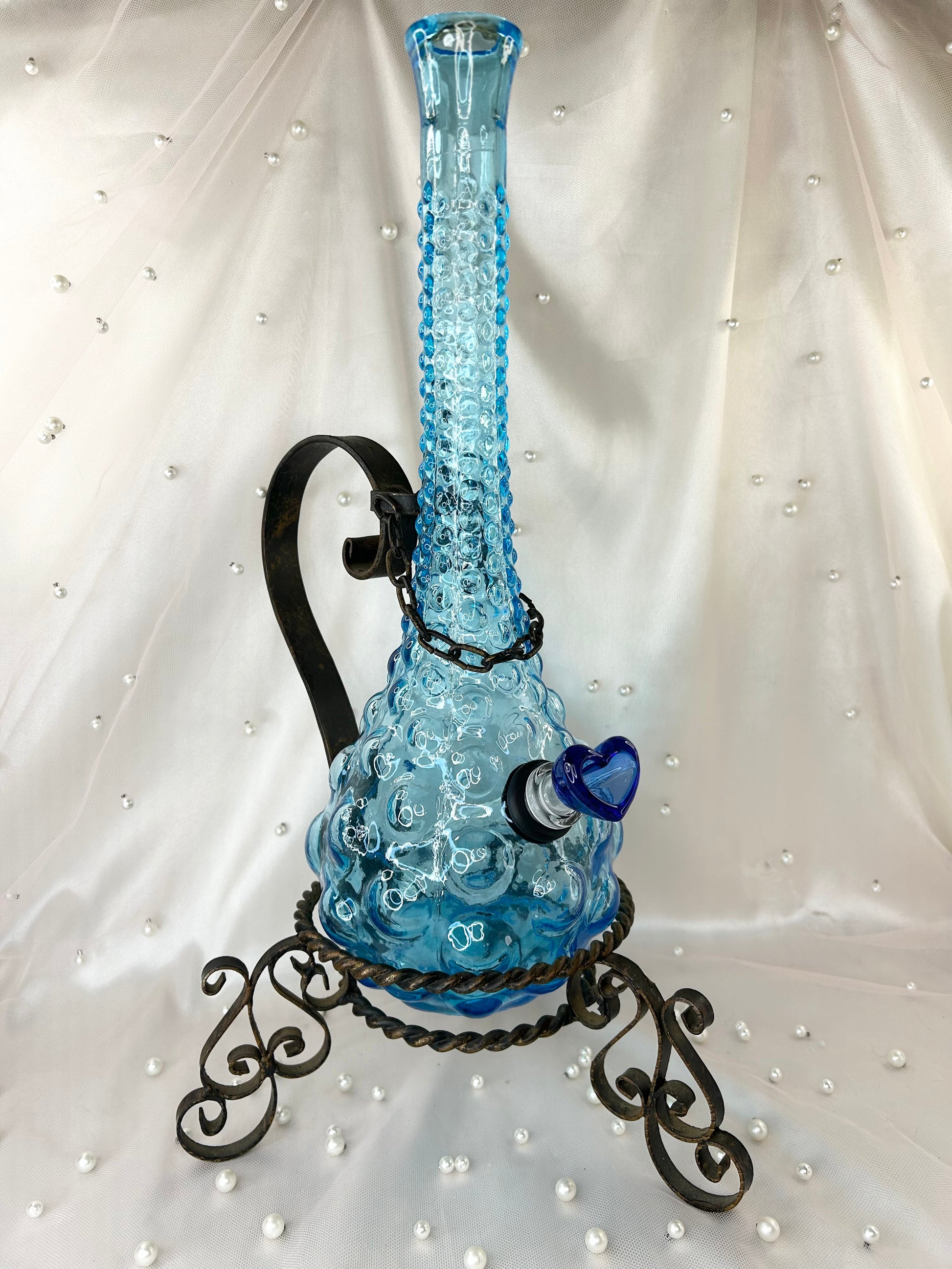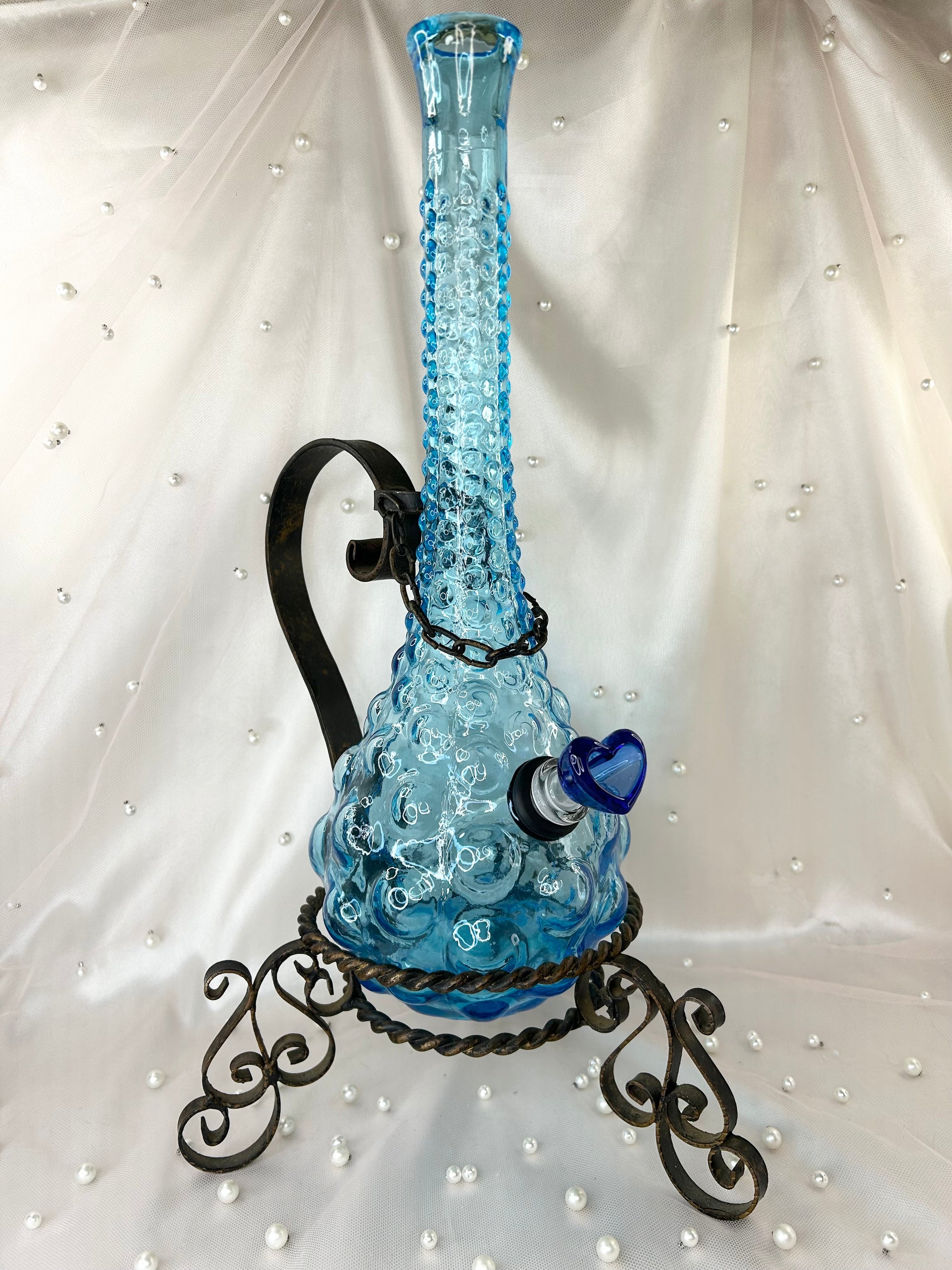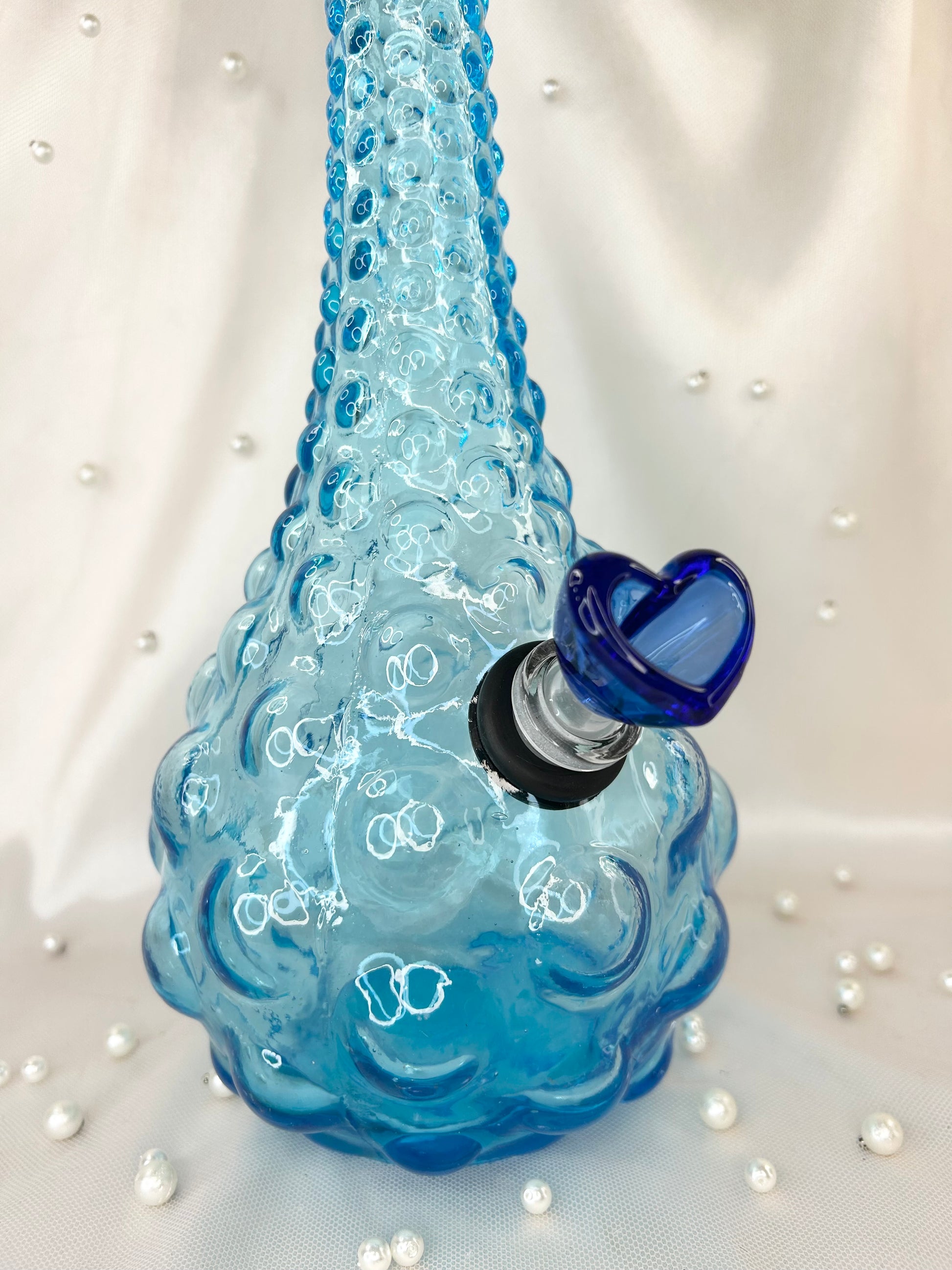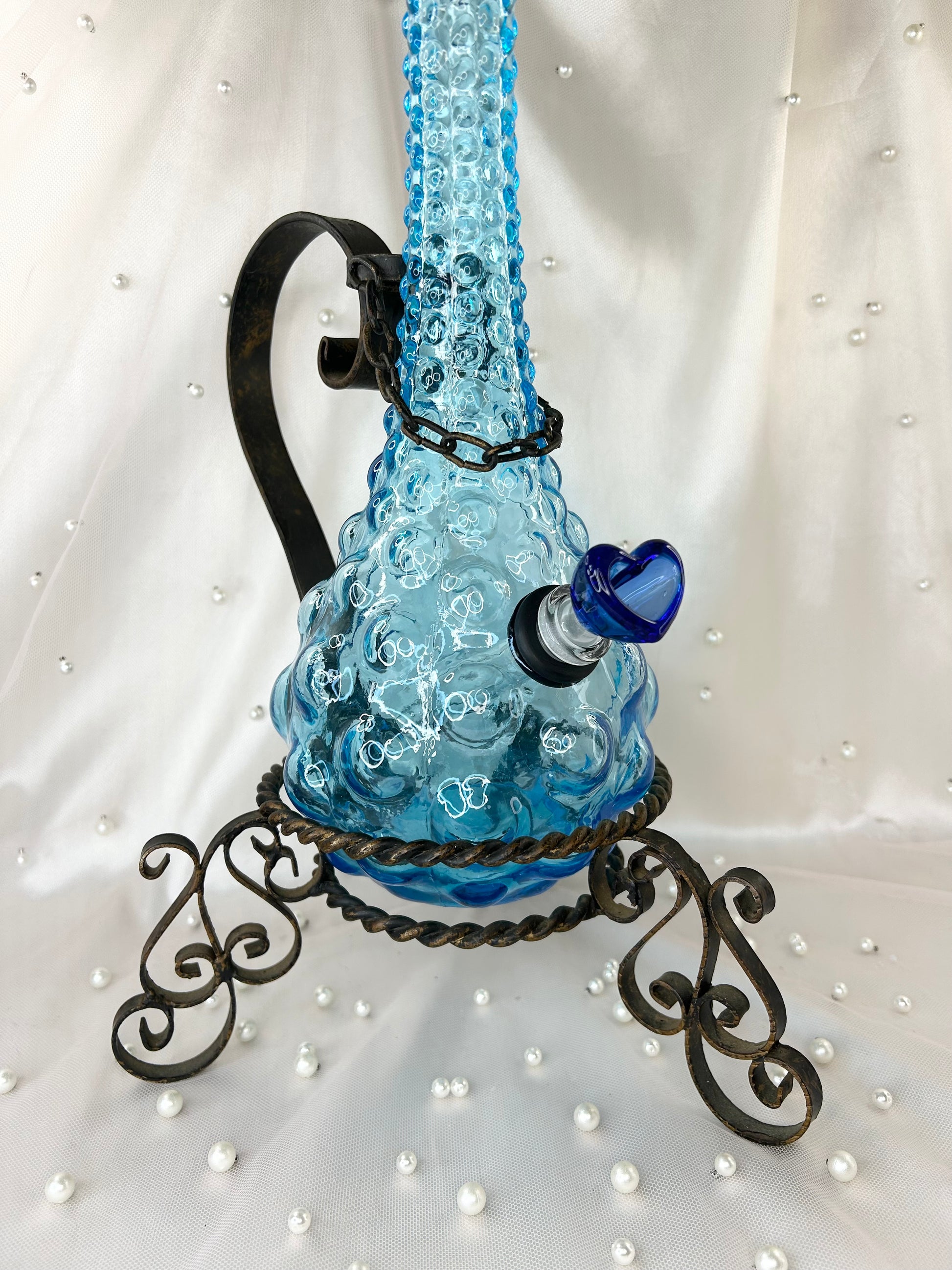 • Includes bong, 14mm blue heart glass bowl piece, ornate brass holder
