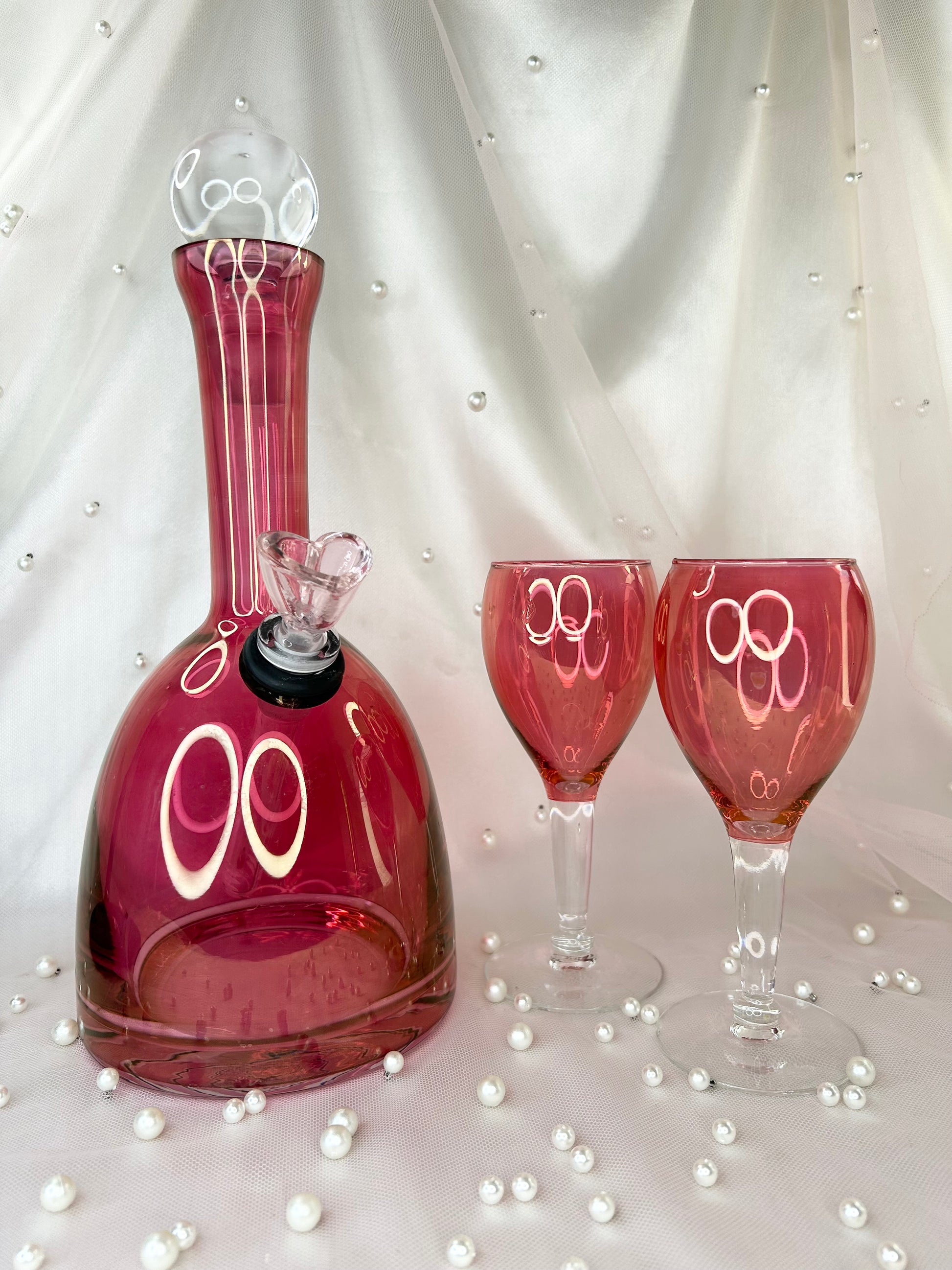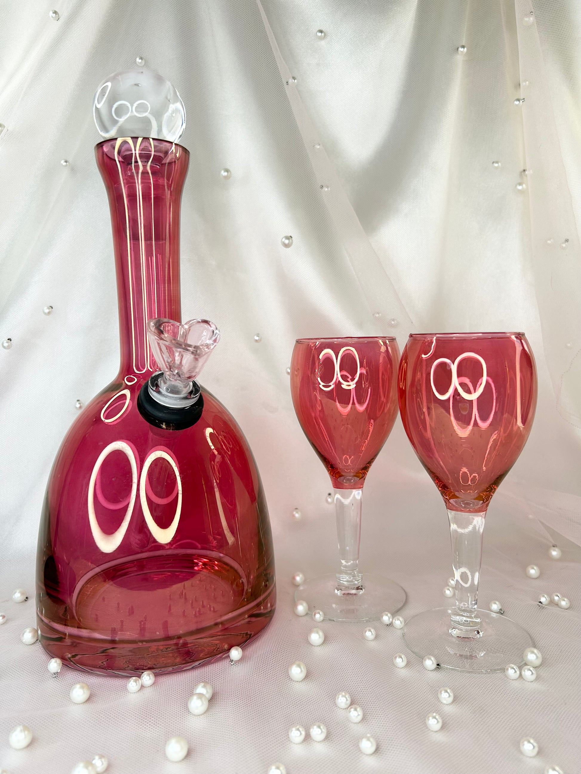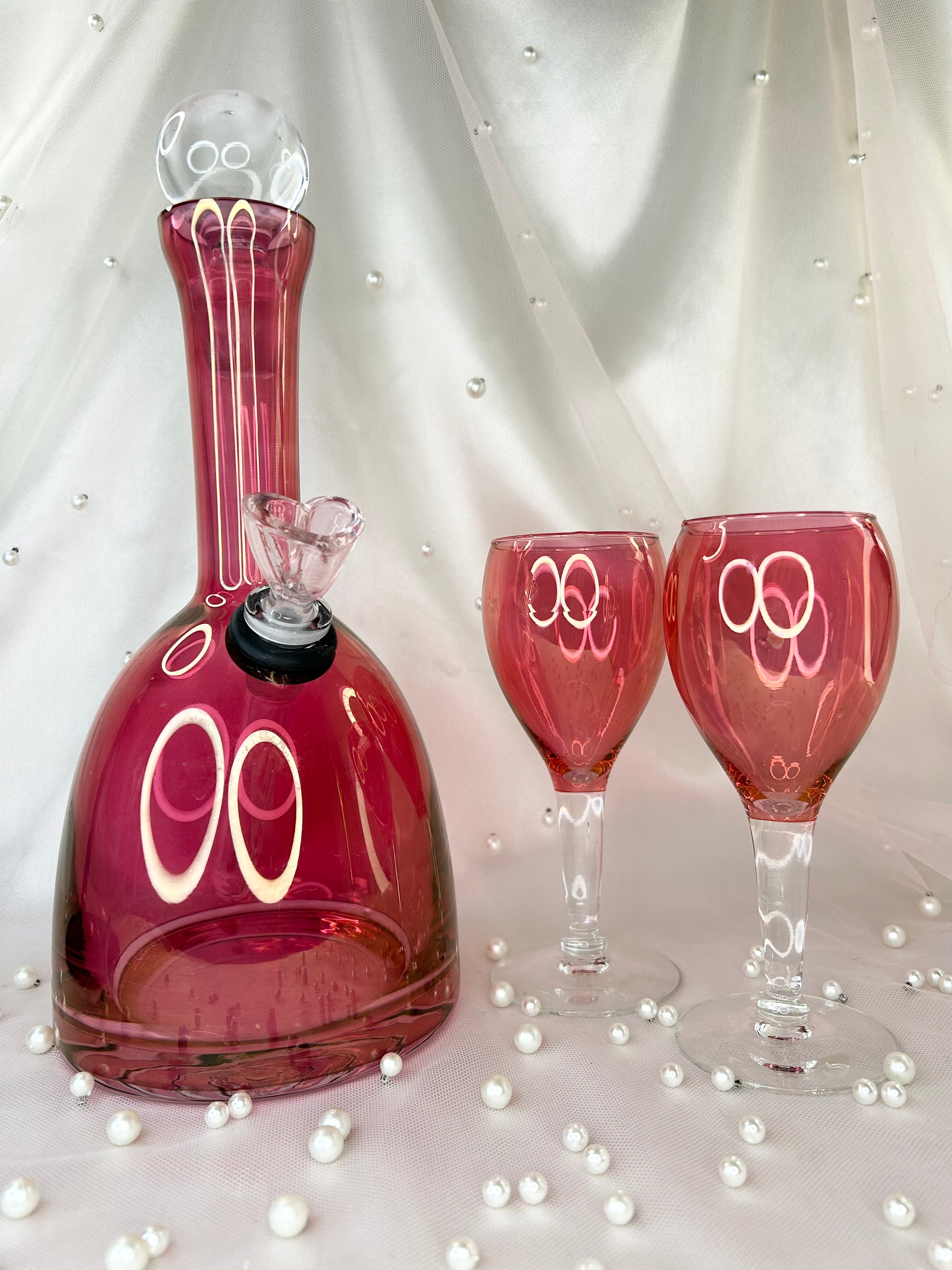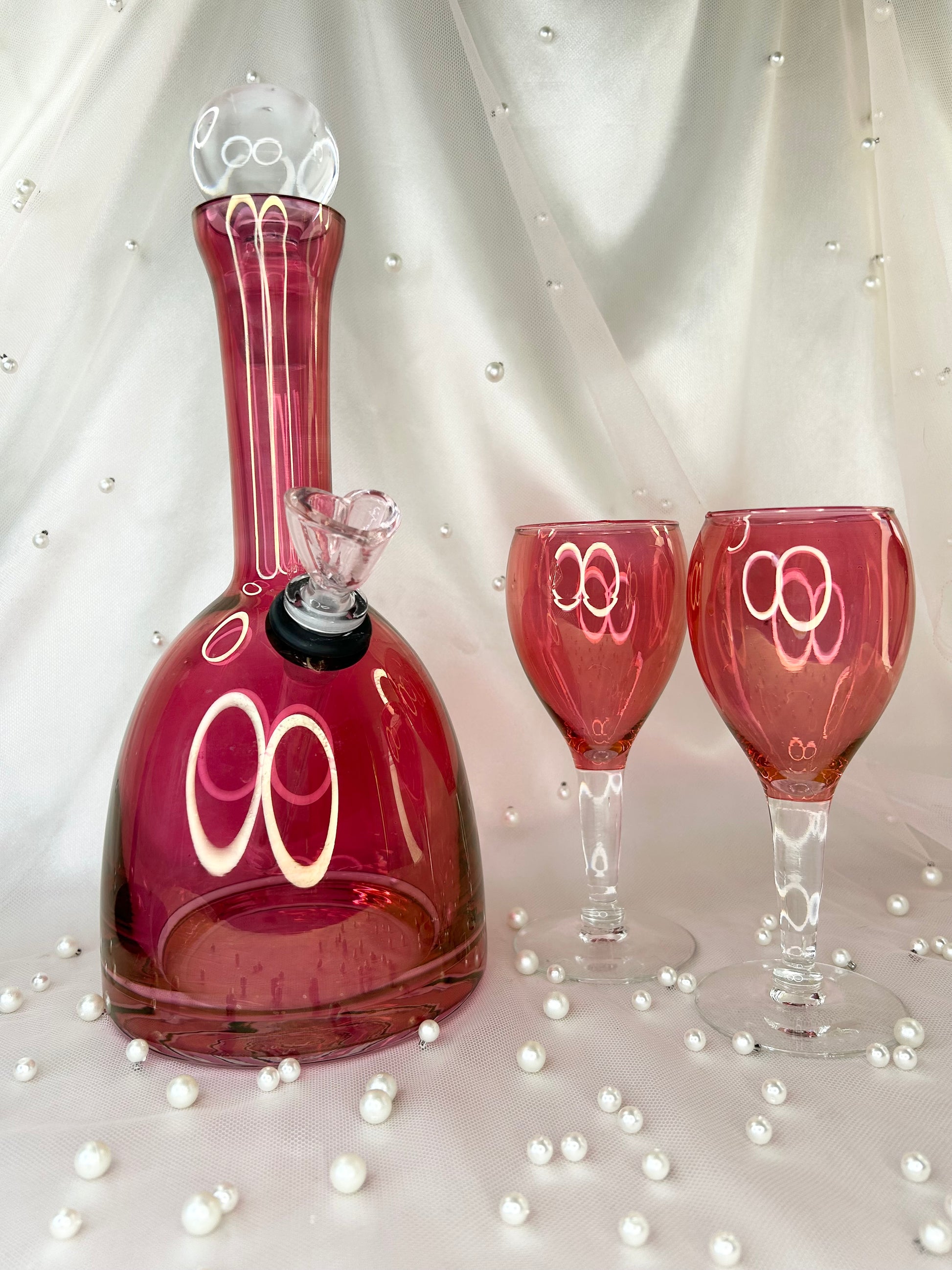 • Includes 14mm pink glass heart bowl piece, bong and two matching cups
