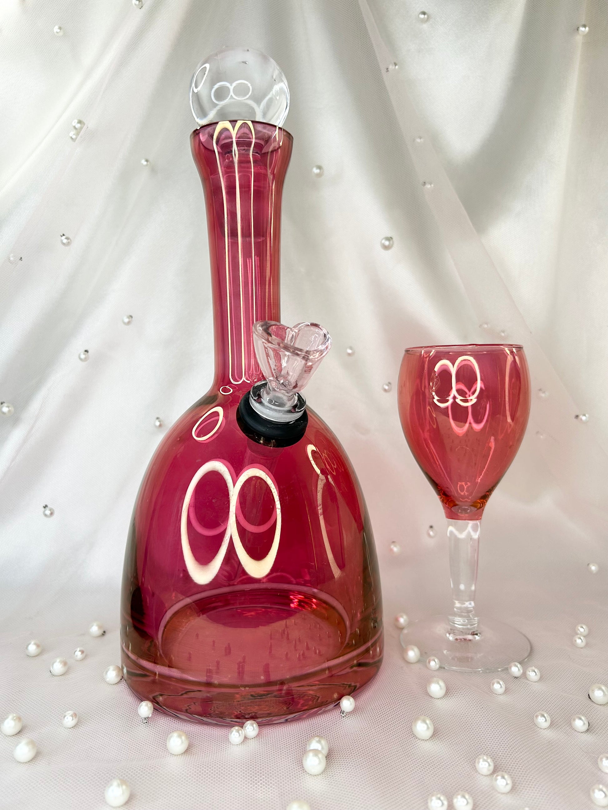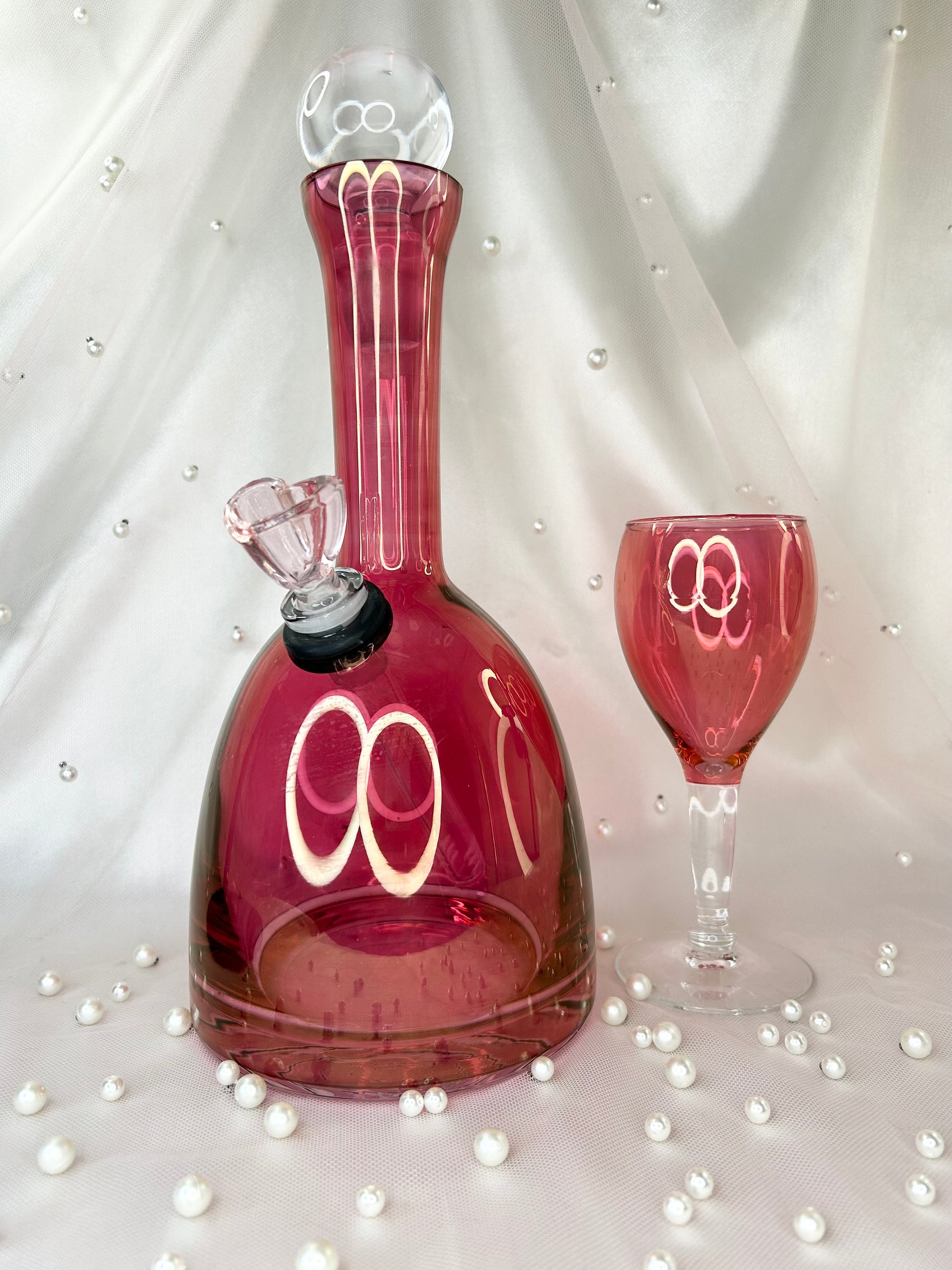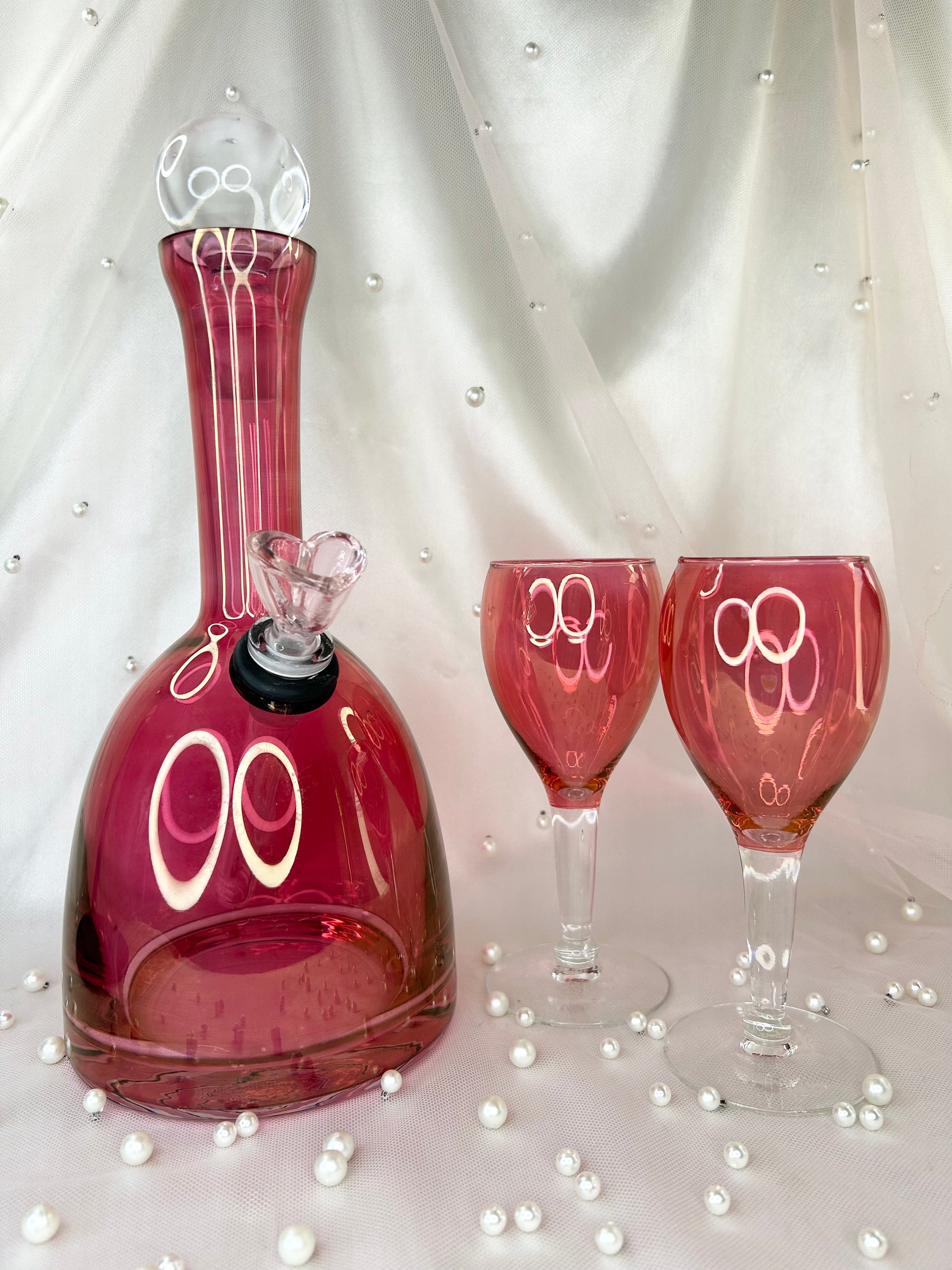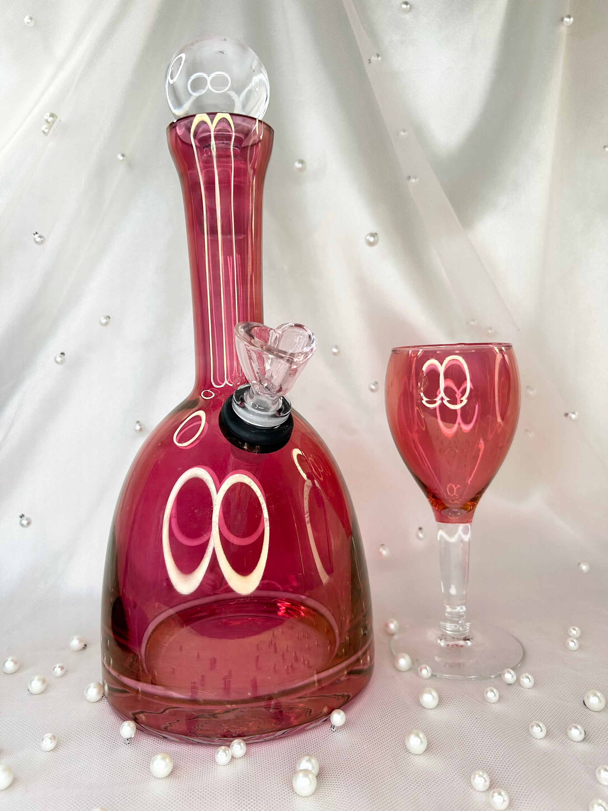 • Includes 14mm pink glass heart bowl piece, bong and two matching cups