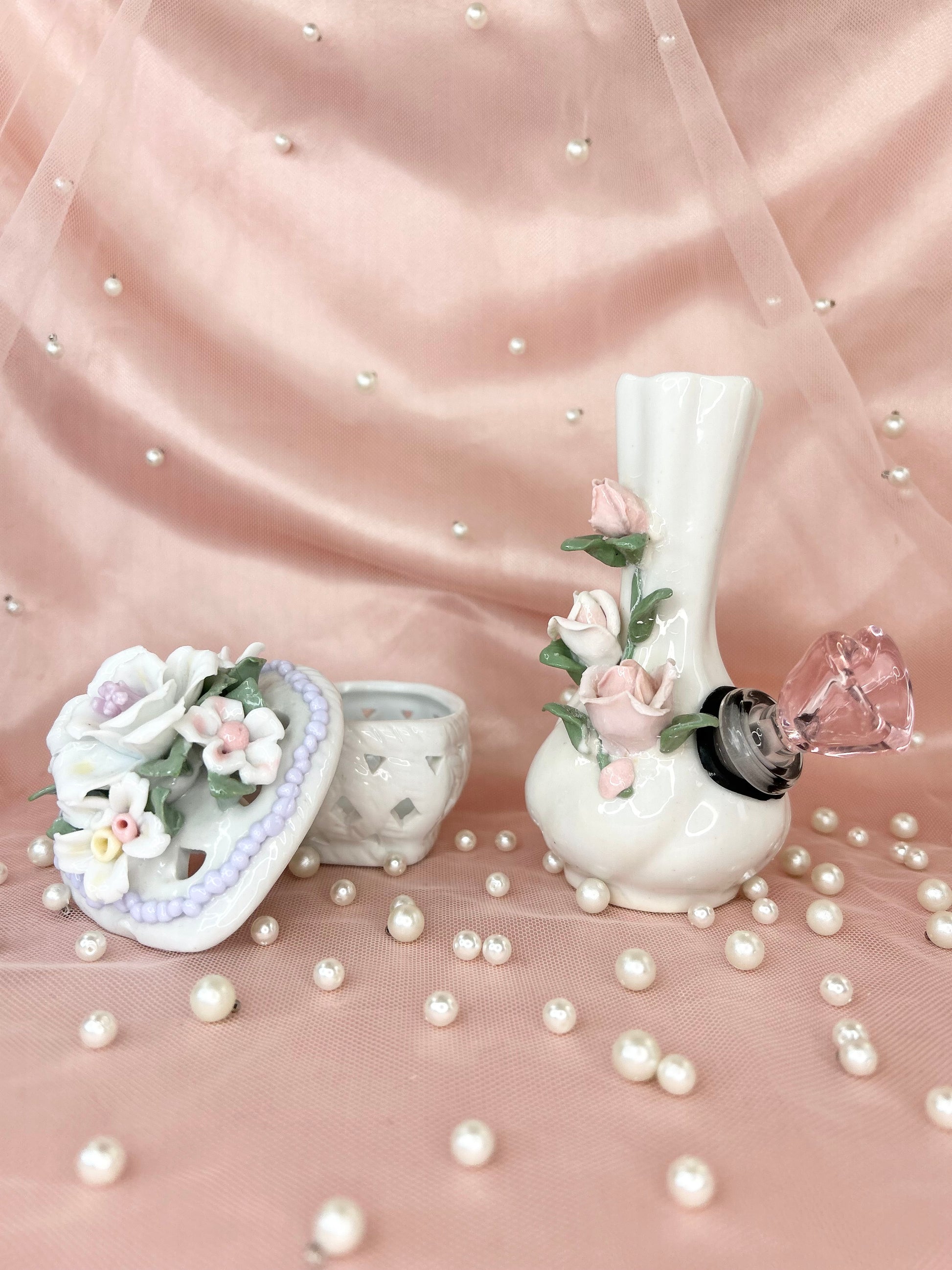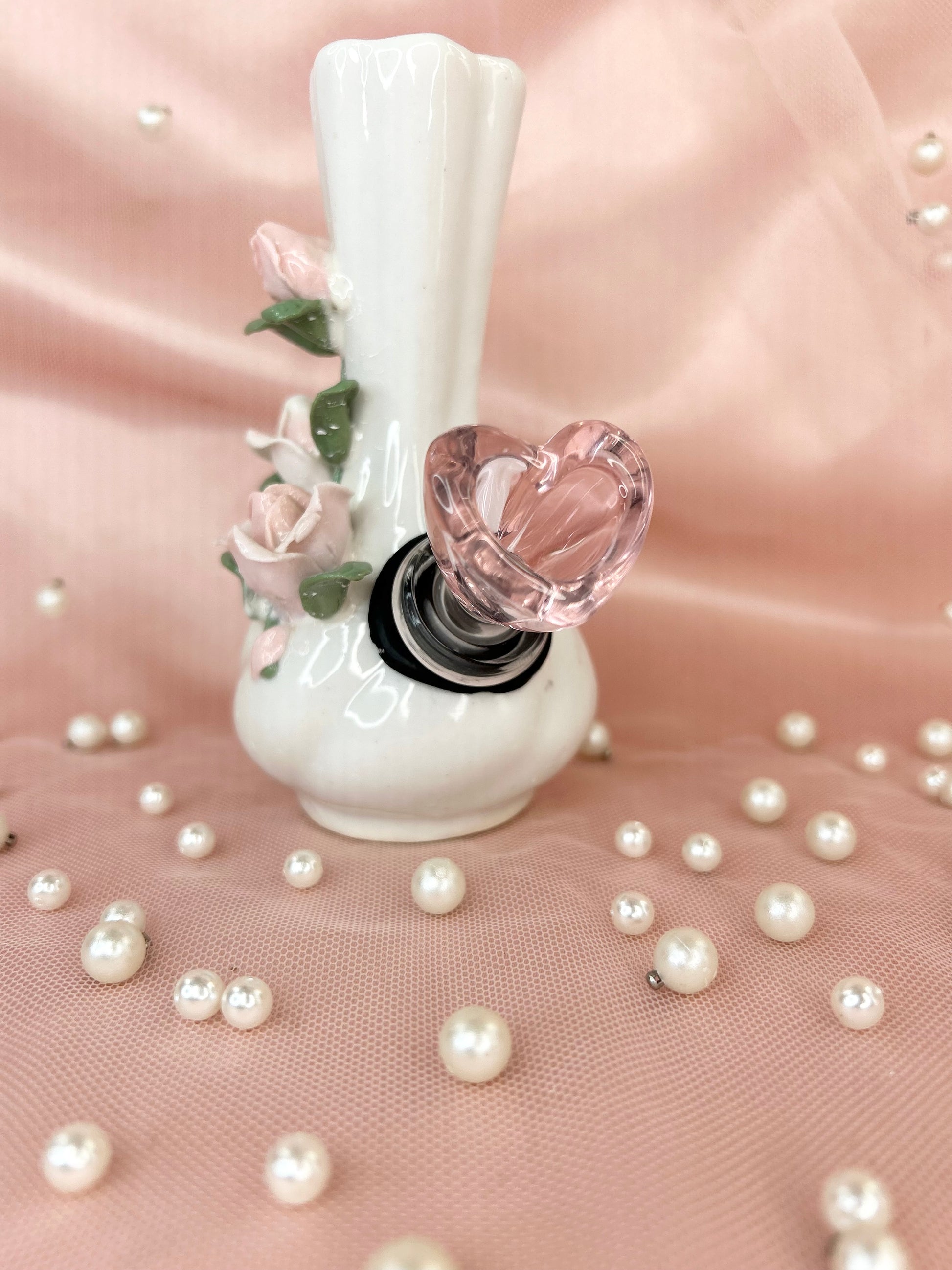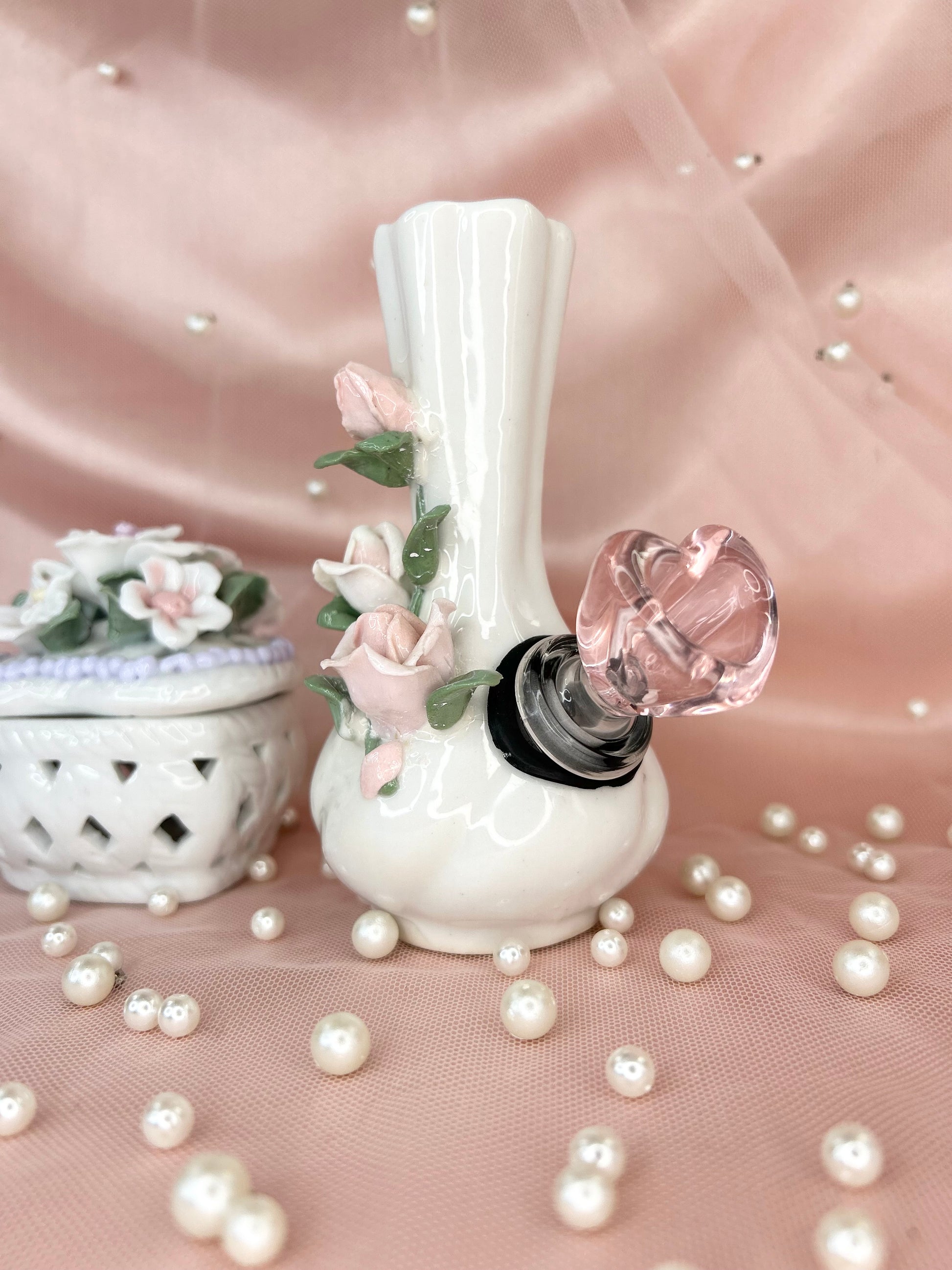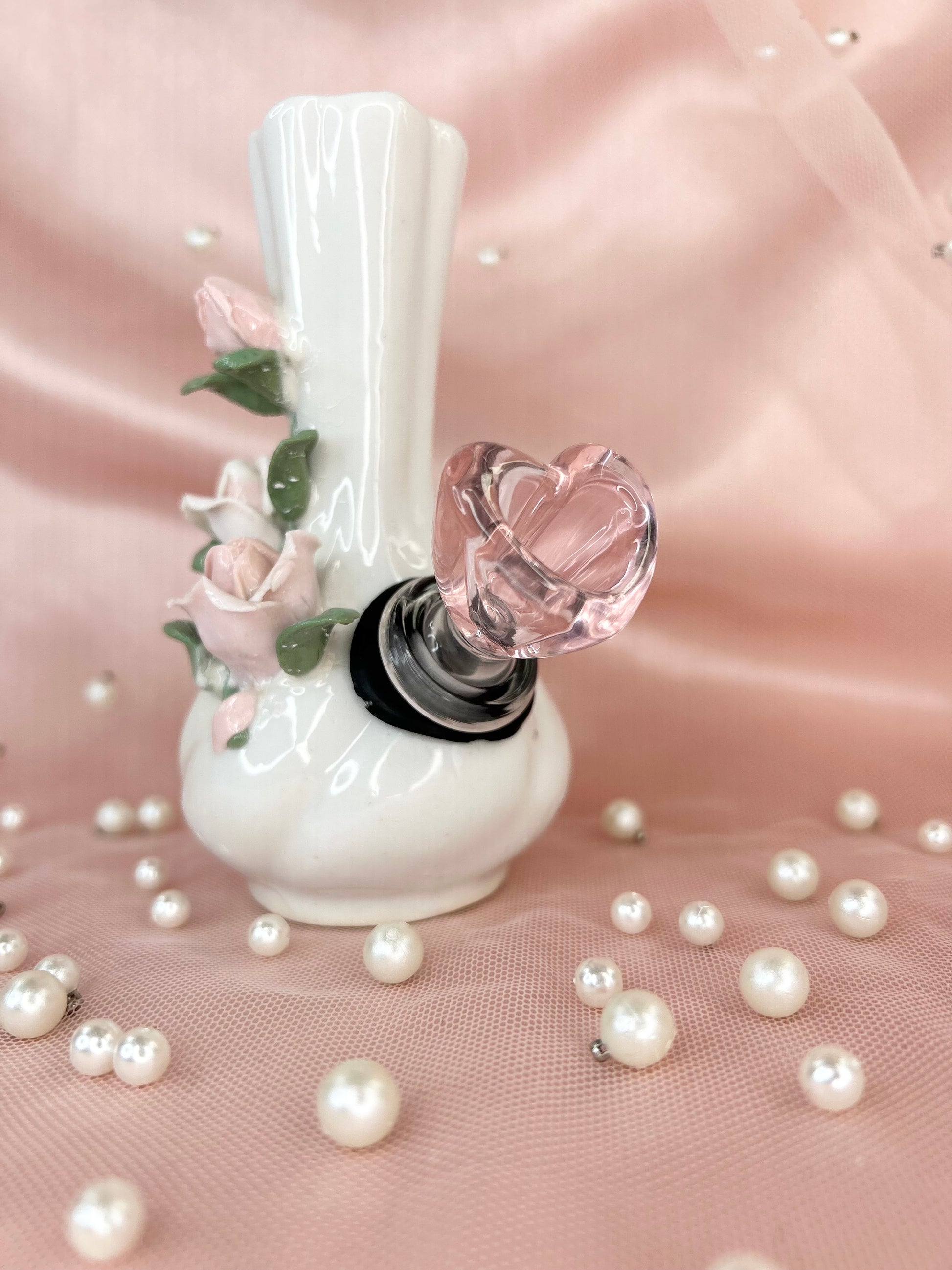 - Includes 14mm pink heart glass bowl piece, pipe and matching floral box