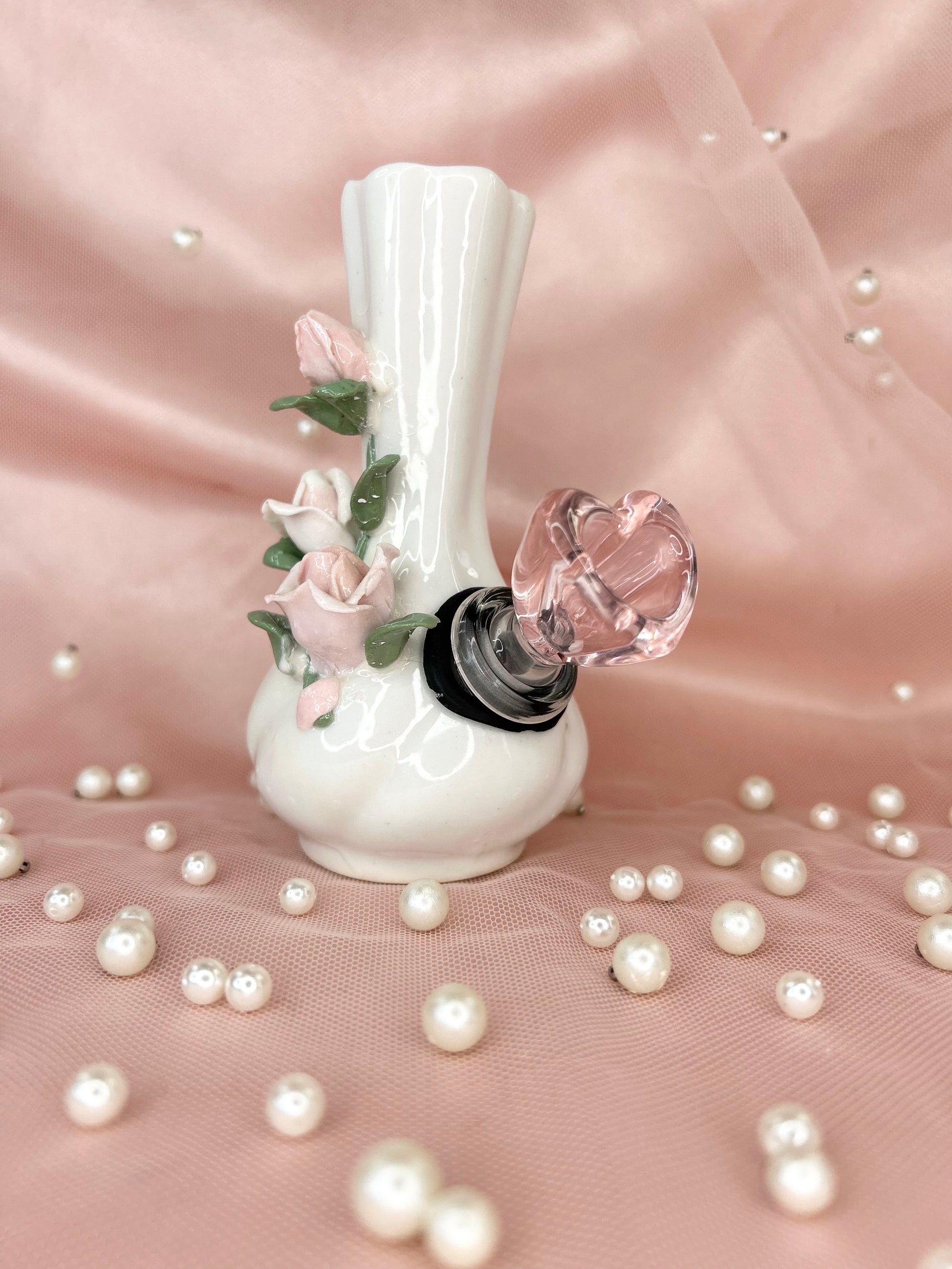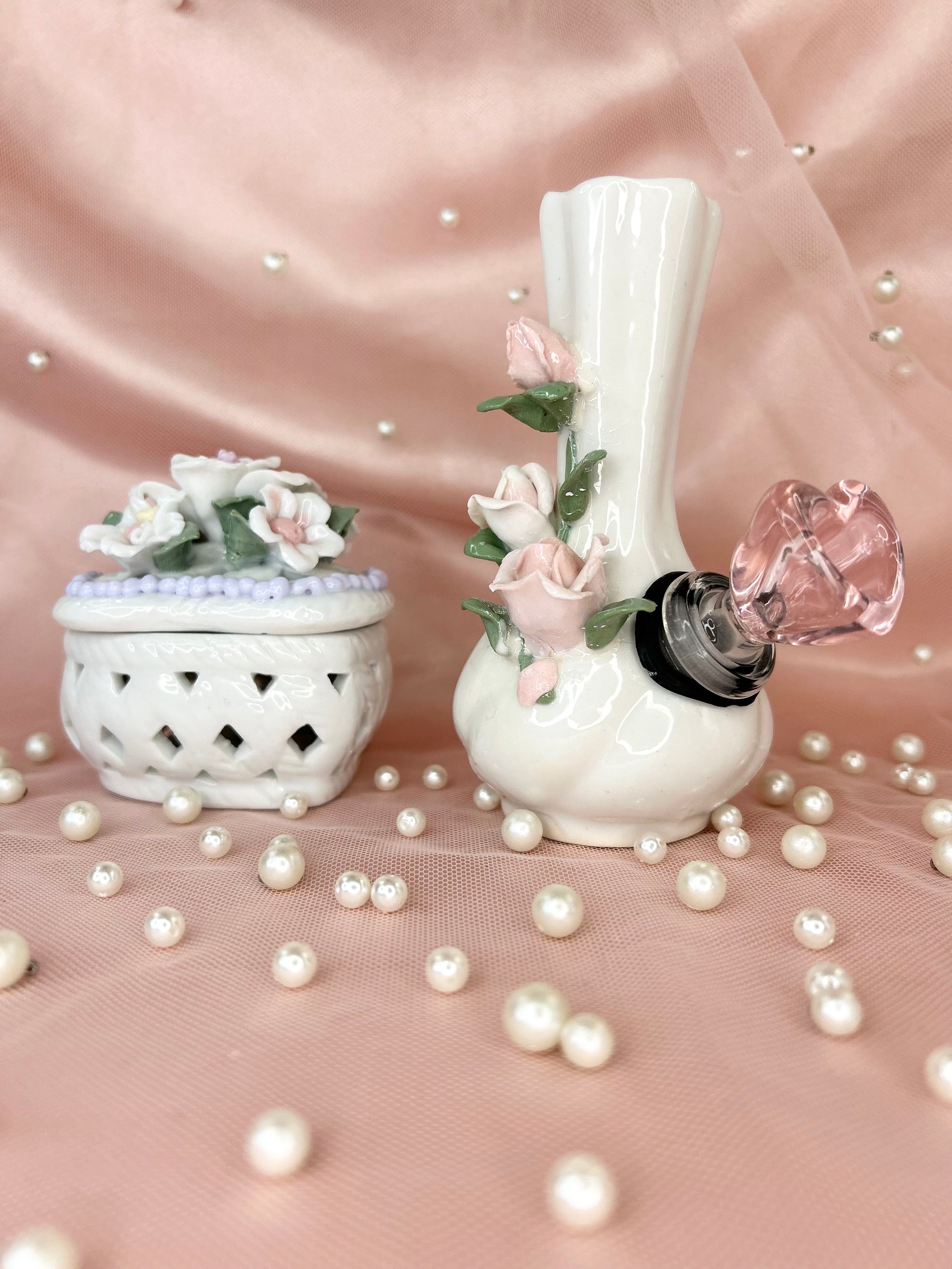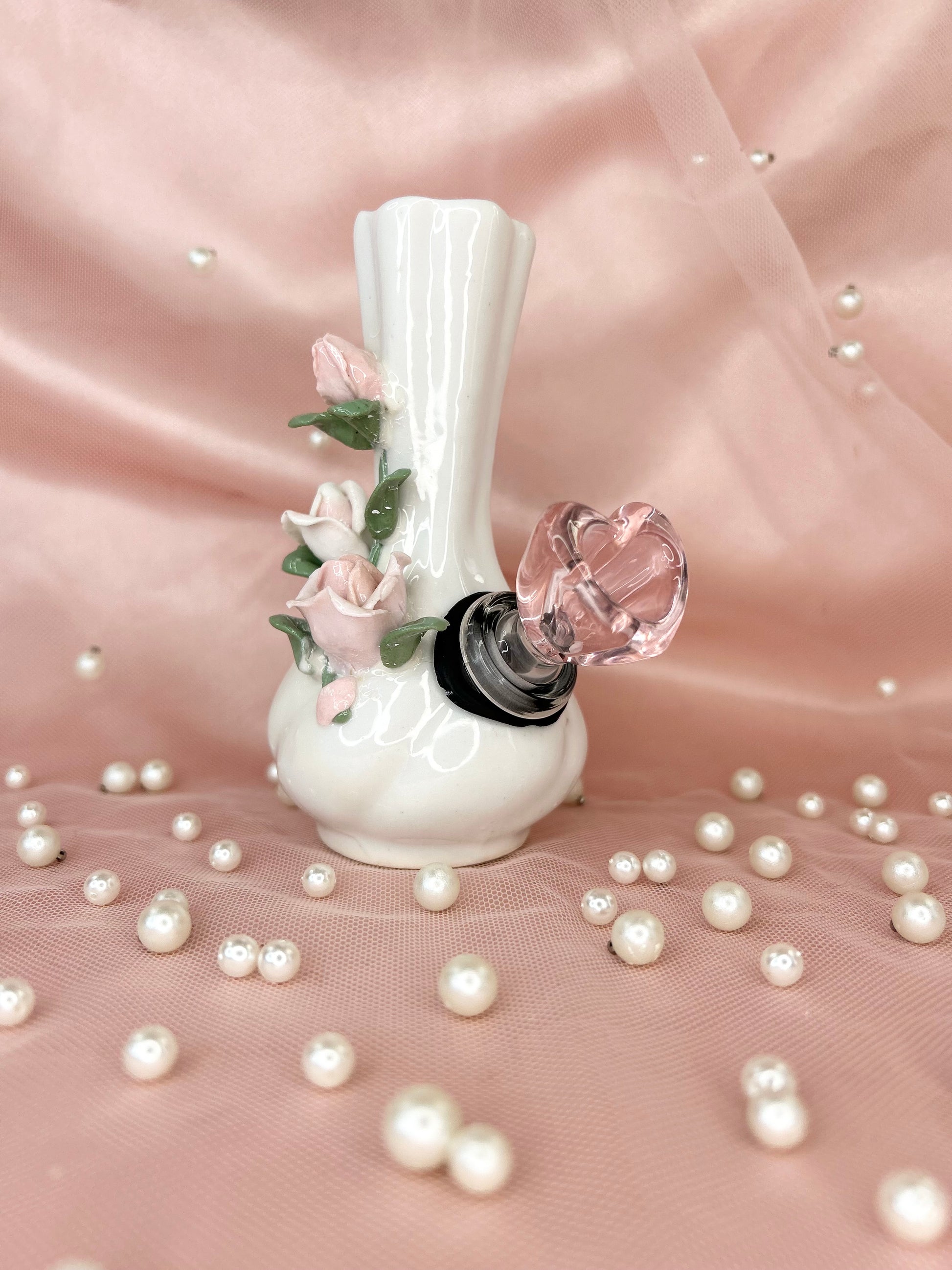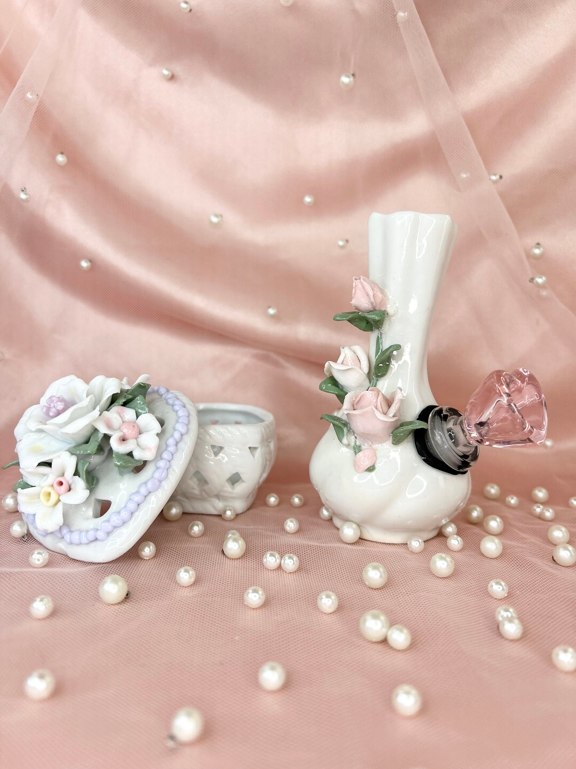 - Includes 14mm pink heart glass bowl piece, pipe and matching floral box