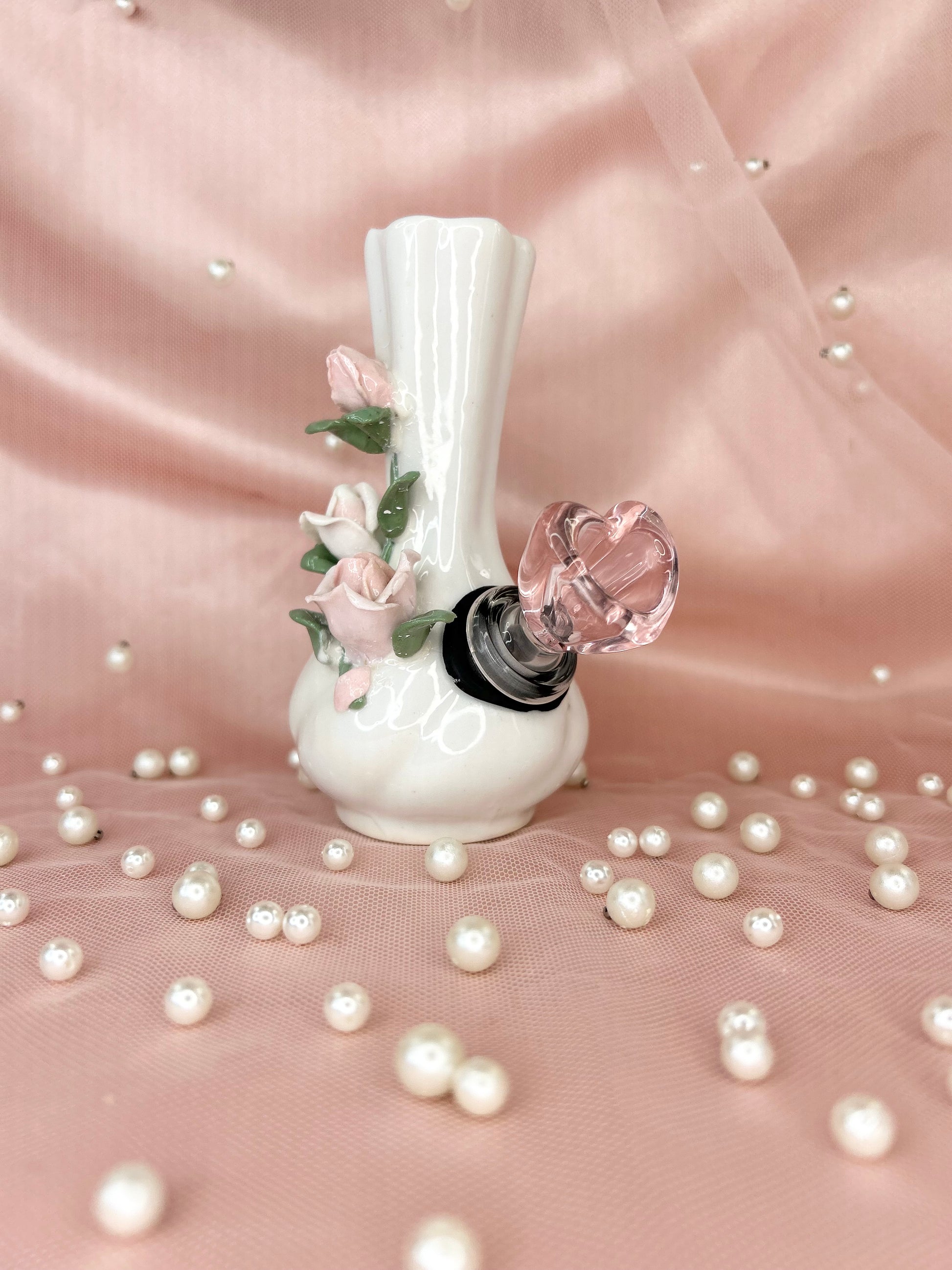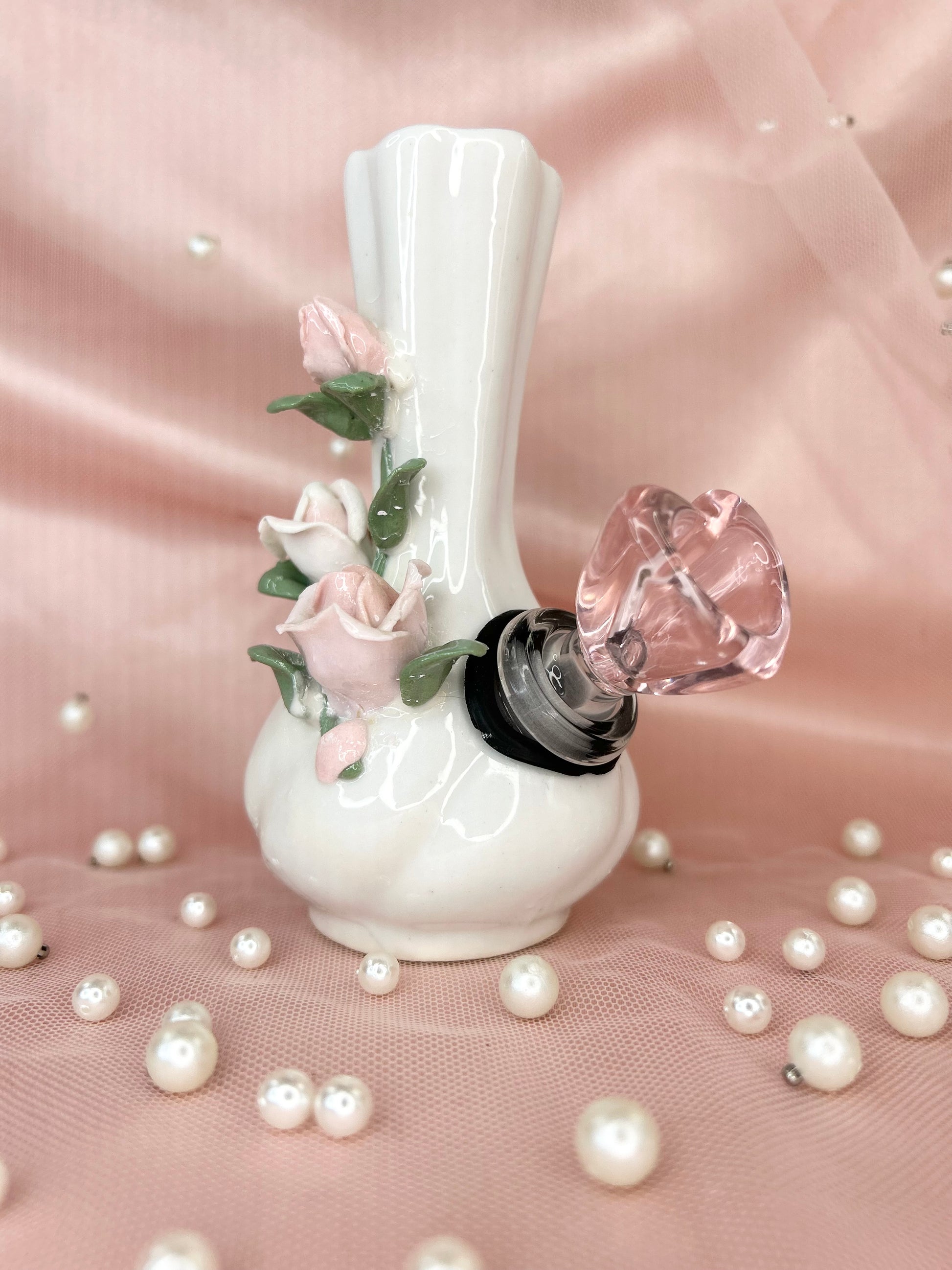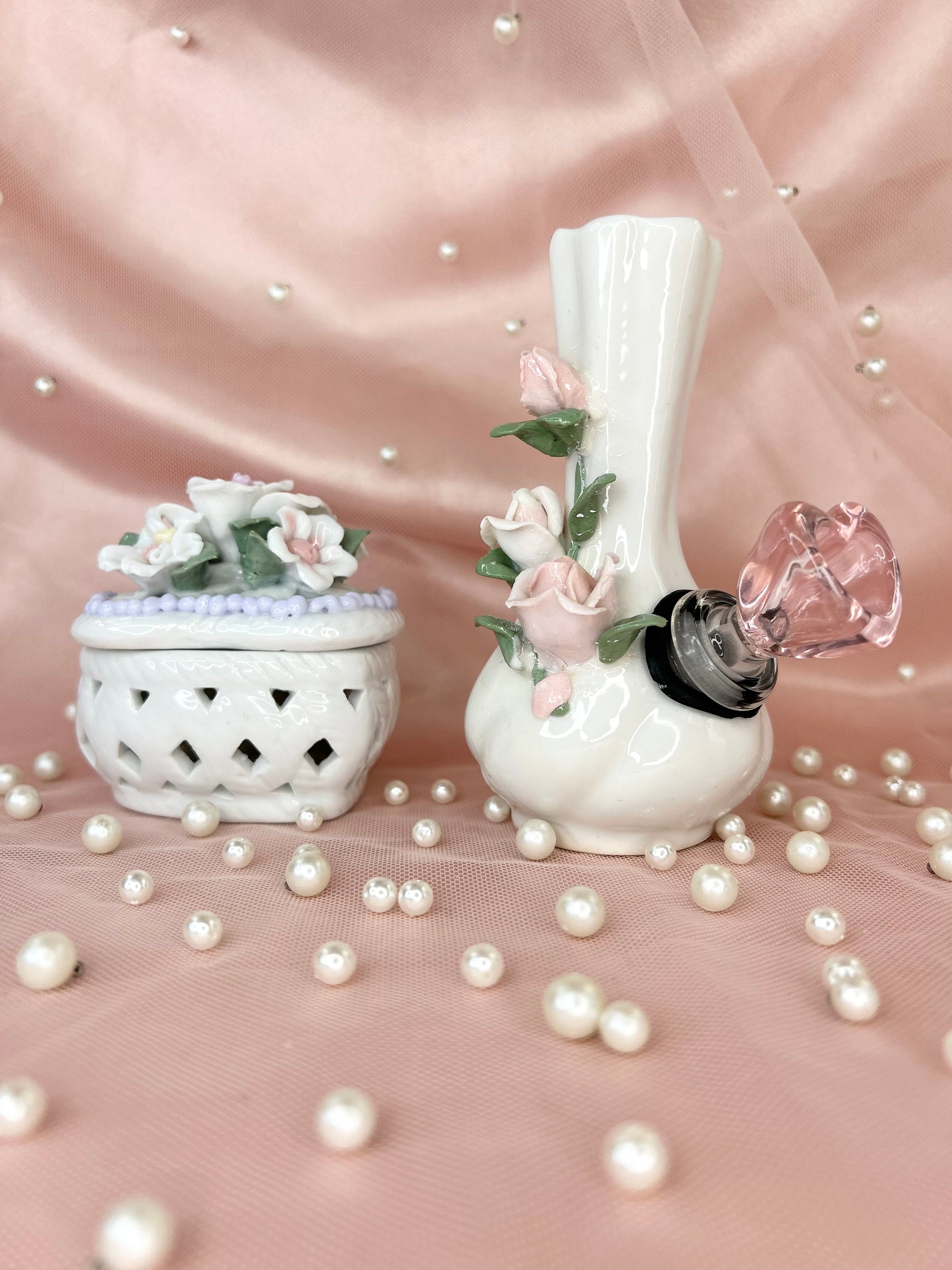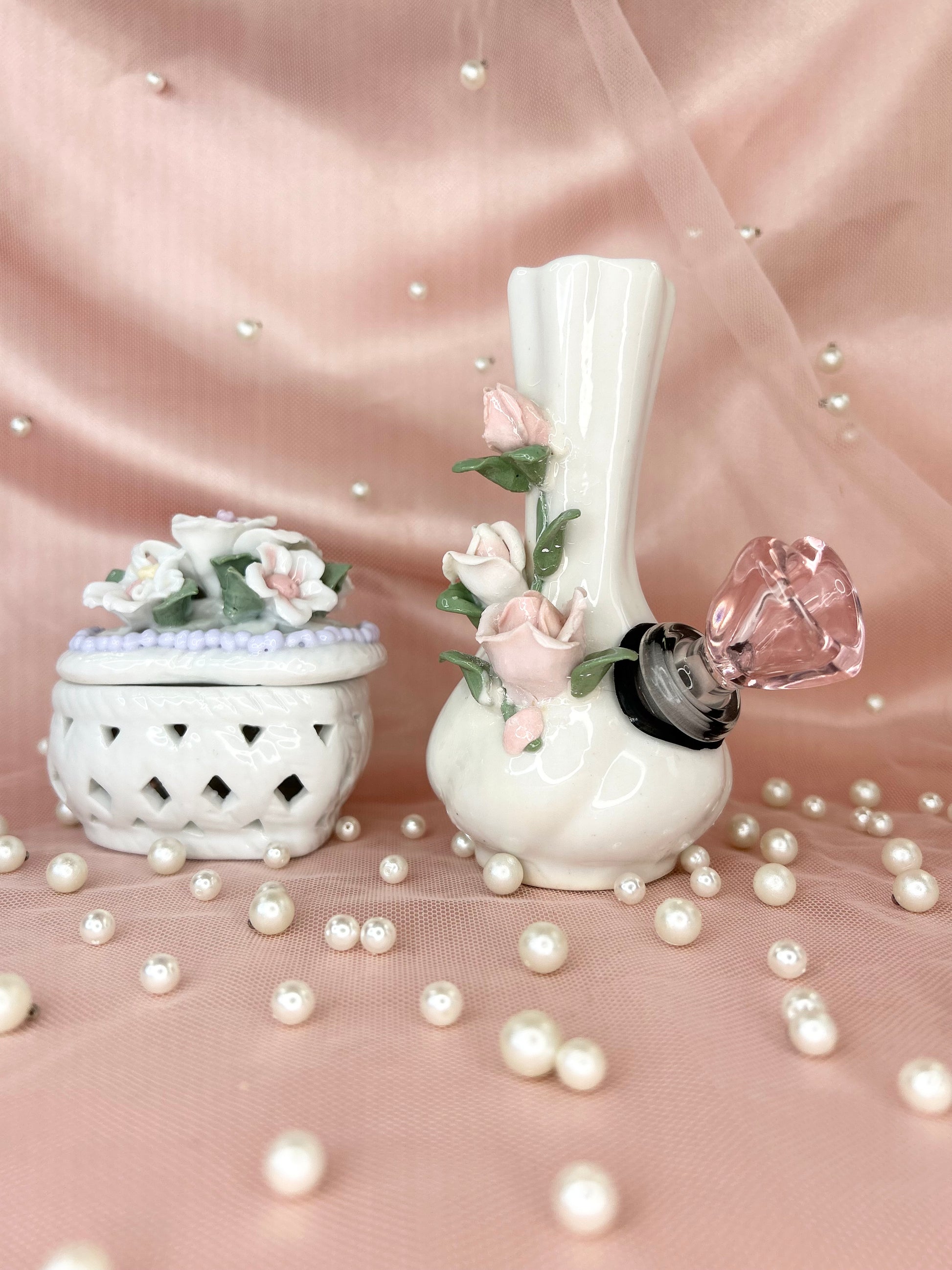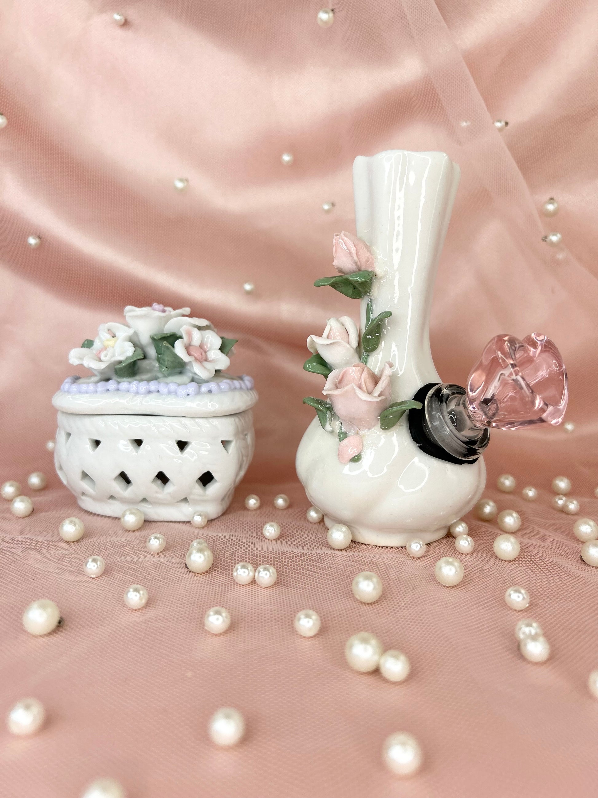 - Includes 14mm pink heart glass bowl piece, pipe and matching floral box