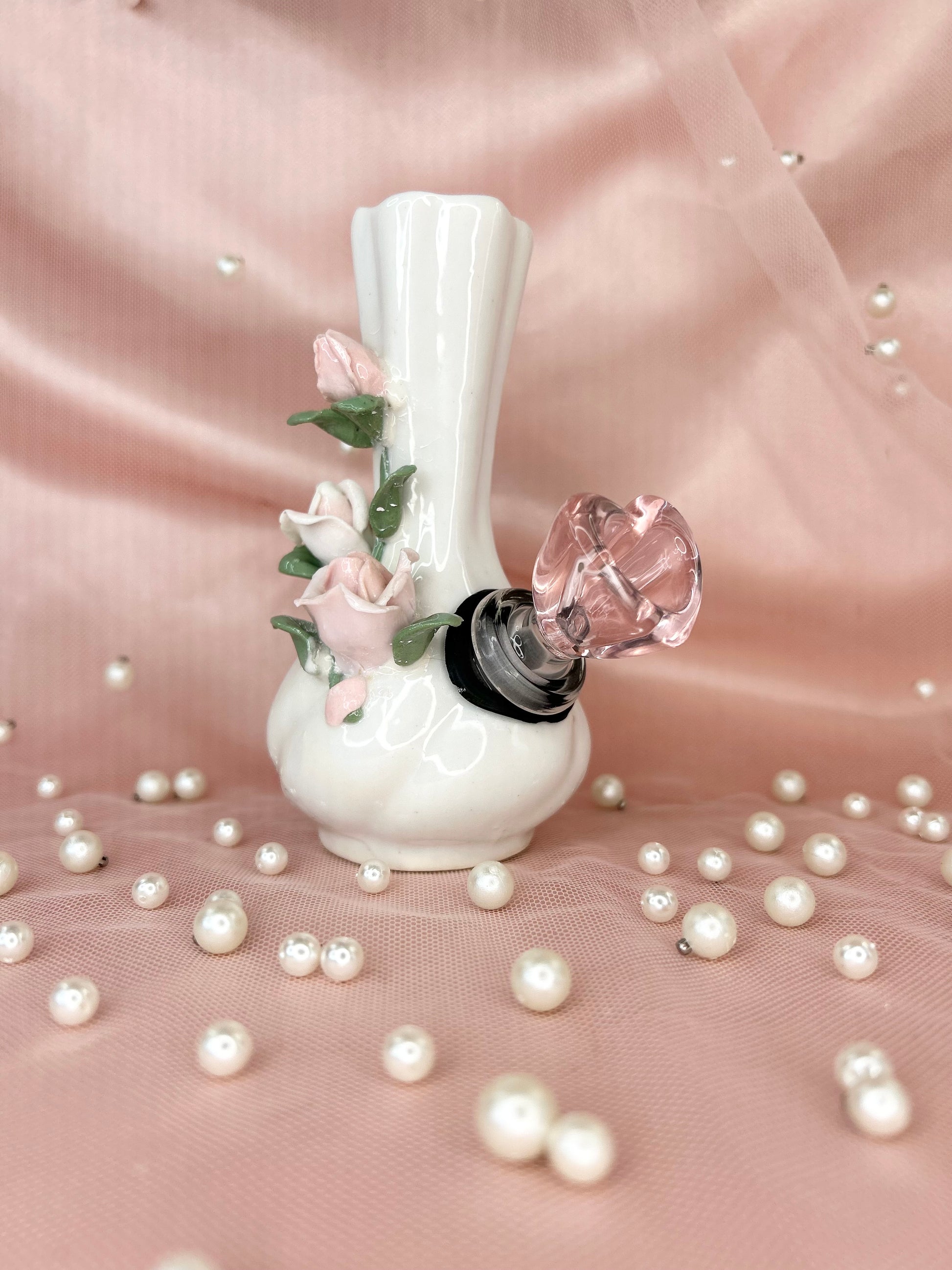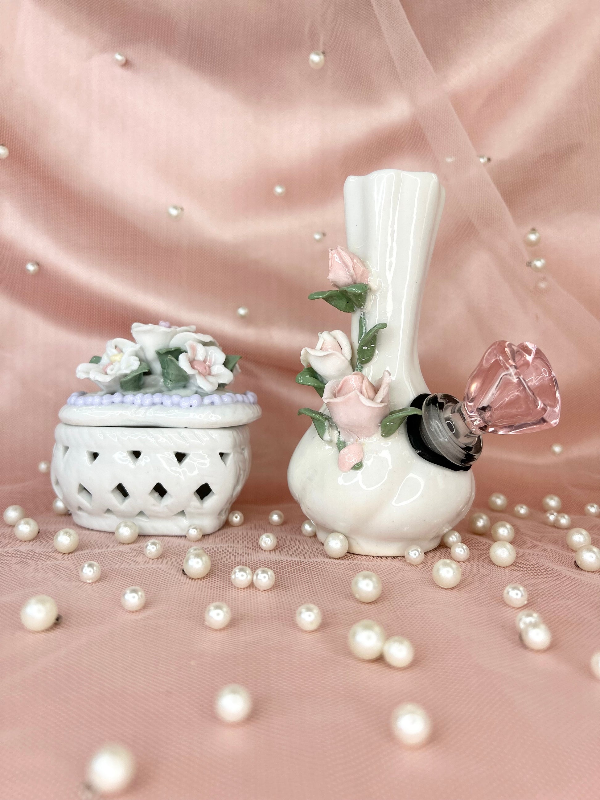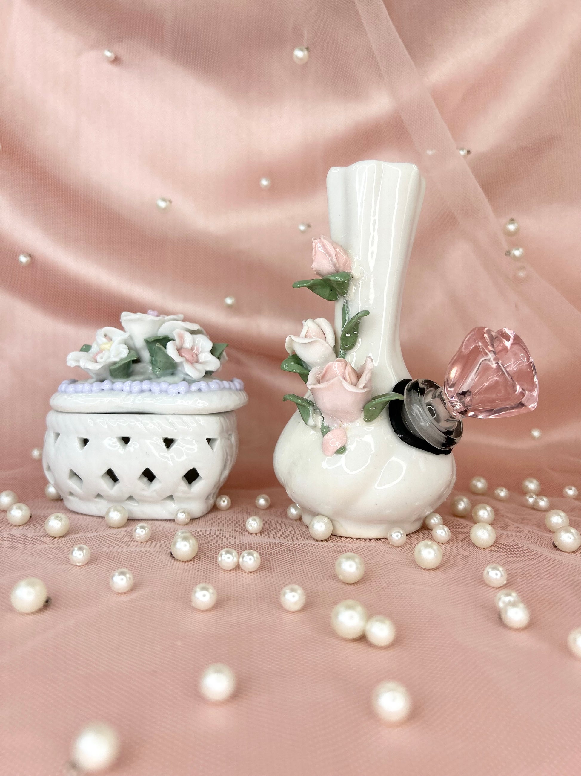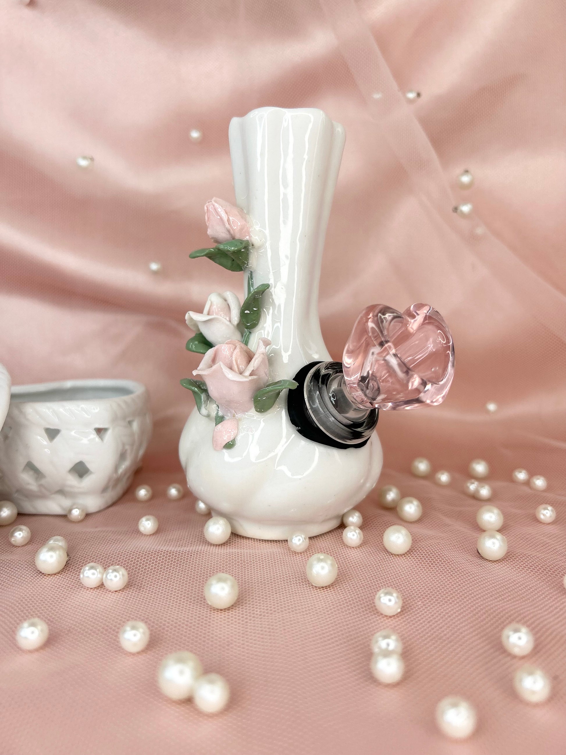 - Includes 14mm pink heart glass bowl piece, pipe and matching floral box