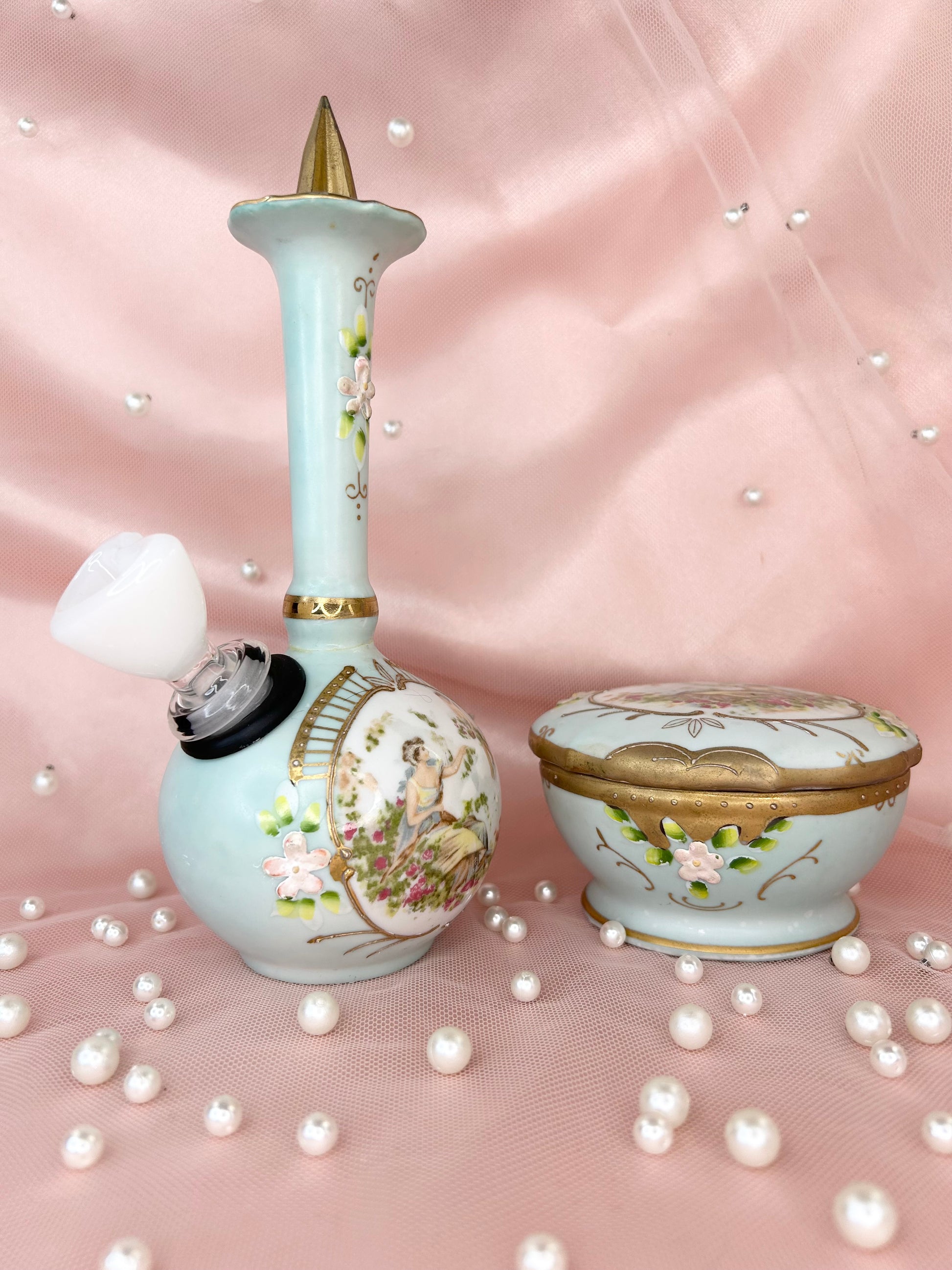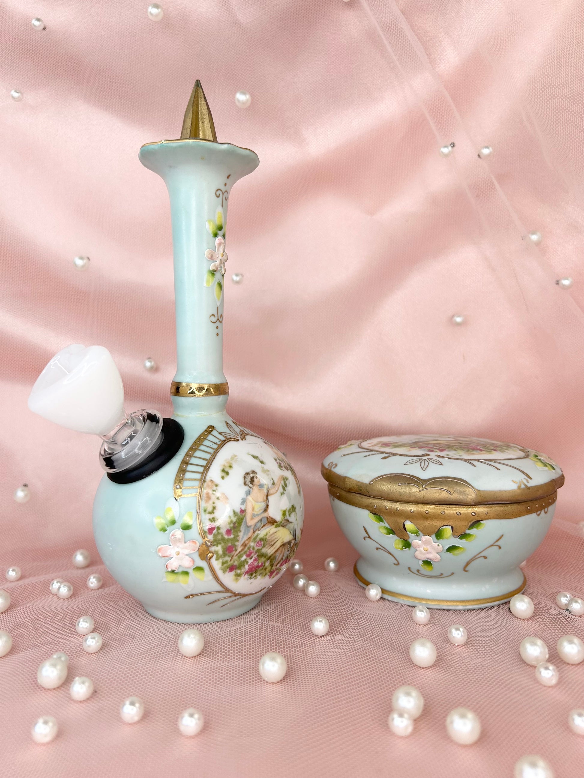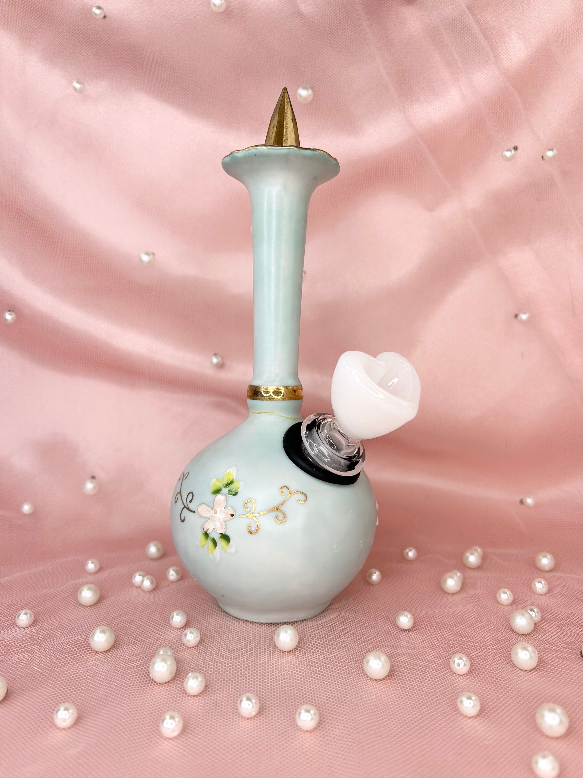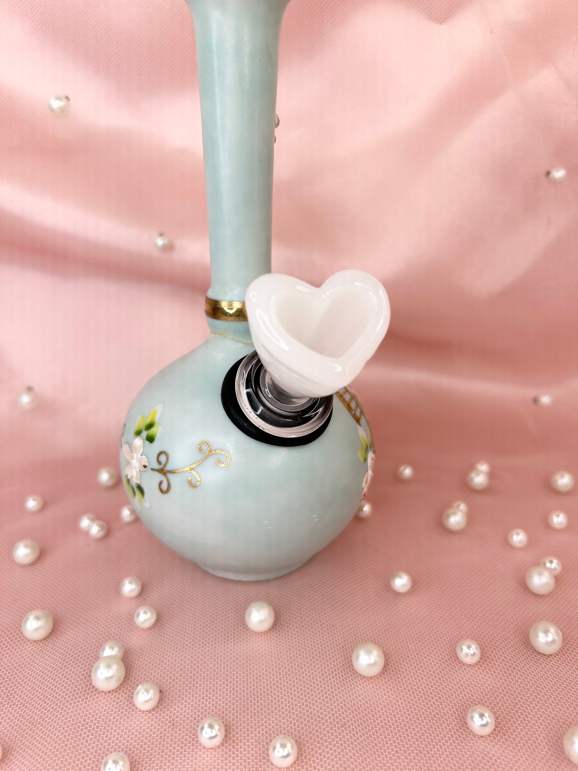 - Includes 14mm white heart glass bowl piece, bubbler and matching box