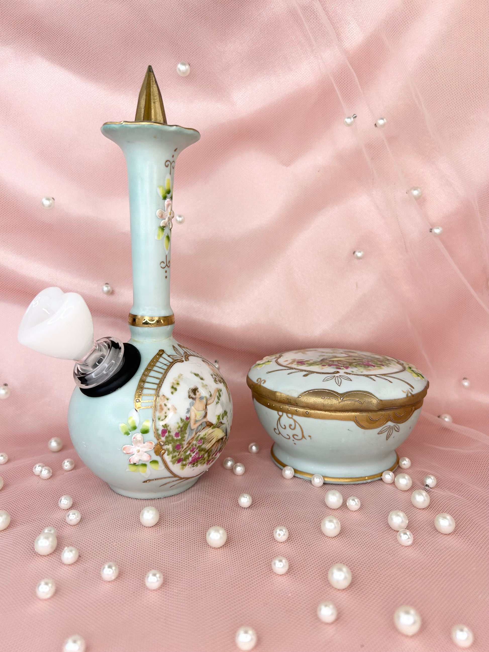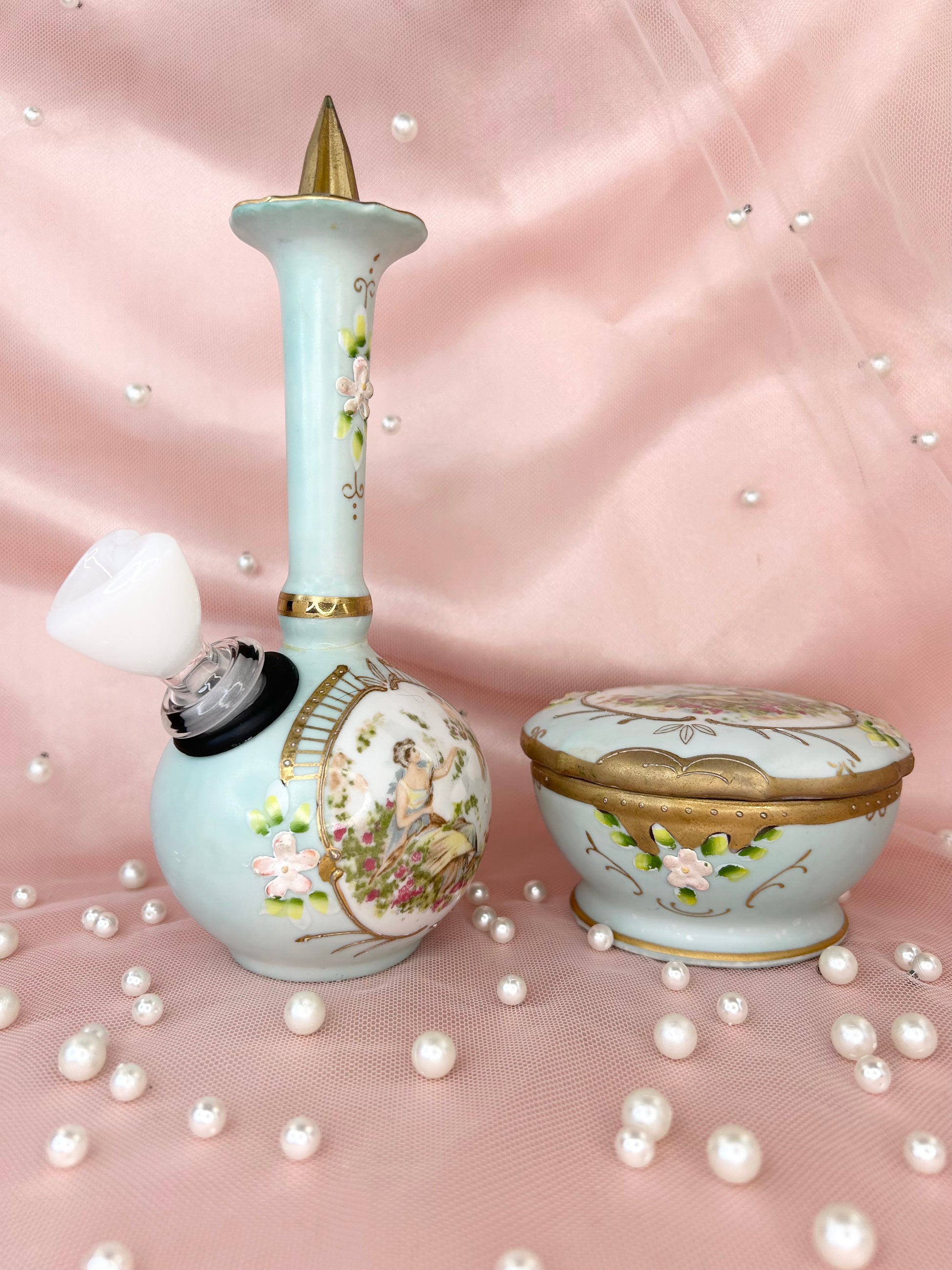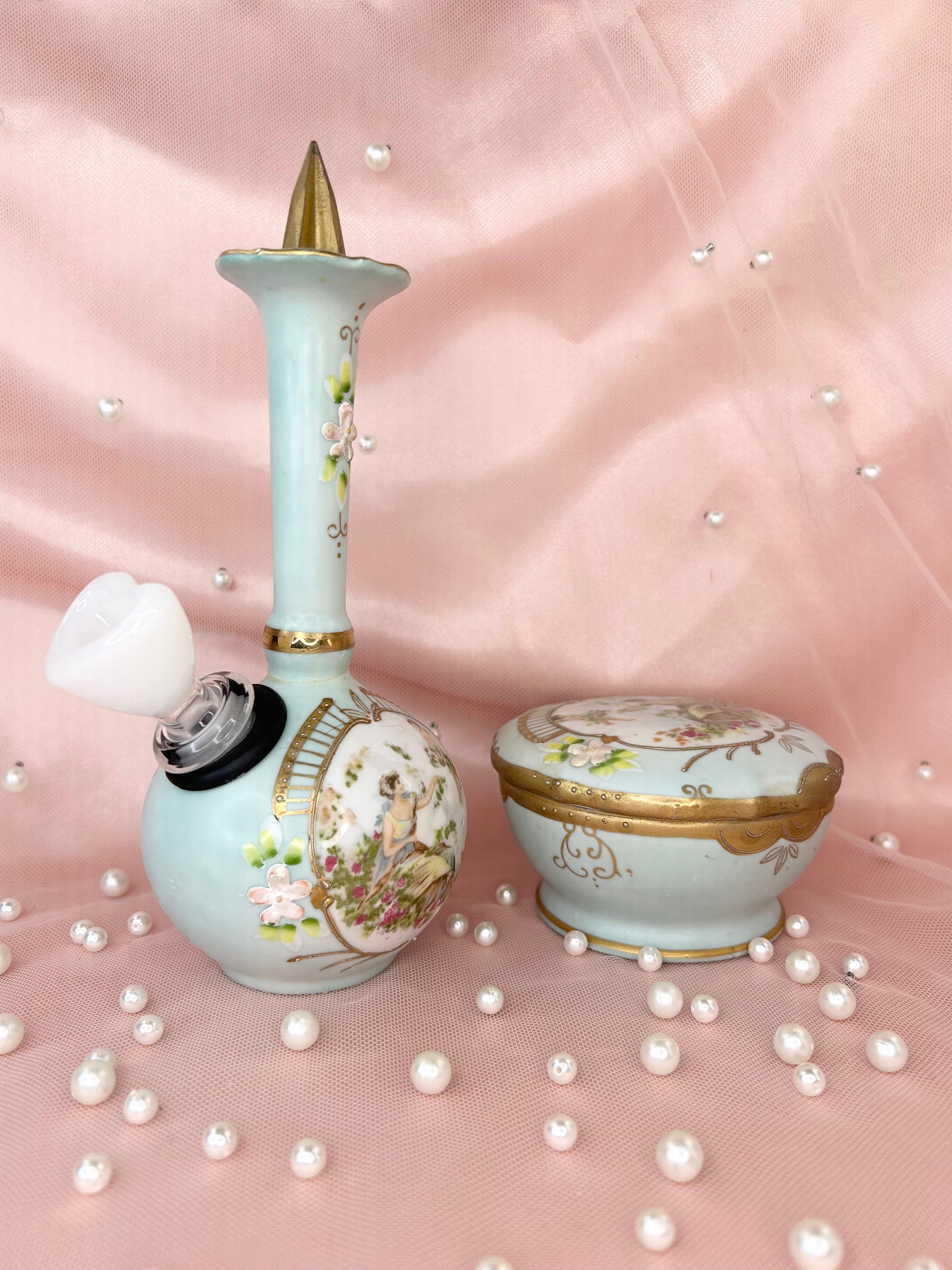 - Includes 14mm white heart glass bowl piece, bubbler and matching box