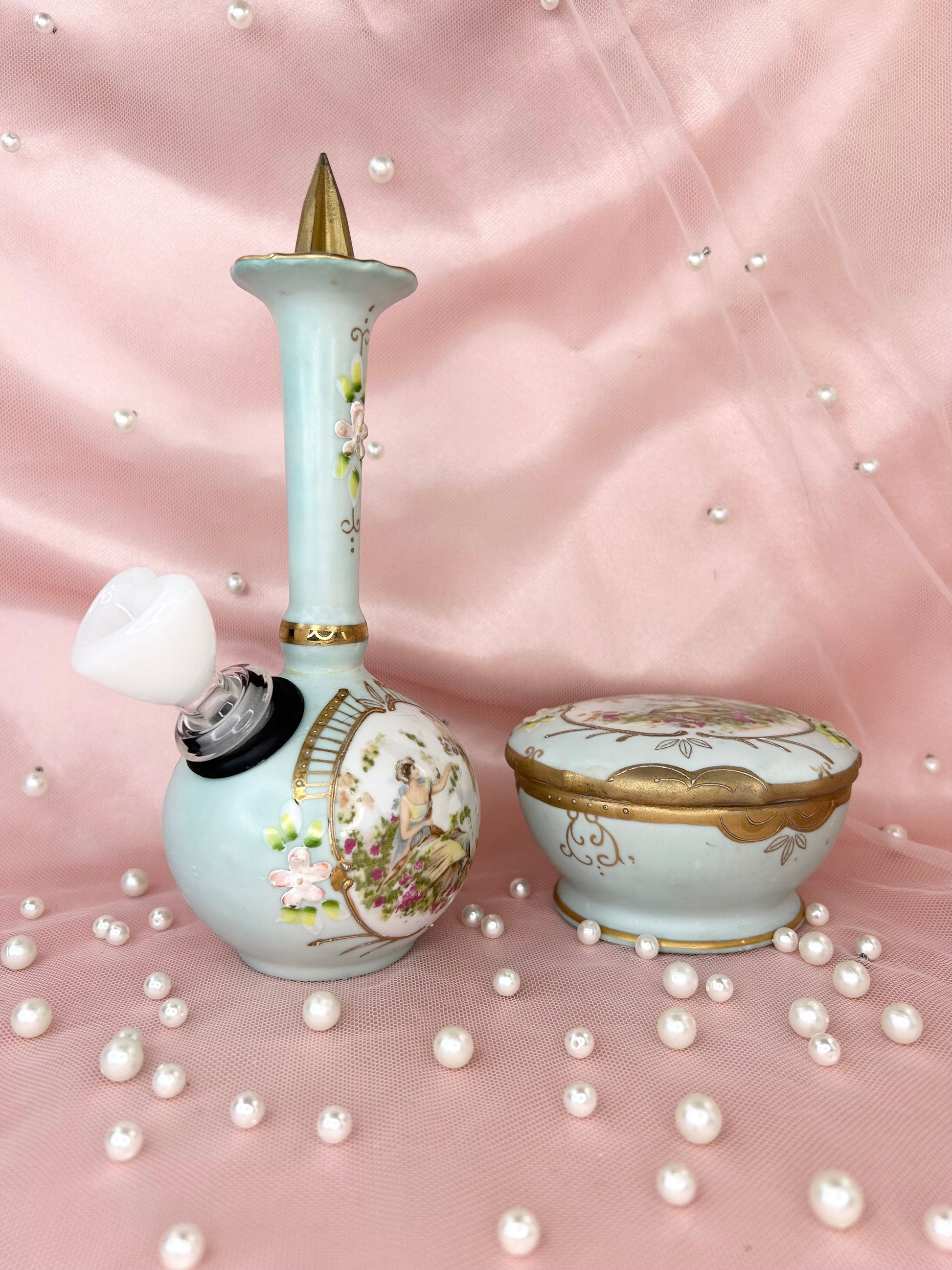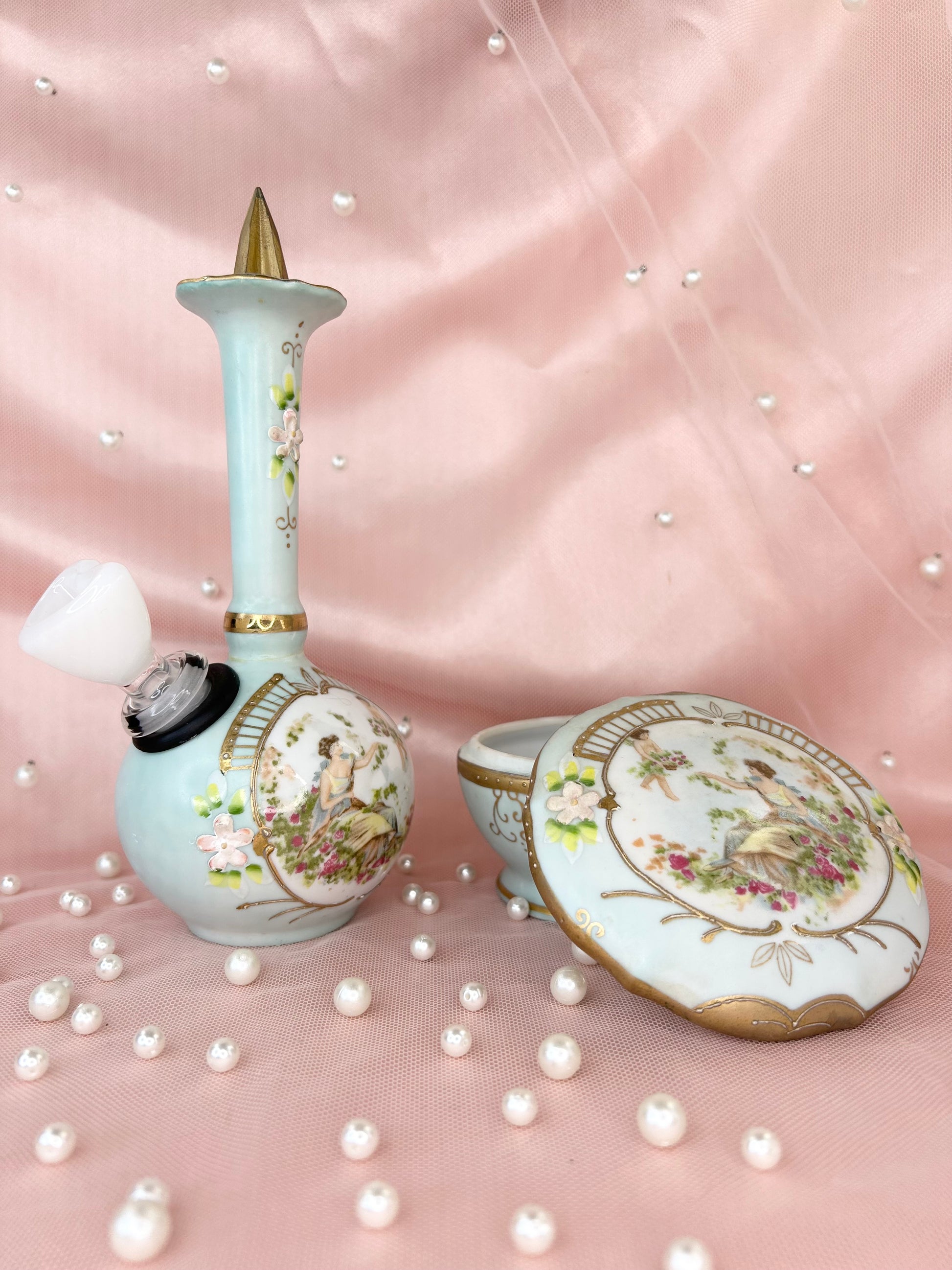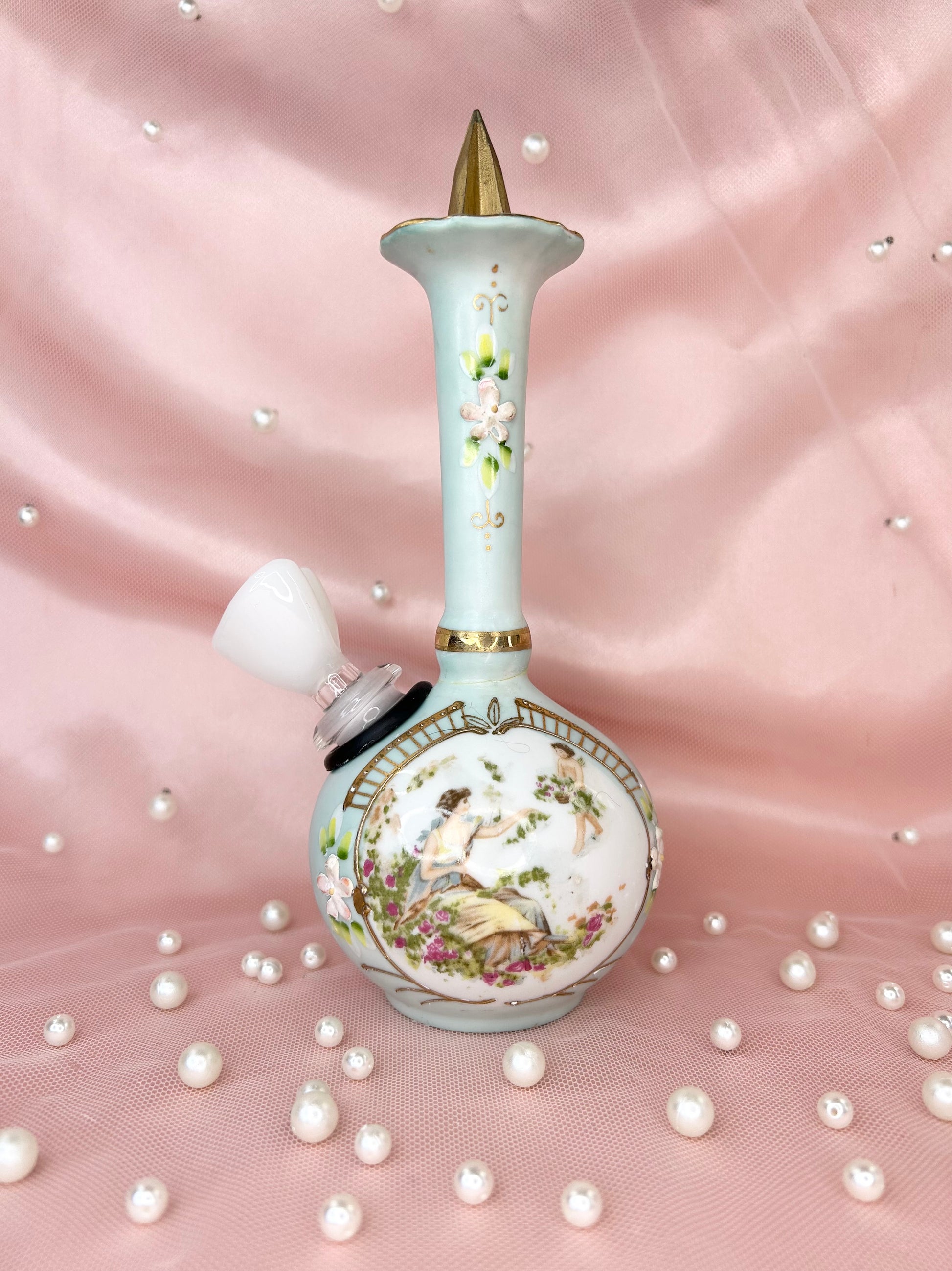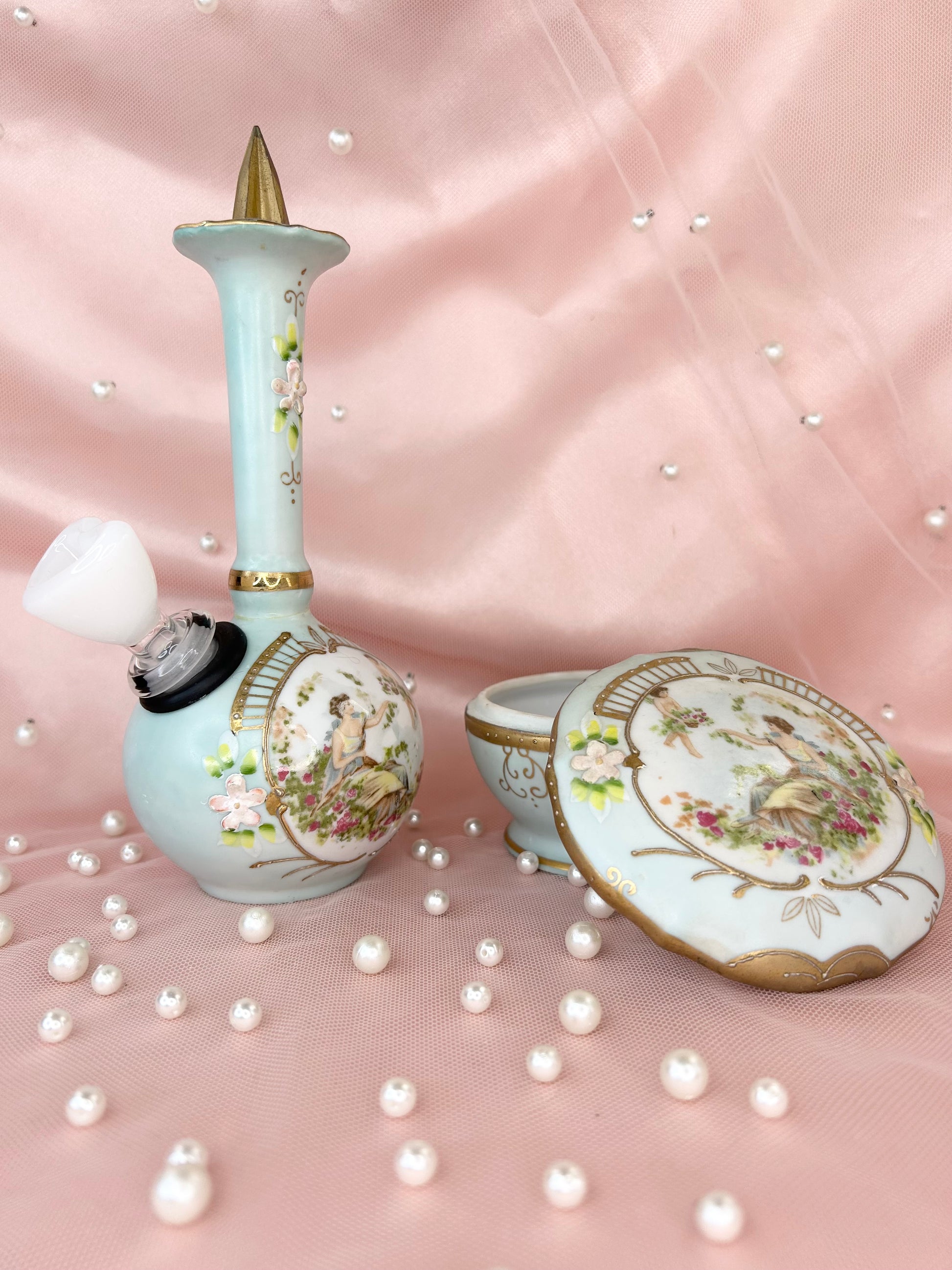 - Includes 14mm white heart glass bowl piece, bubbler and matching box