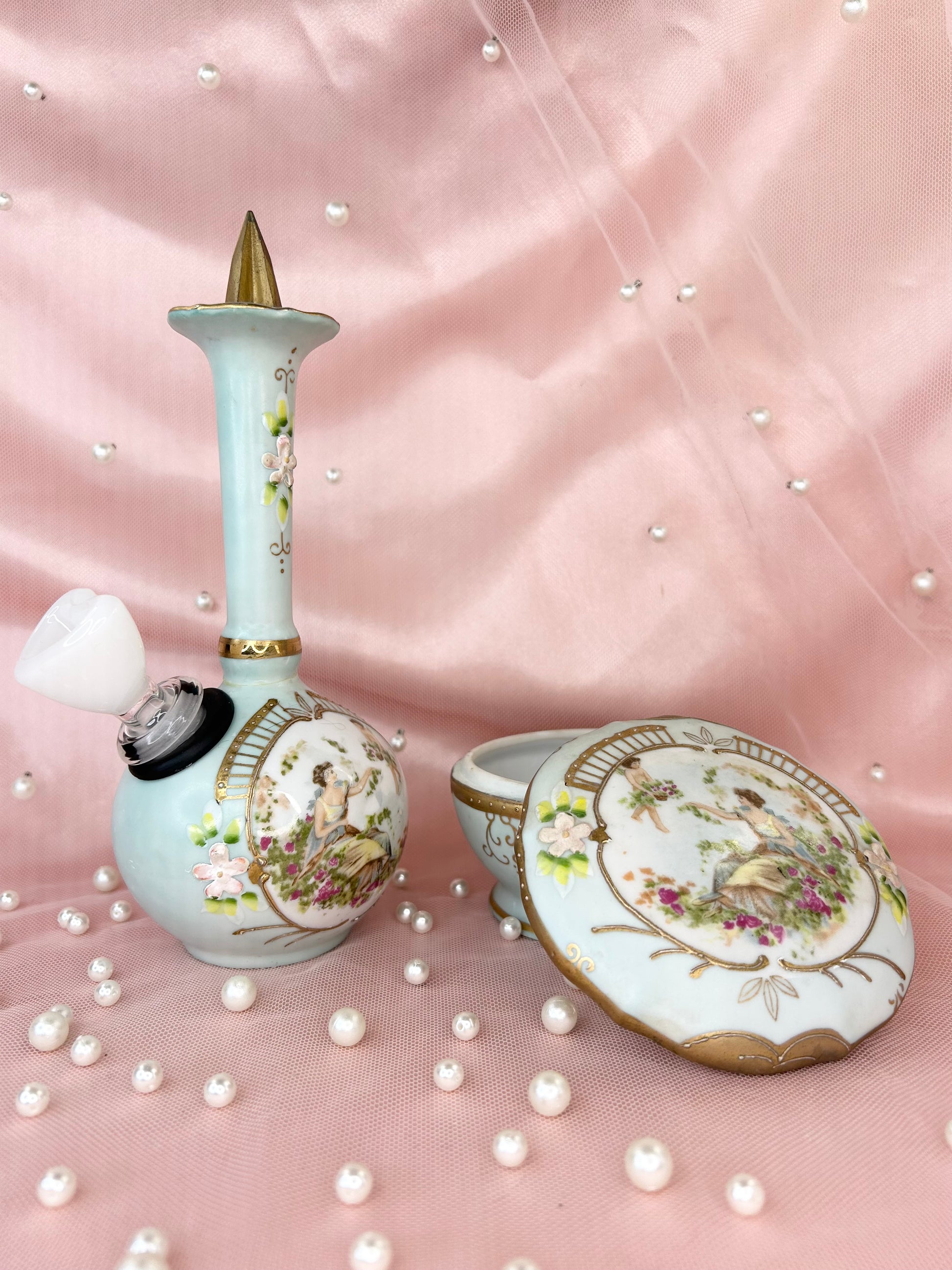 - Vintage Lenwile Ardalt Floral Vase Bubbler Set