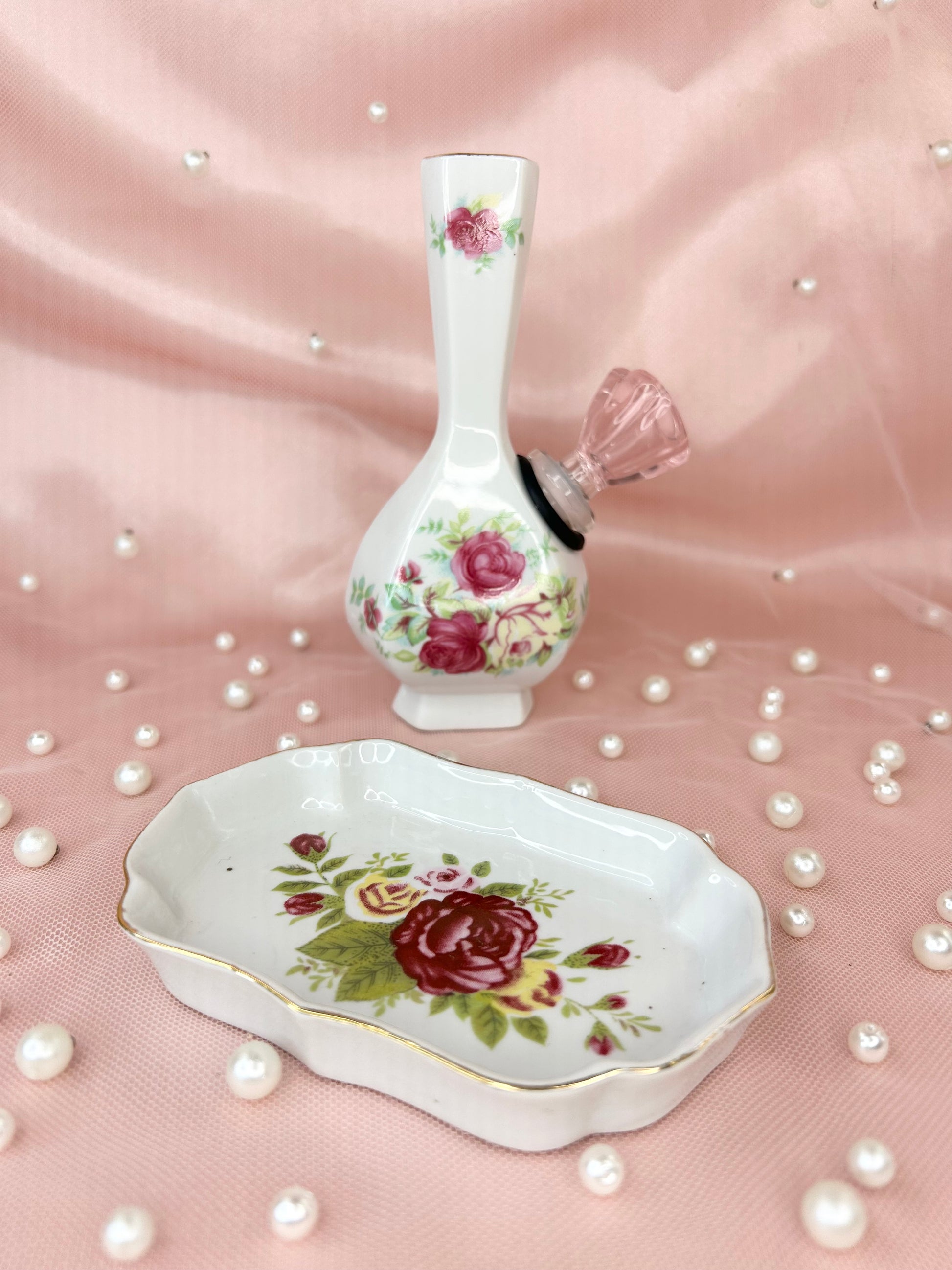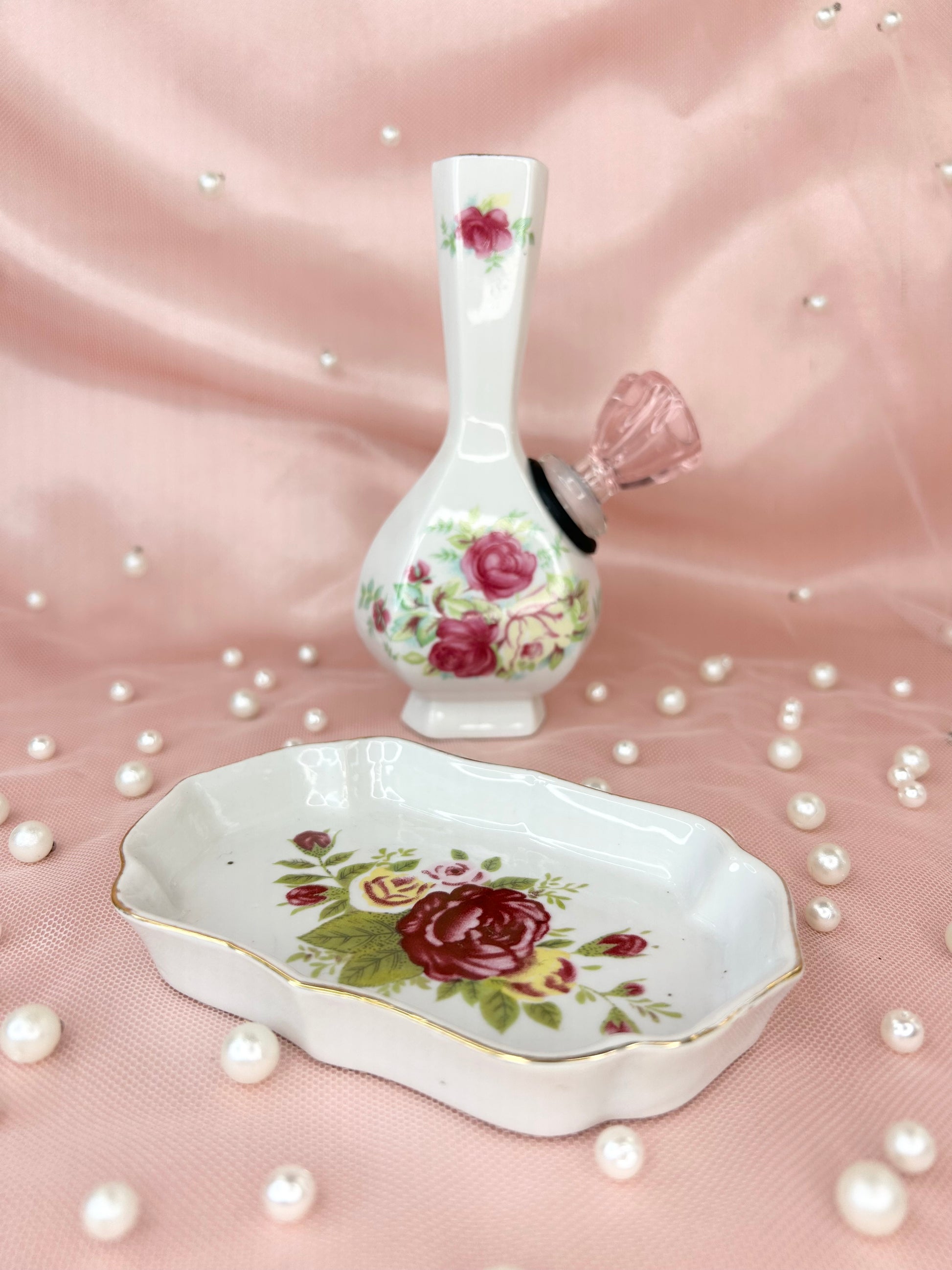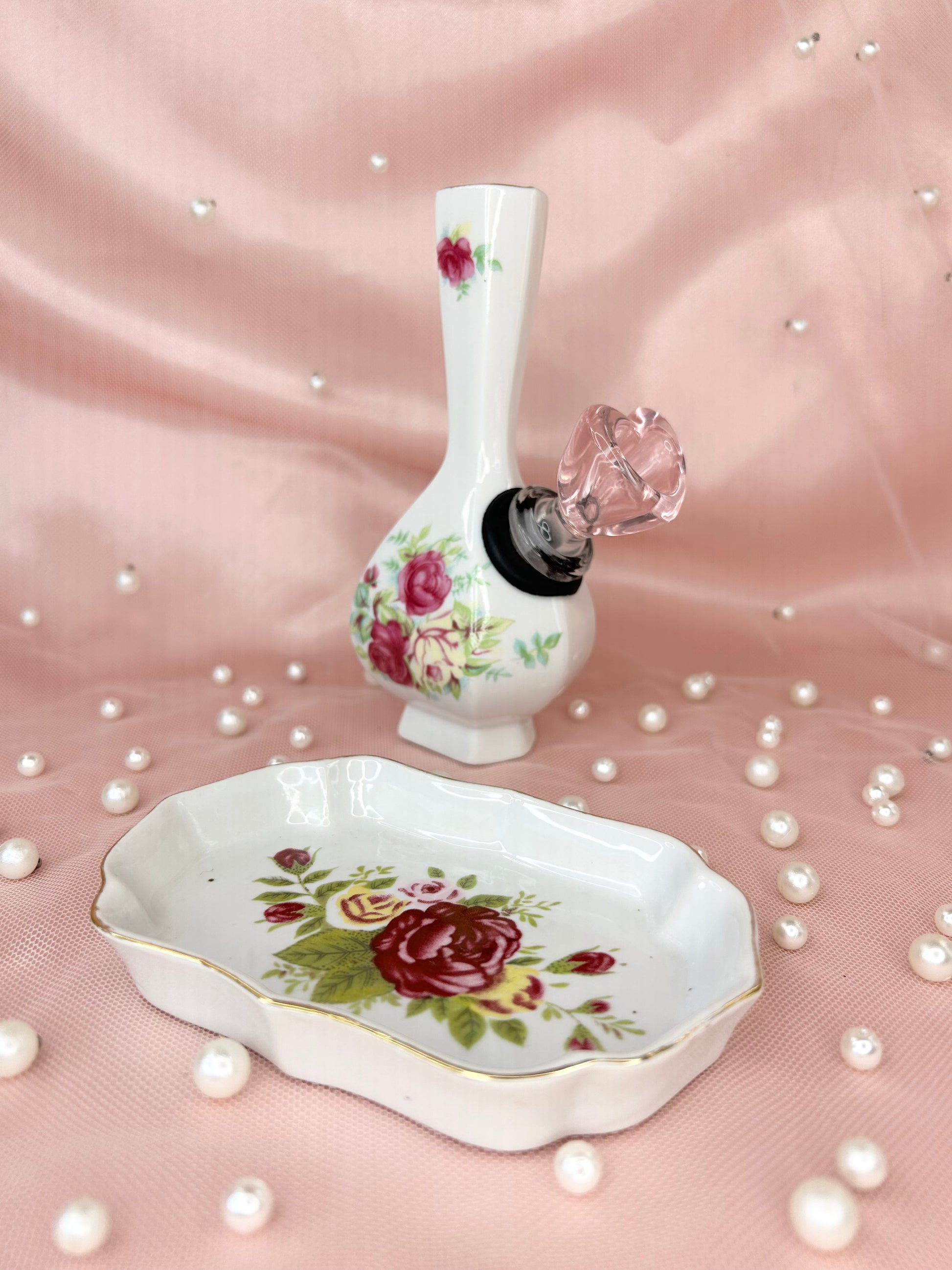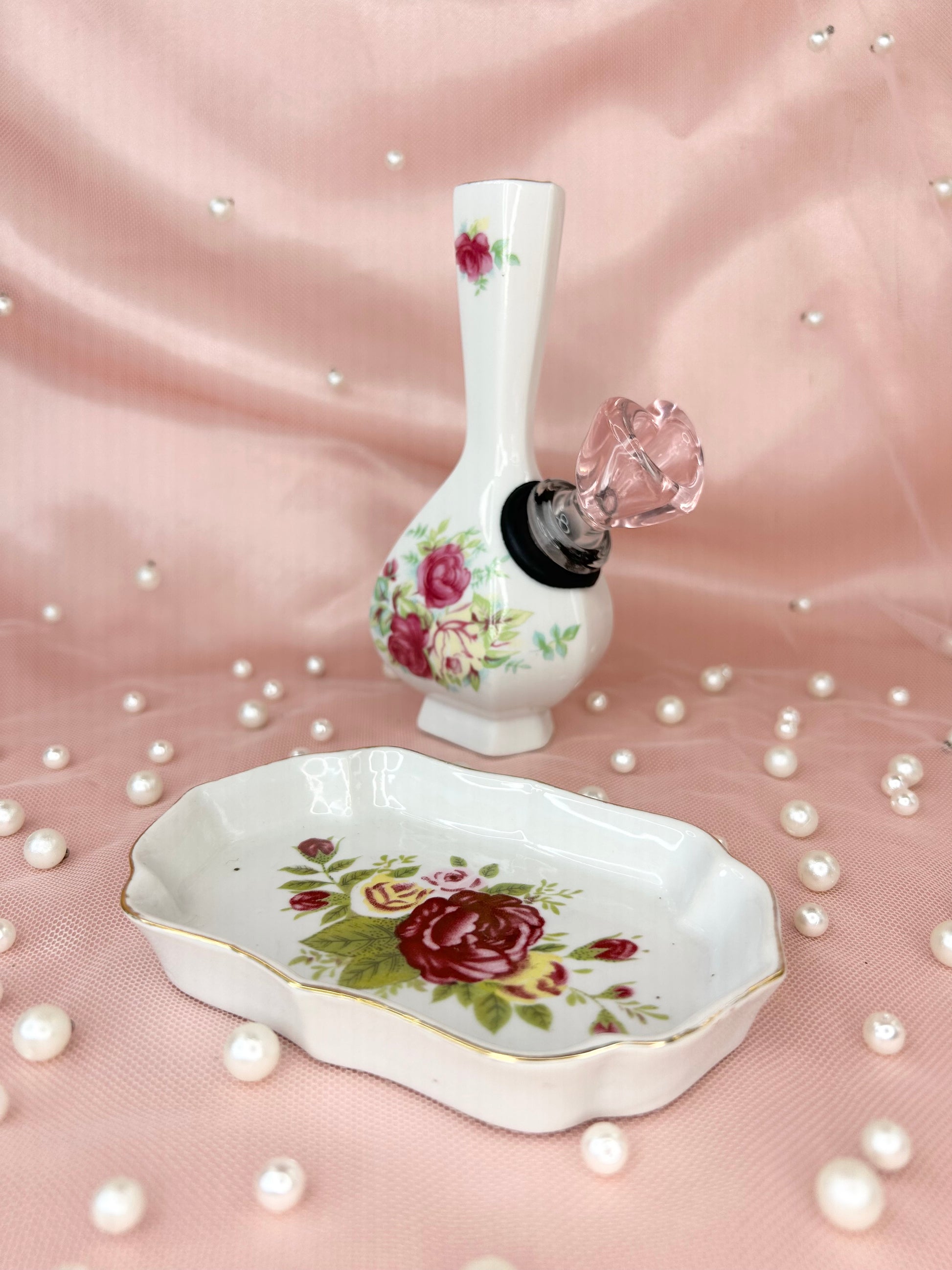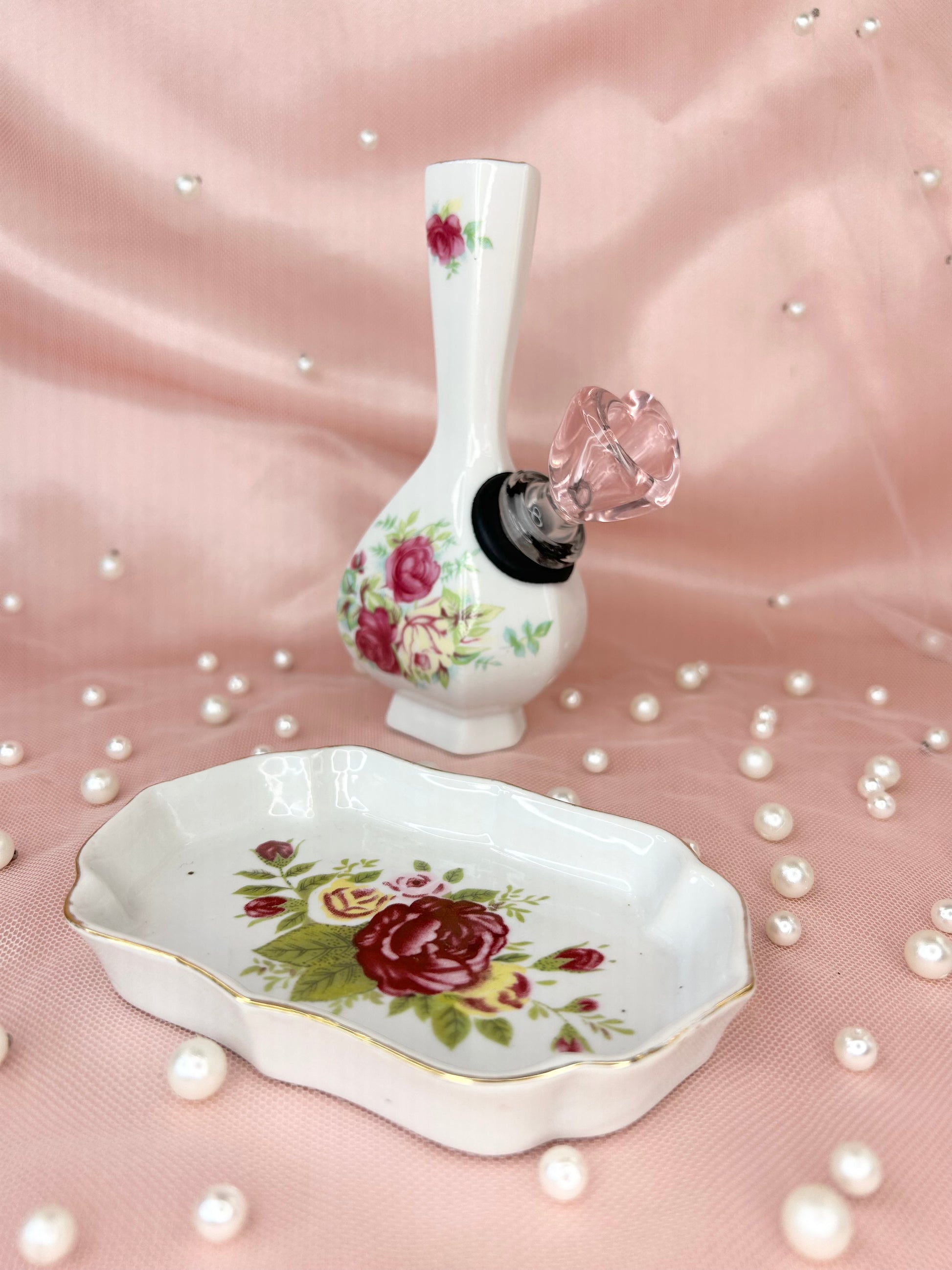 • Includes 14mm pink glass heart bowl piece, pipe and matching rose ashtray