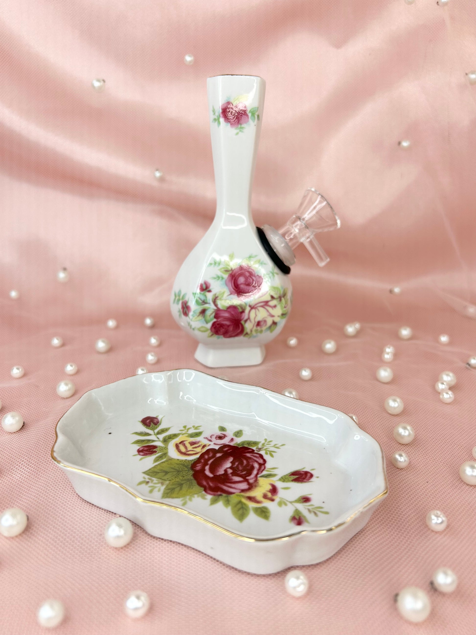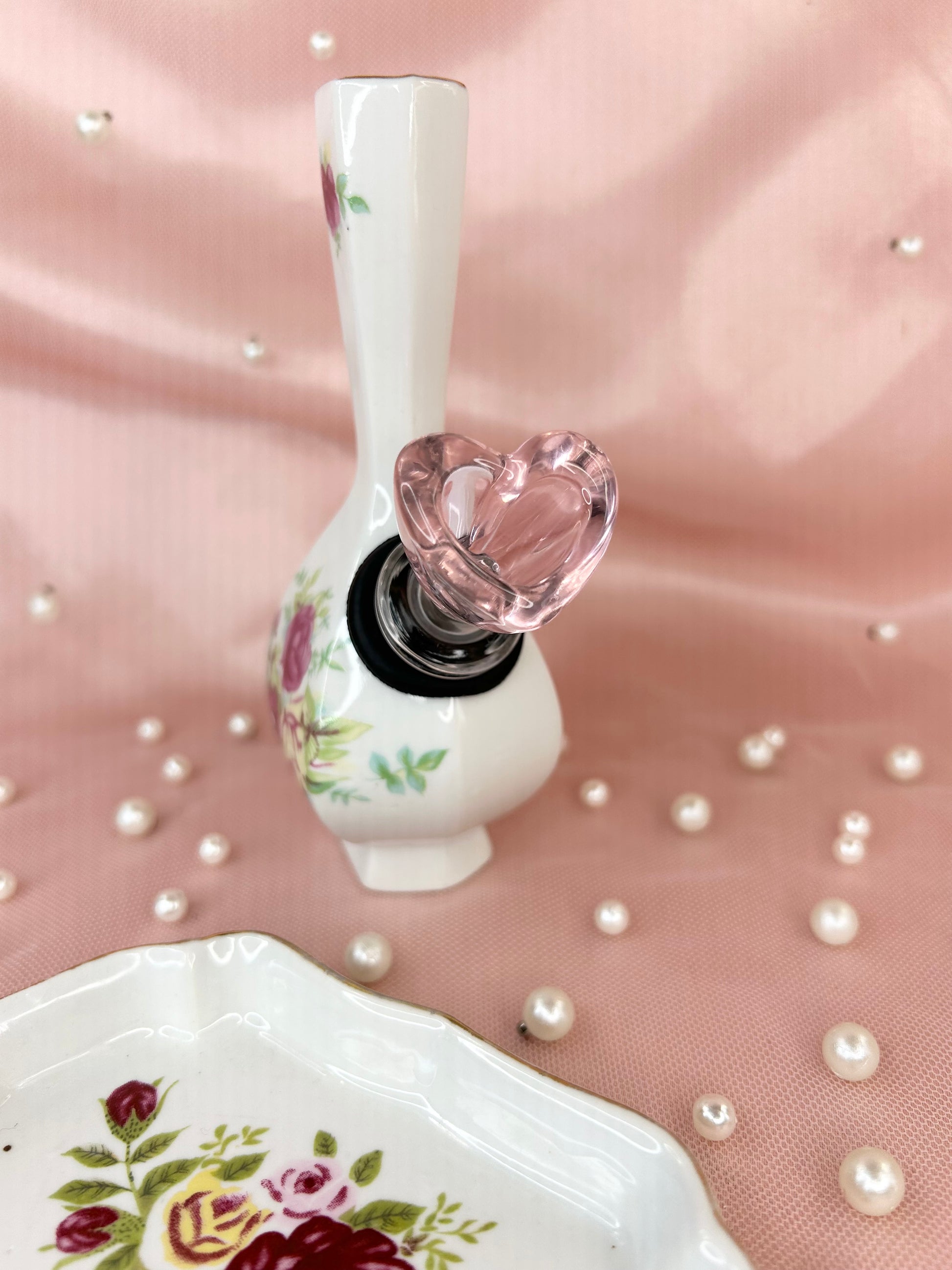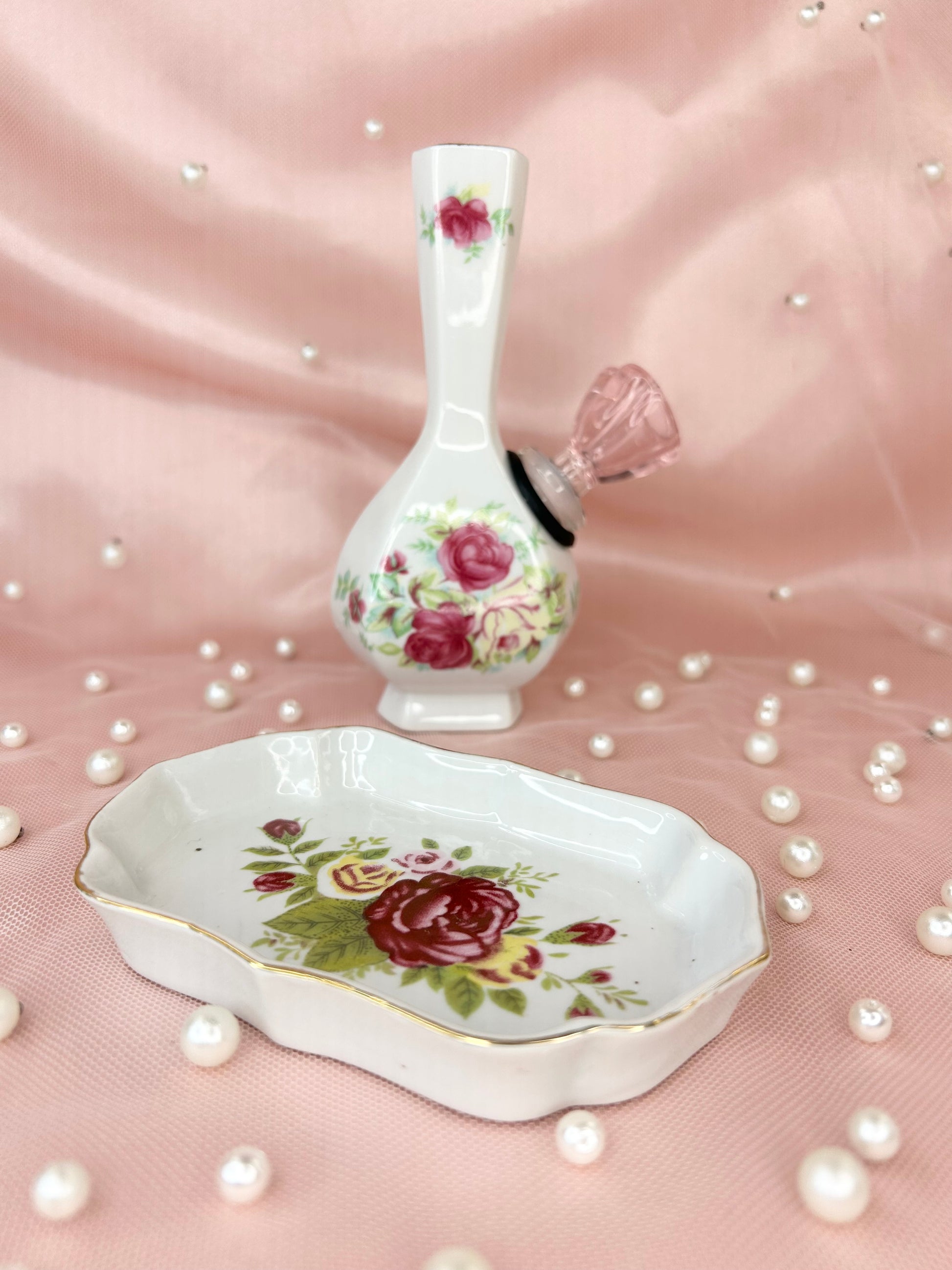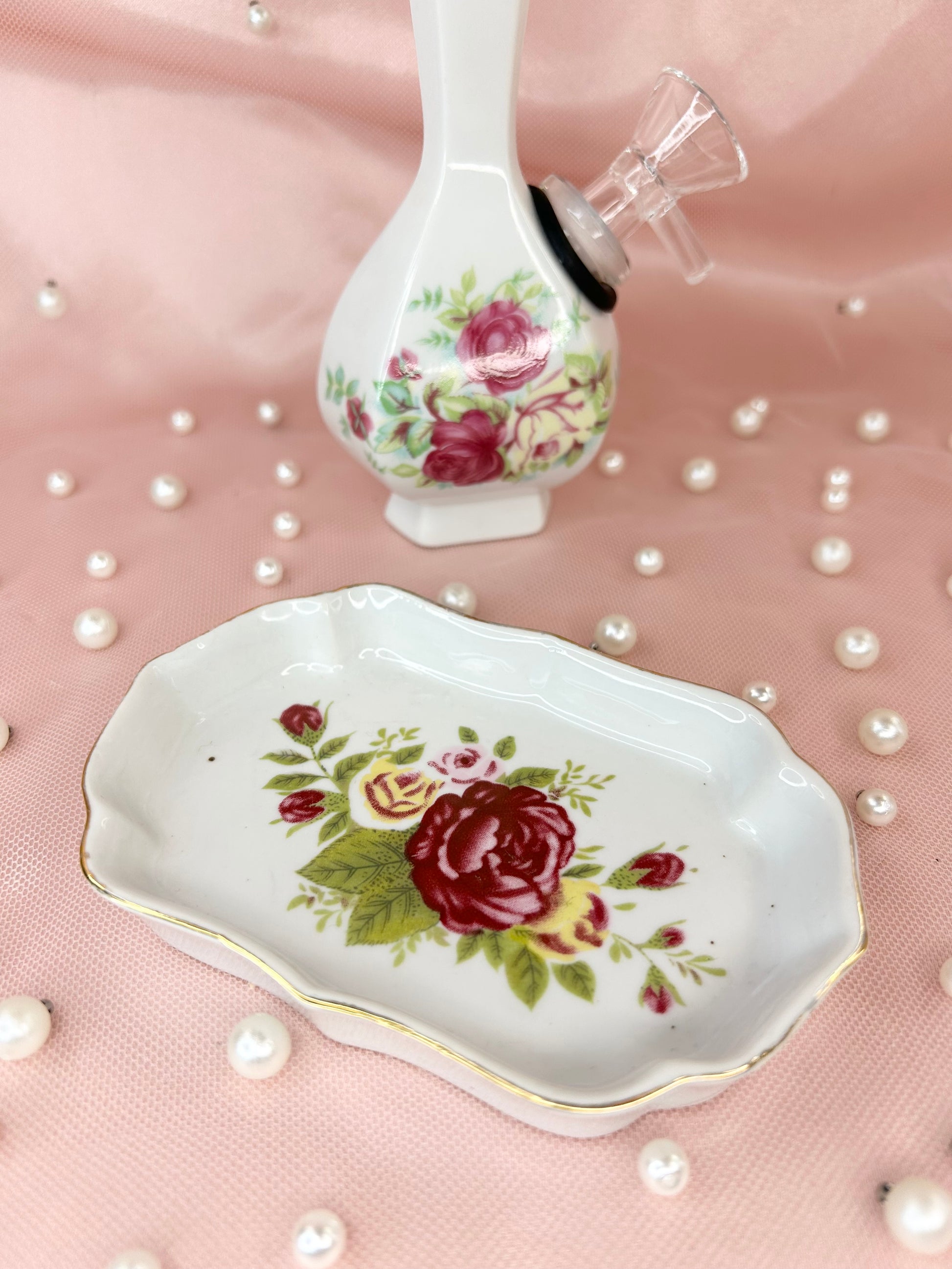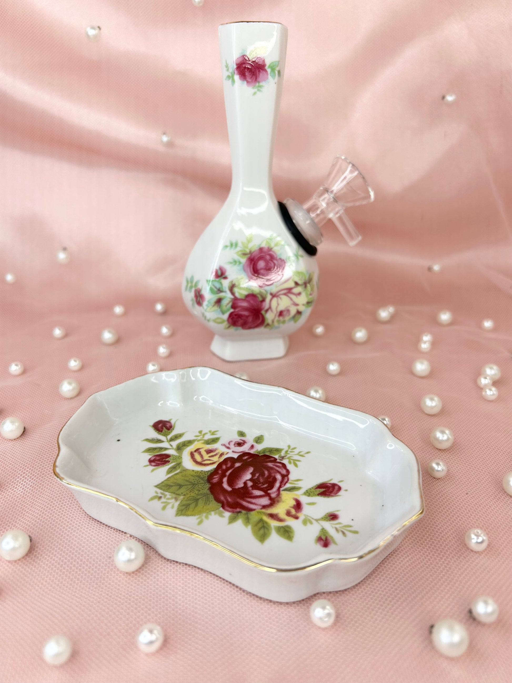 • Includes 14mm pink glass heart bowl piece, pipe and matching rose ashtray