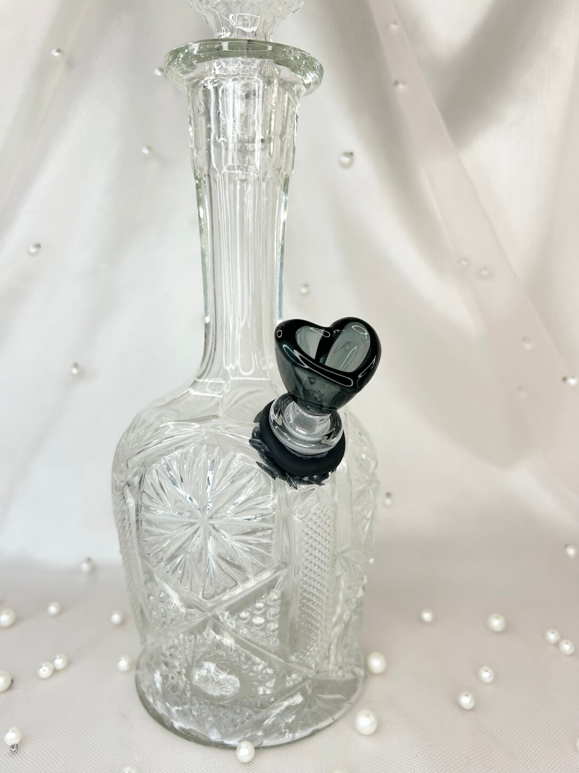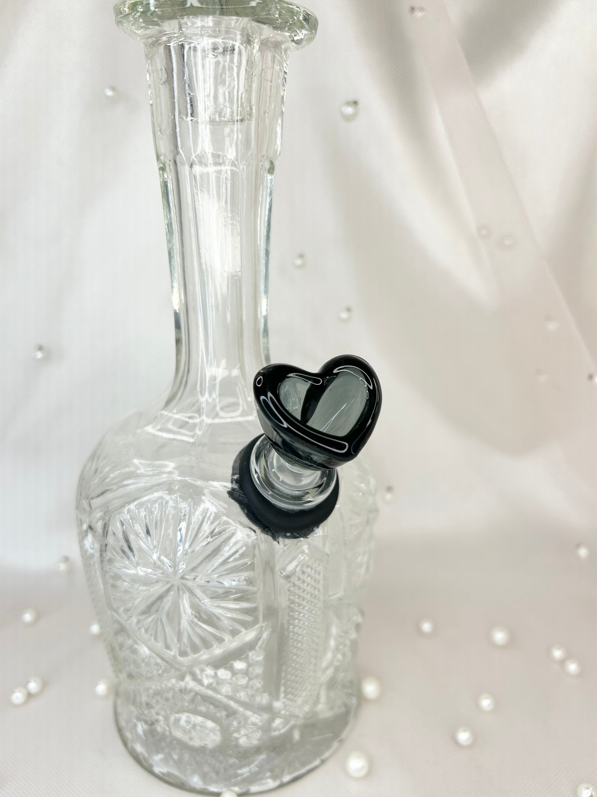 • Includes bong, 14mm black glass heart bowl piece and matching cup