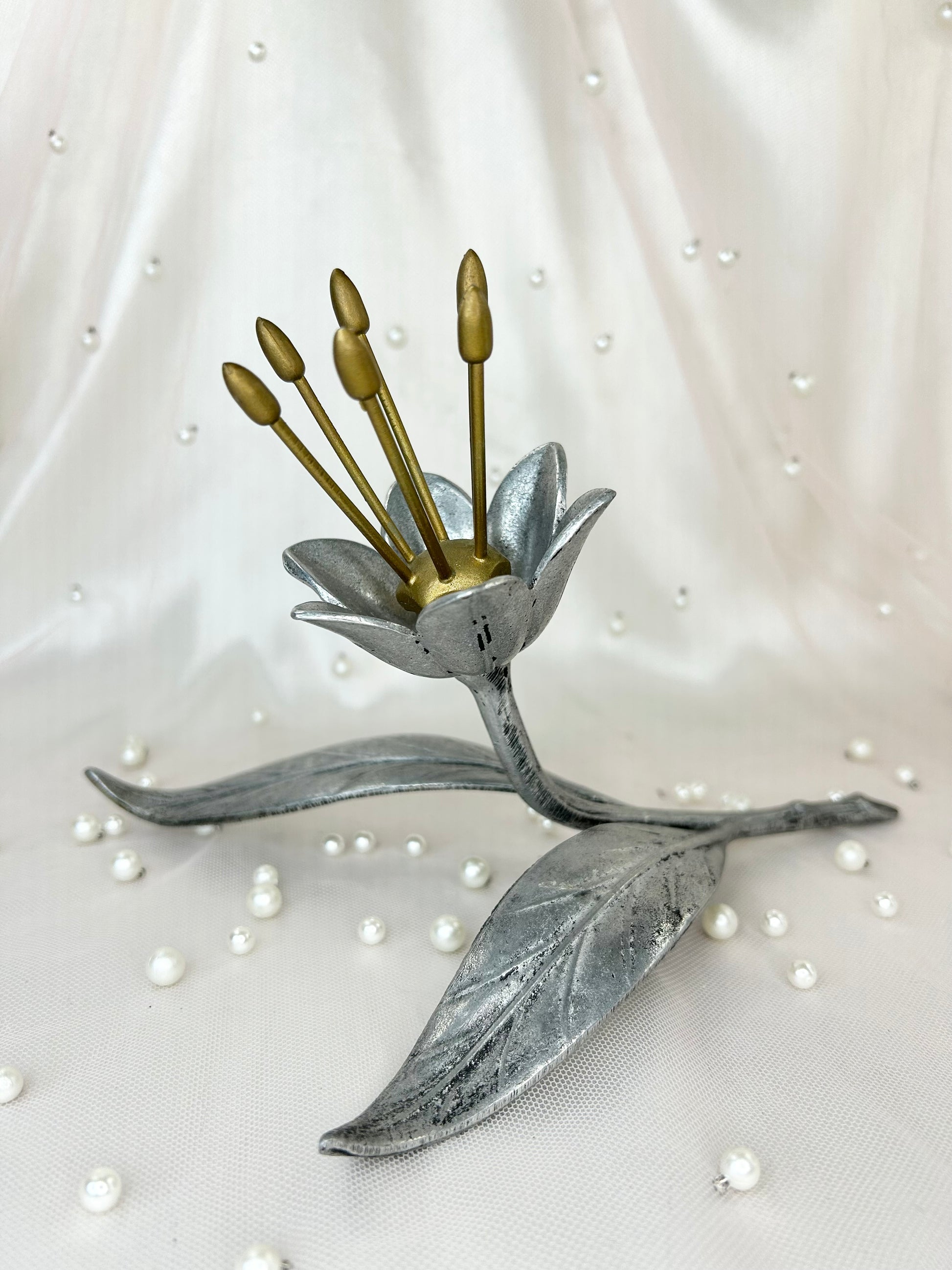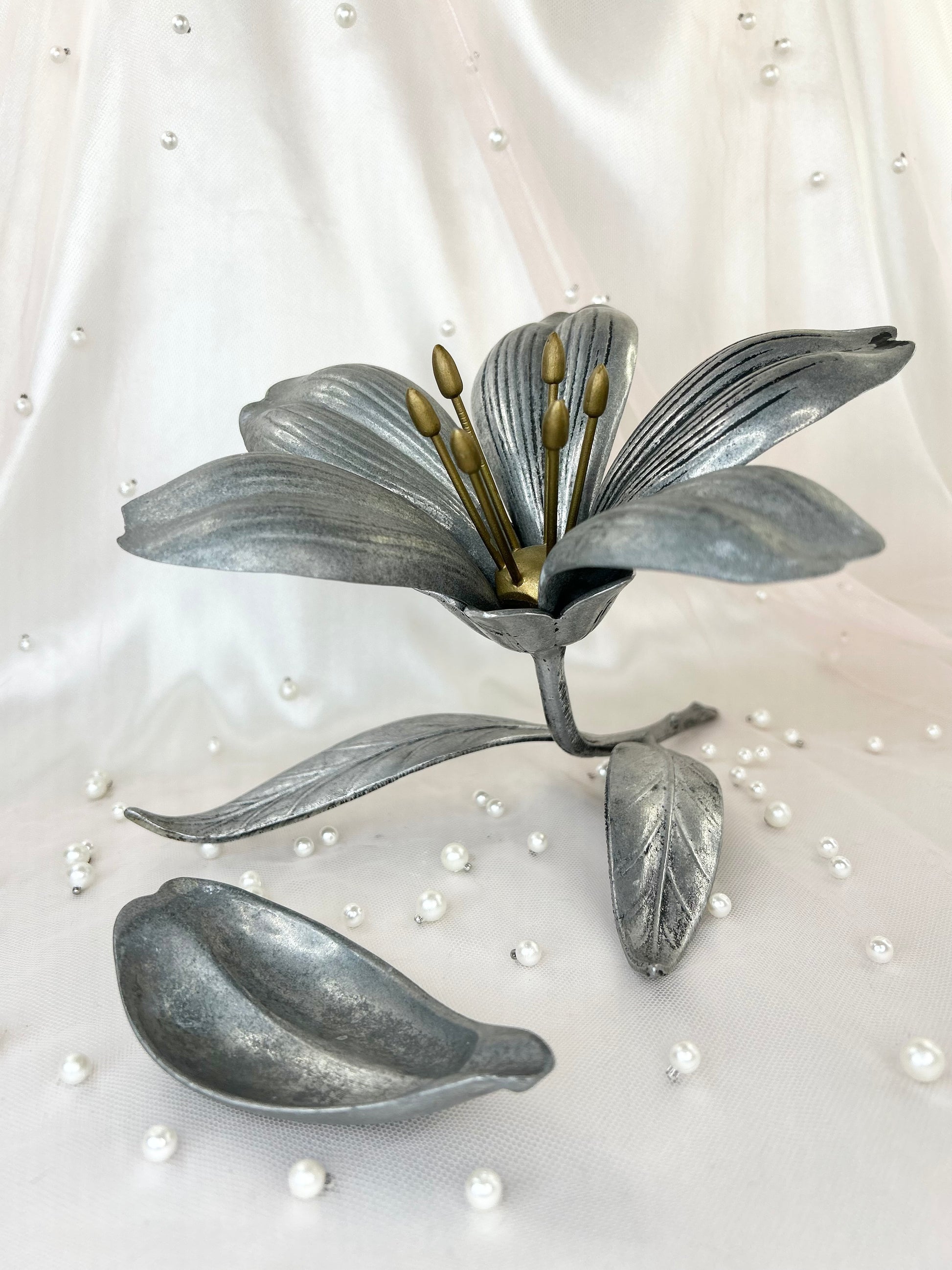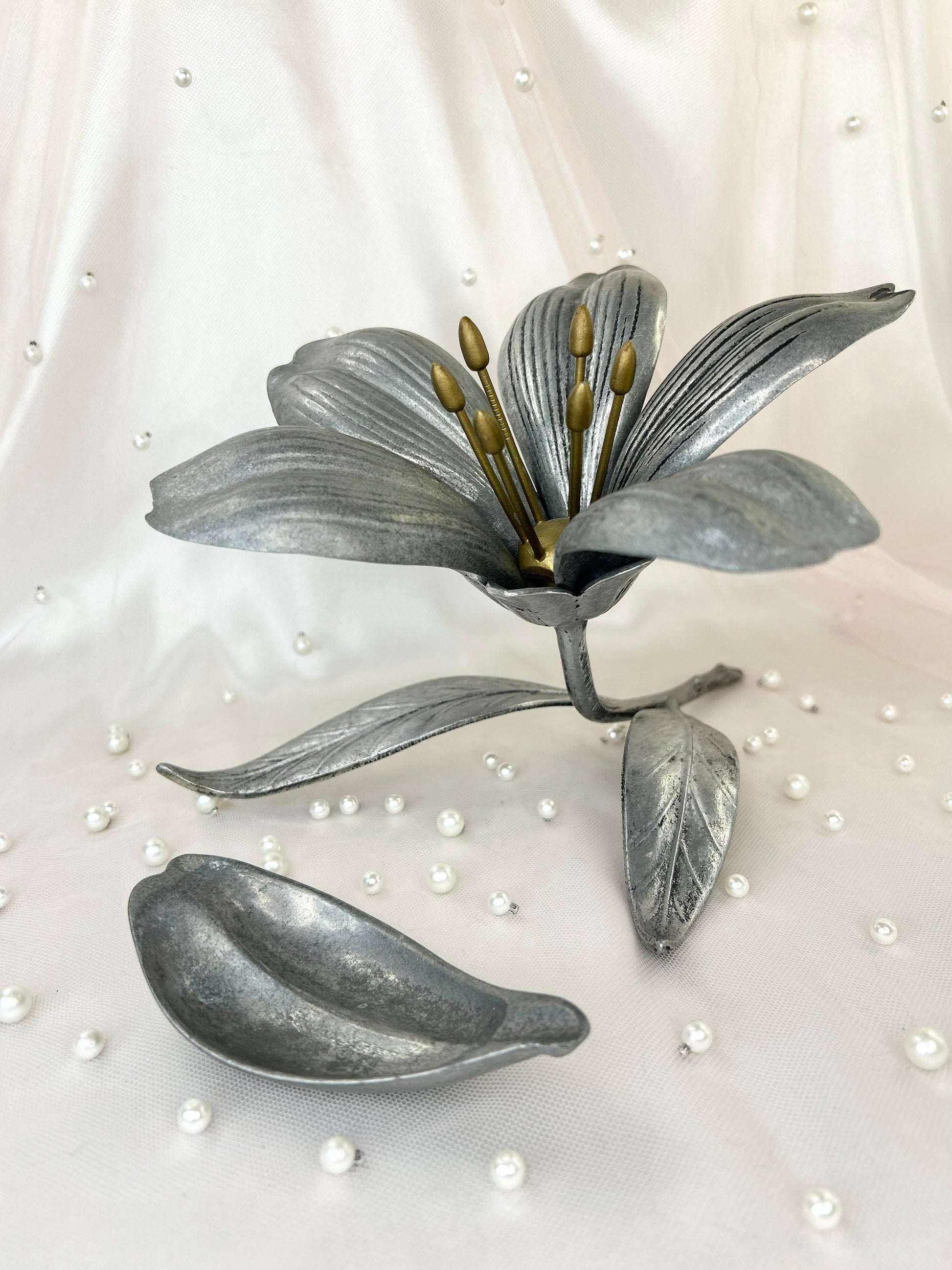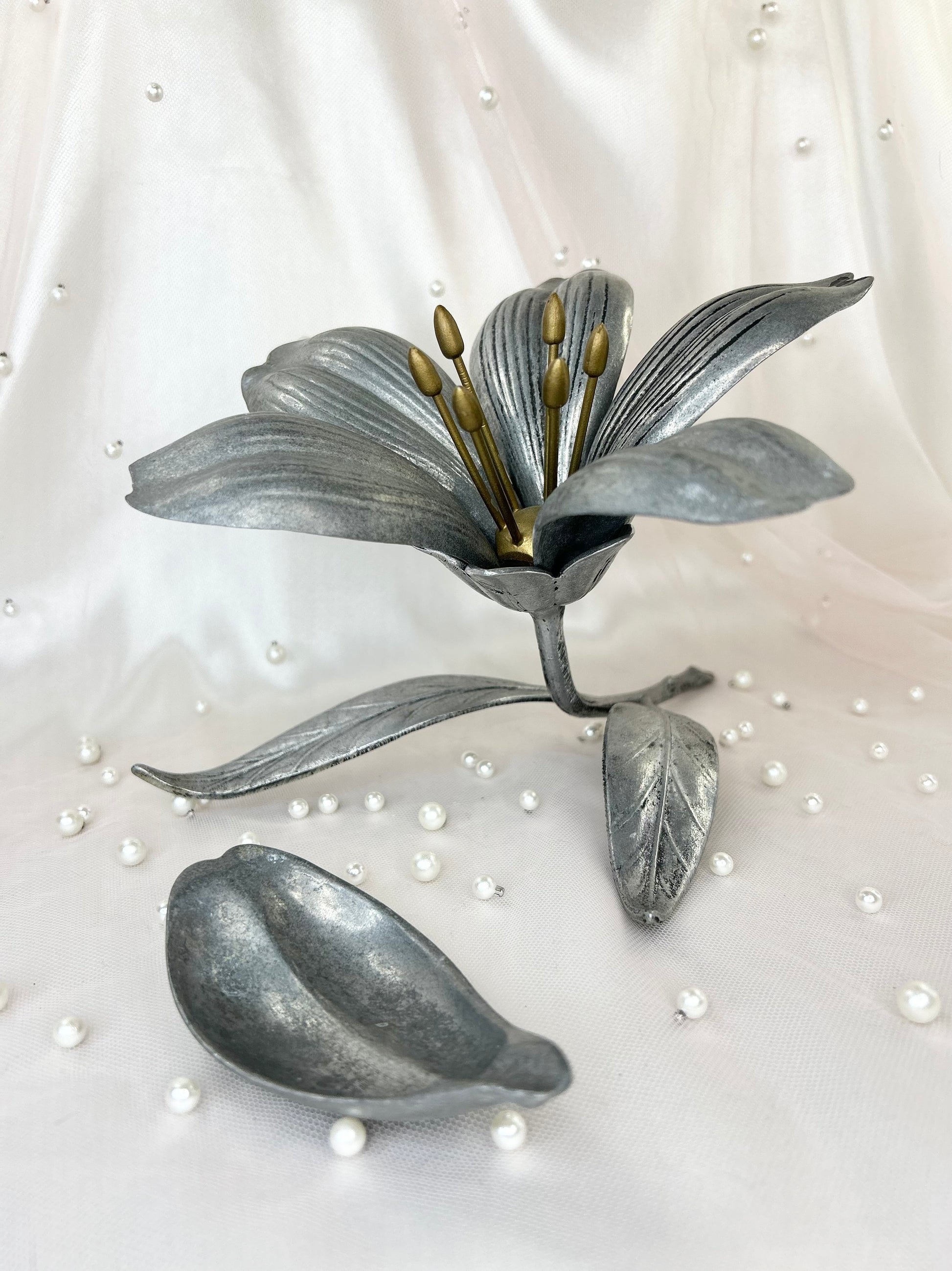 - 1950s Vintage S Agudo Metal Individual Petal Ashtray Flower