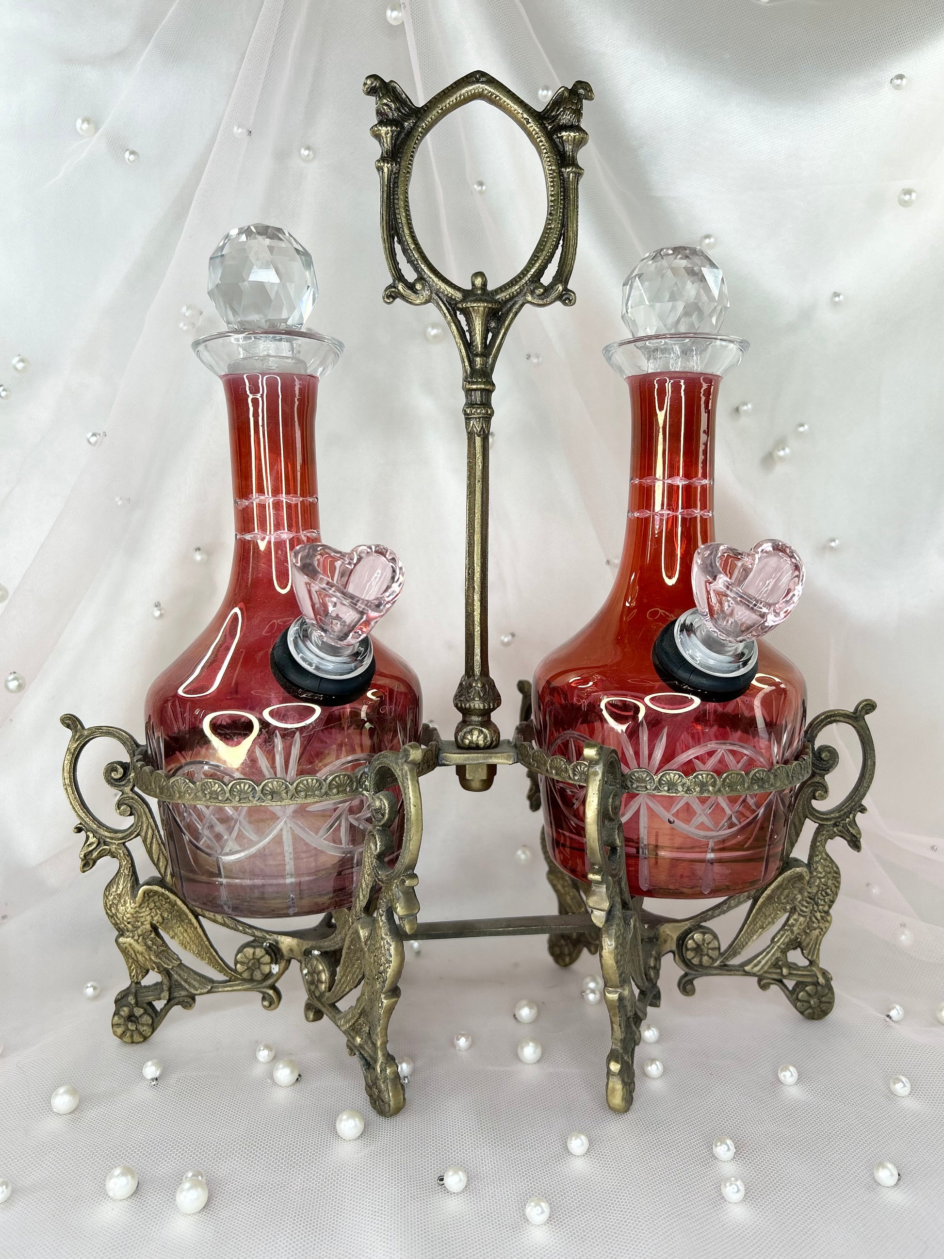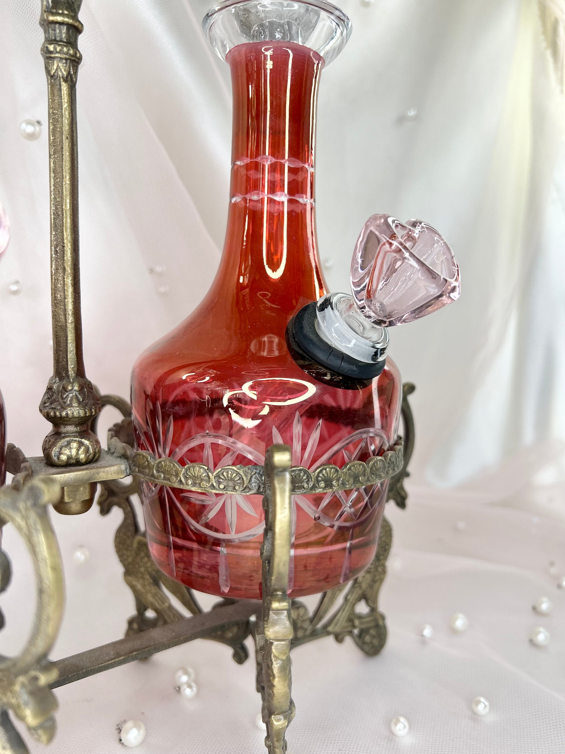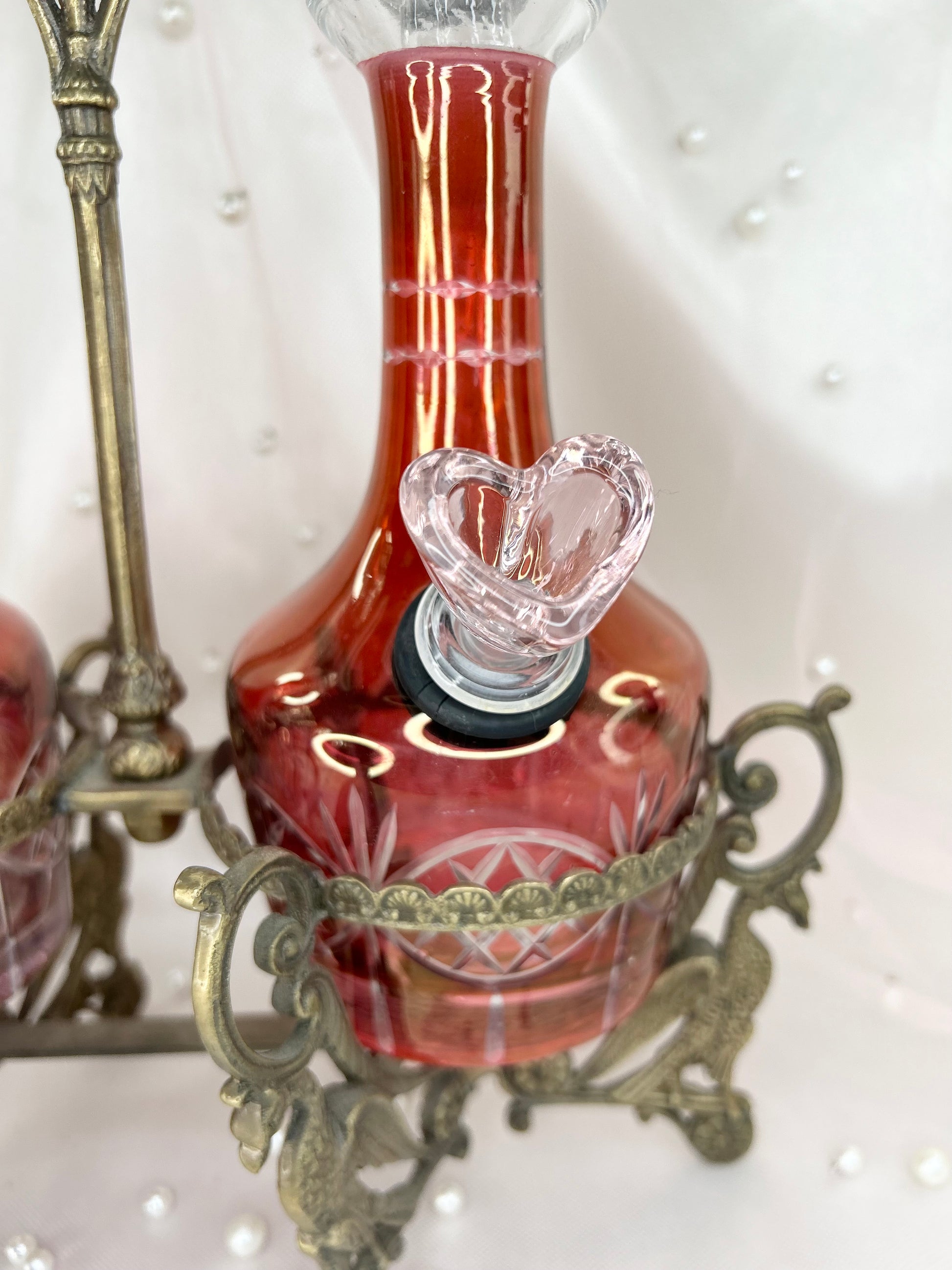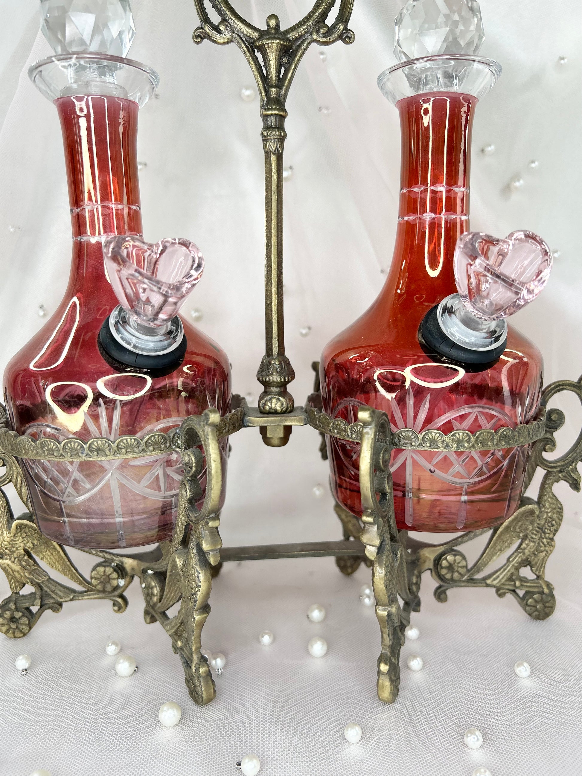 - Includes two bongs, two 14mm pink heart glass bowl pieces and ornate metal bird holder