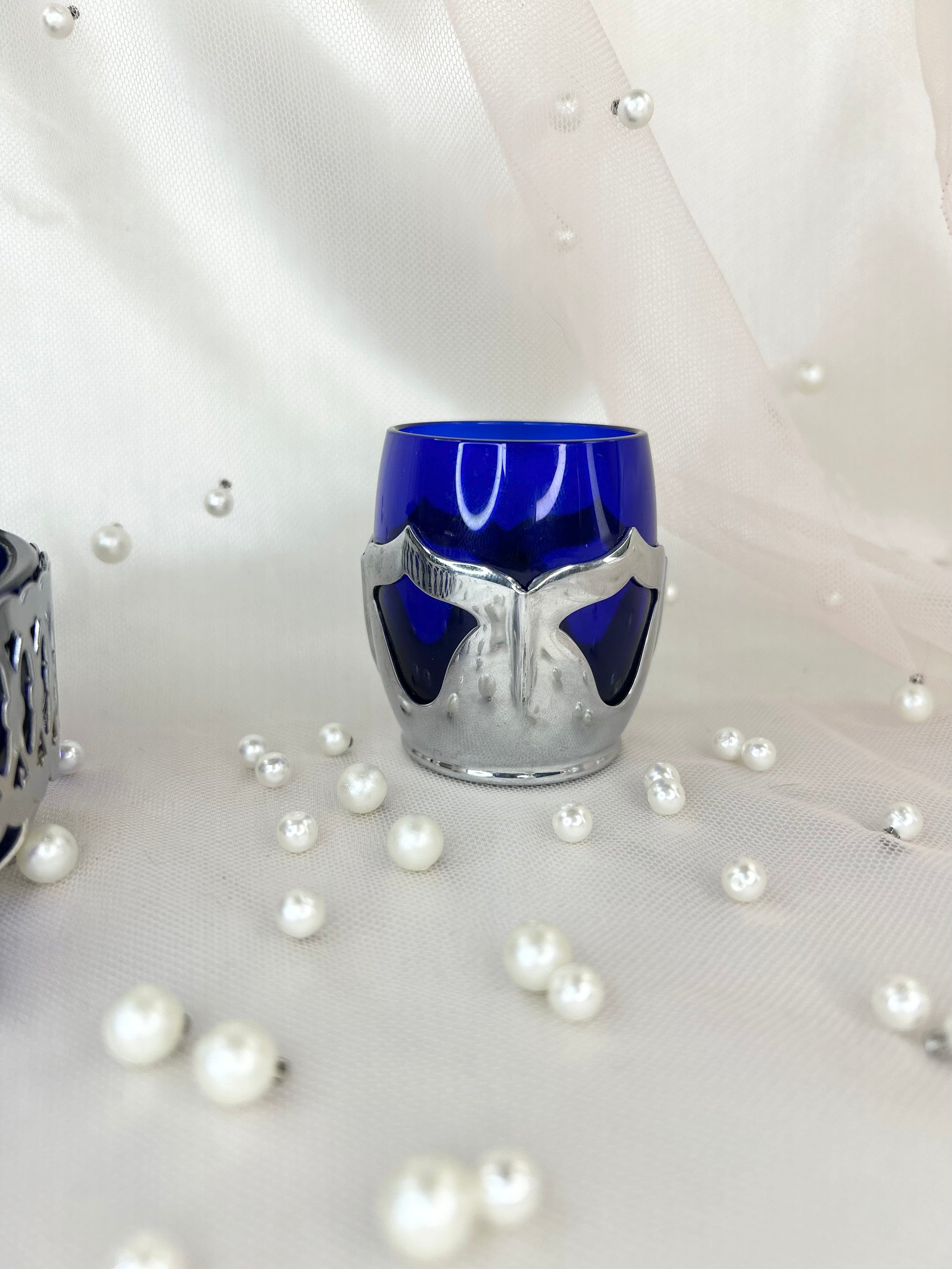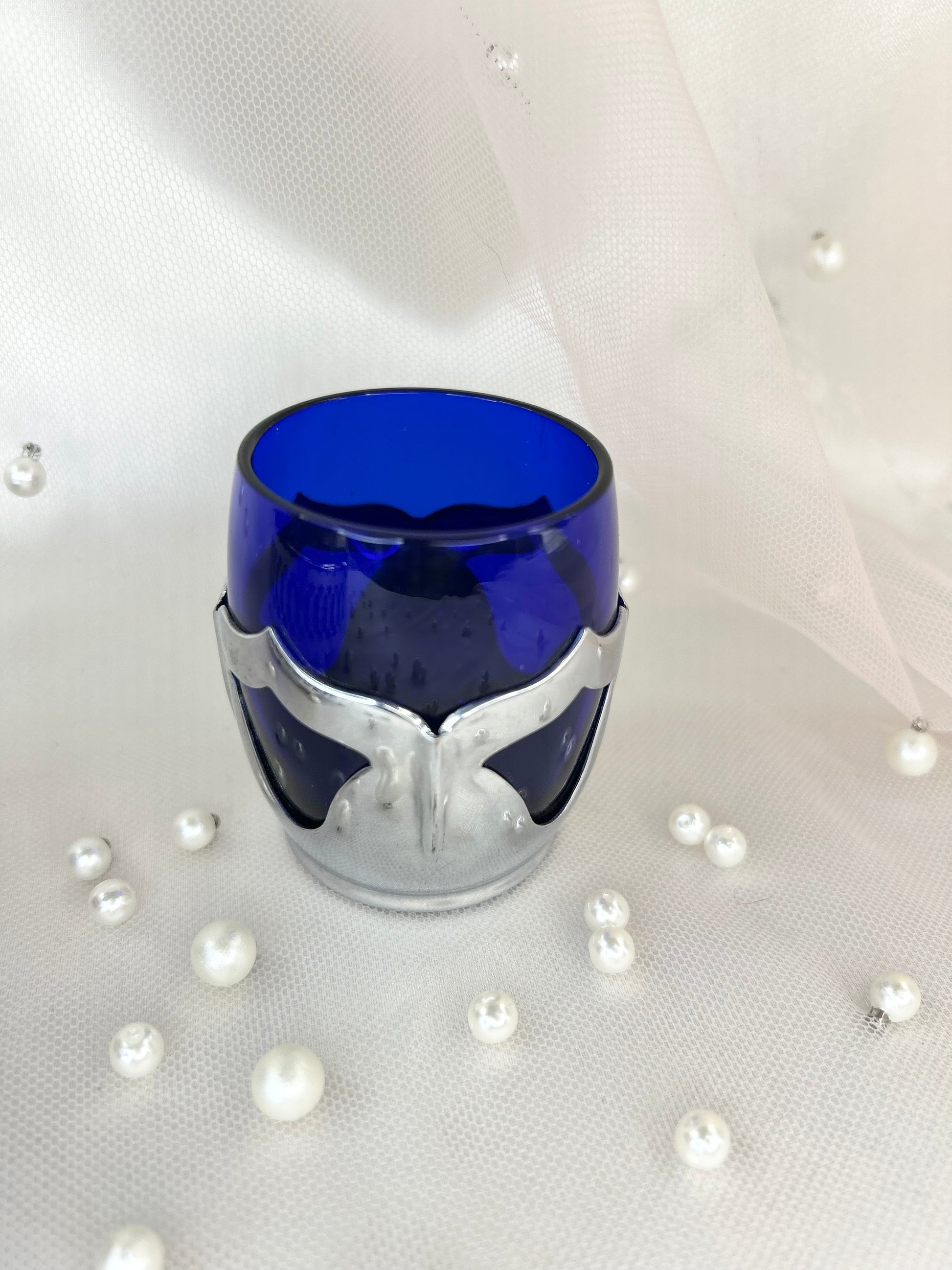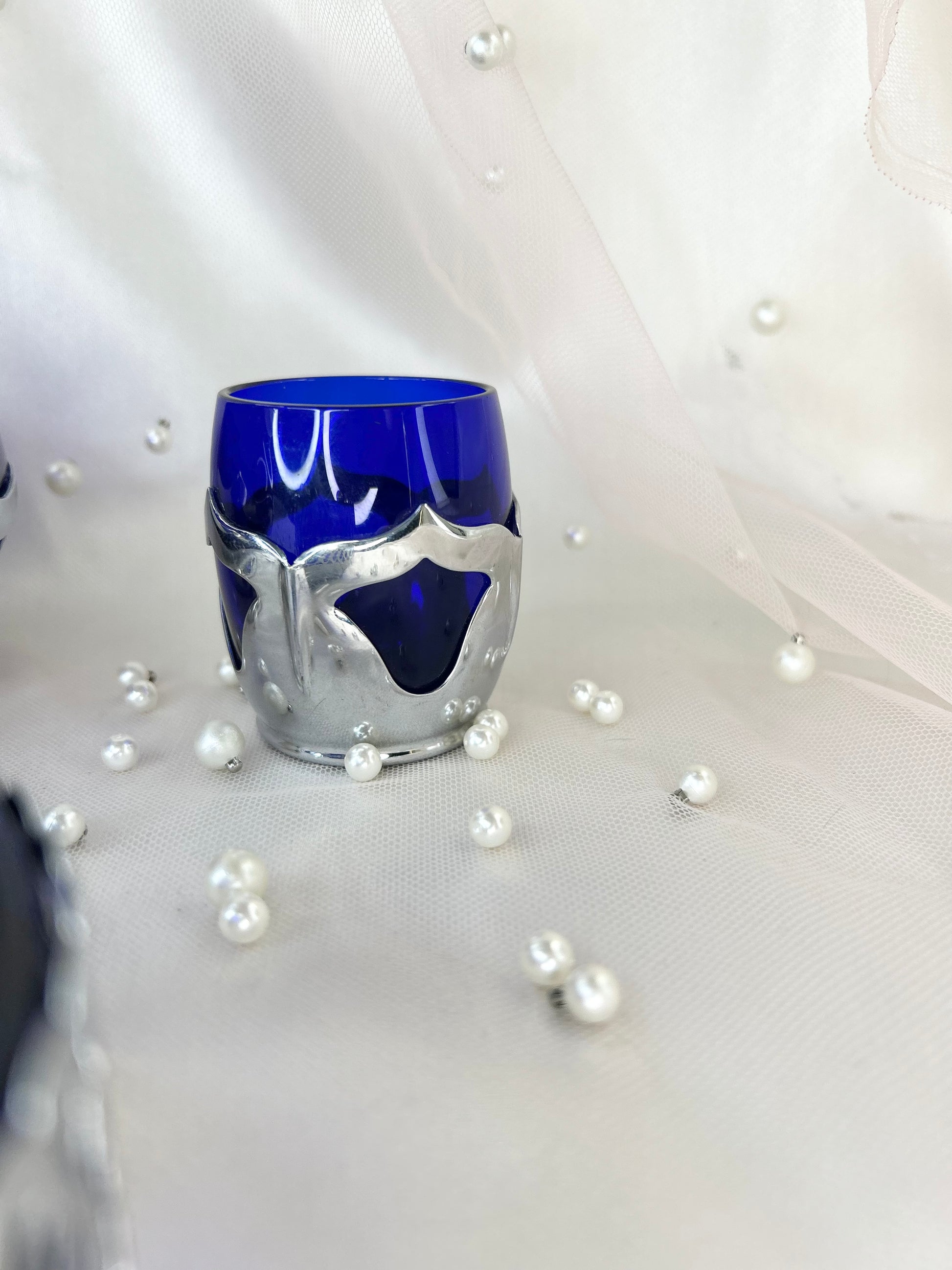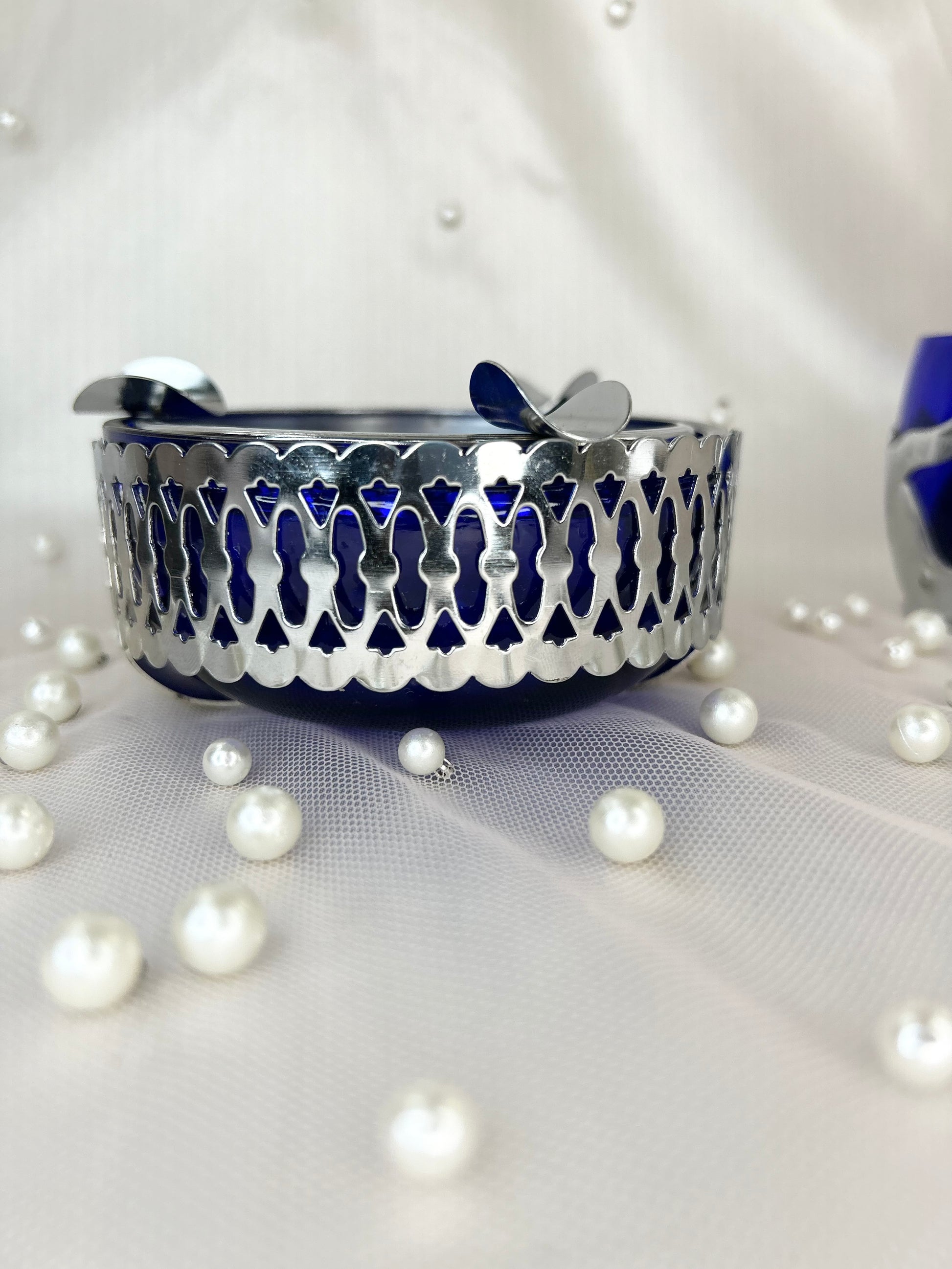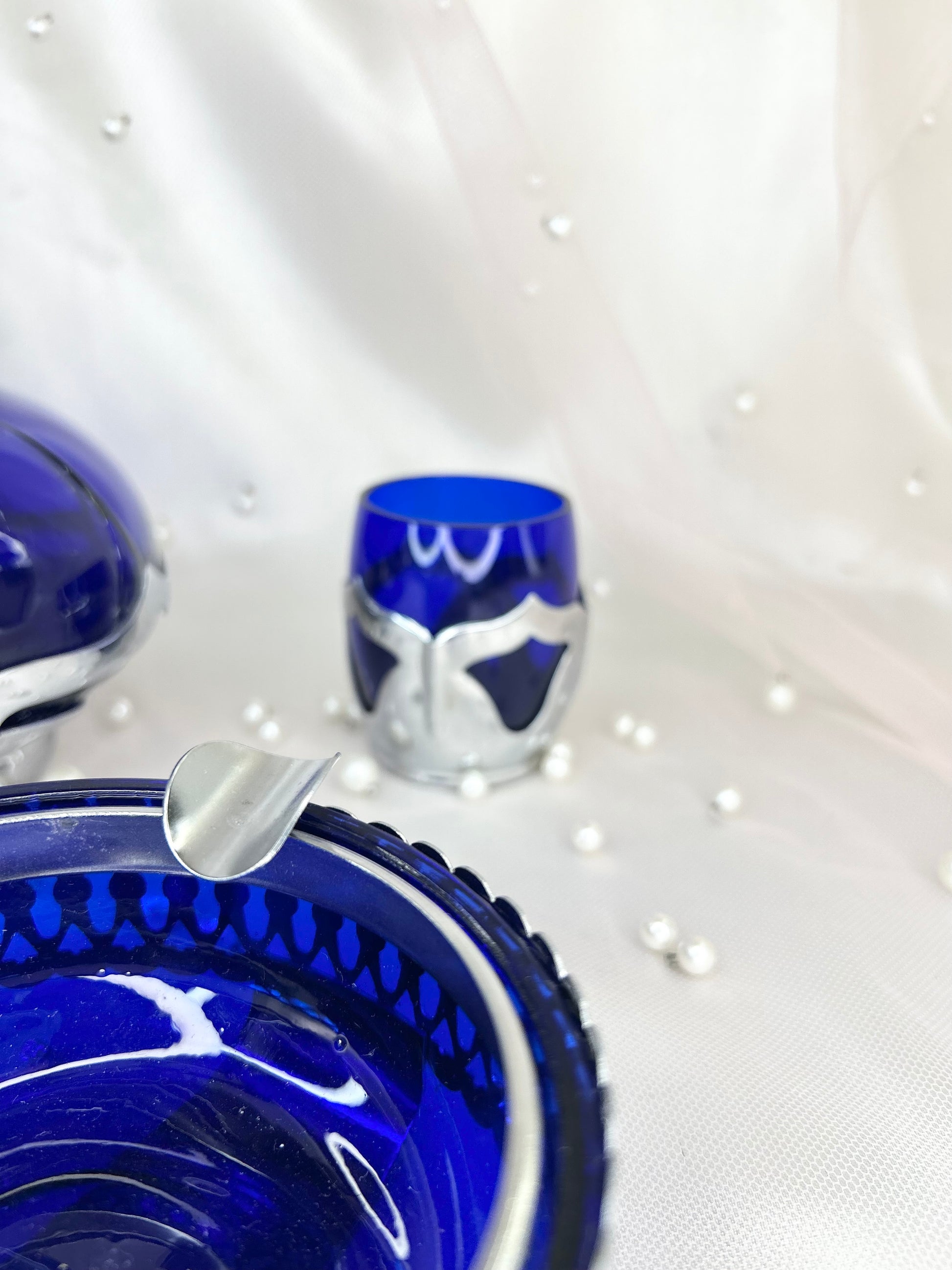 - Includes 14mm blue glass heart bowl, ashtray and small matching glass