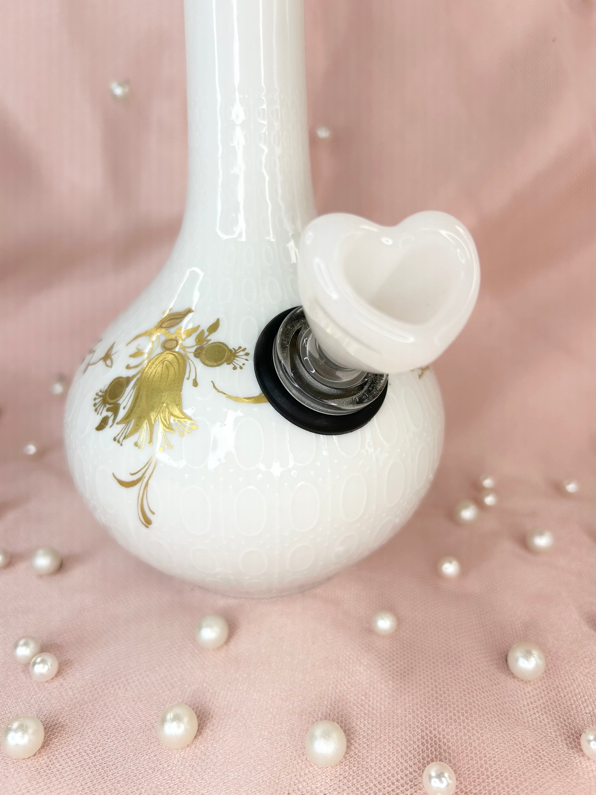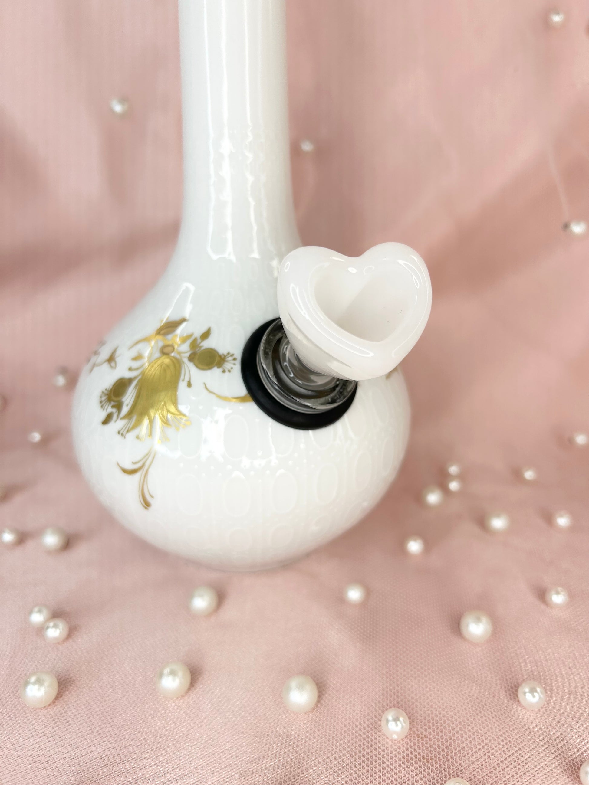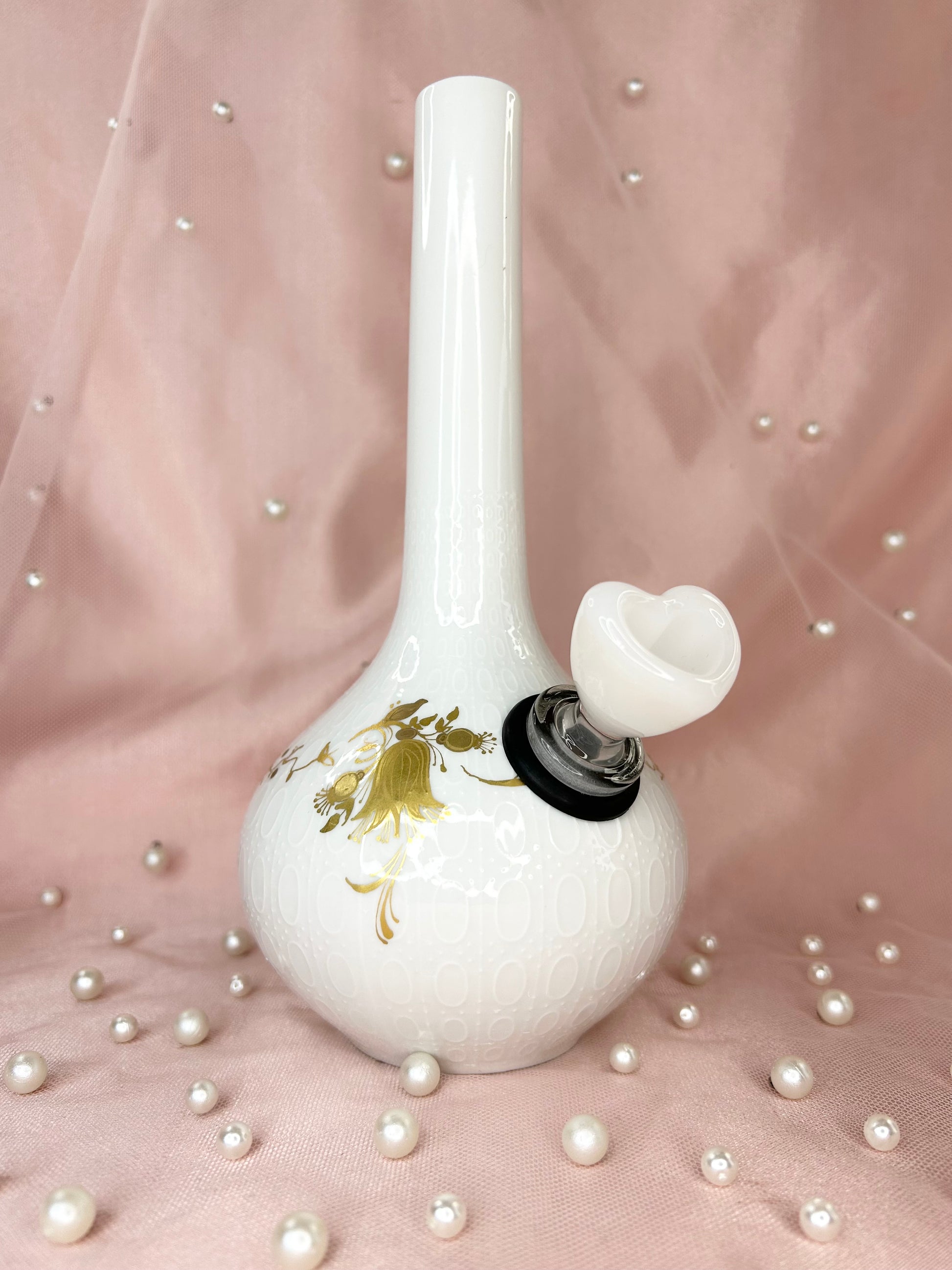 • Includes 14mm white glass heart bowl
