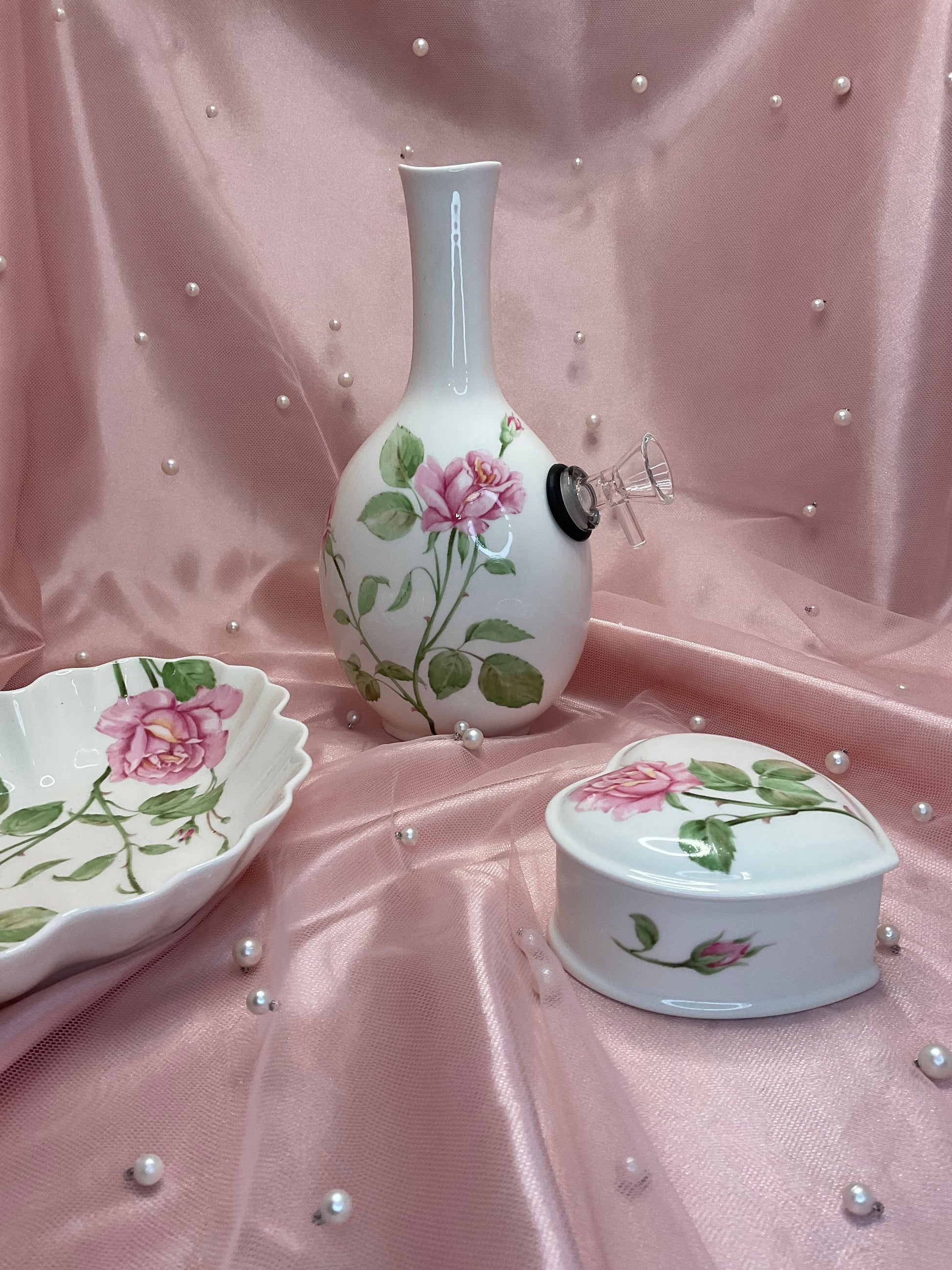 - Includes 14mm bowl piece, bong, heart box and matching tray