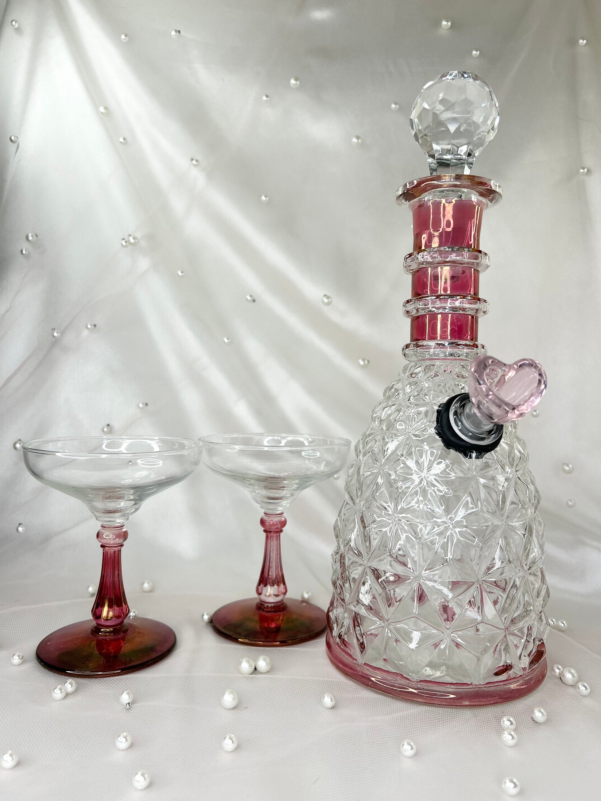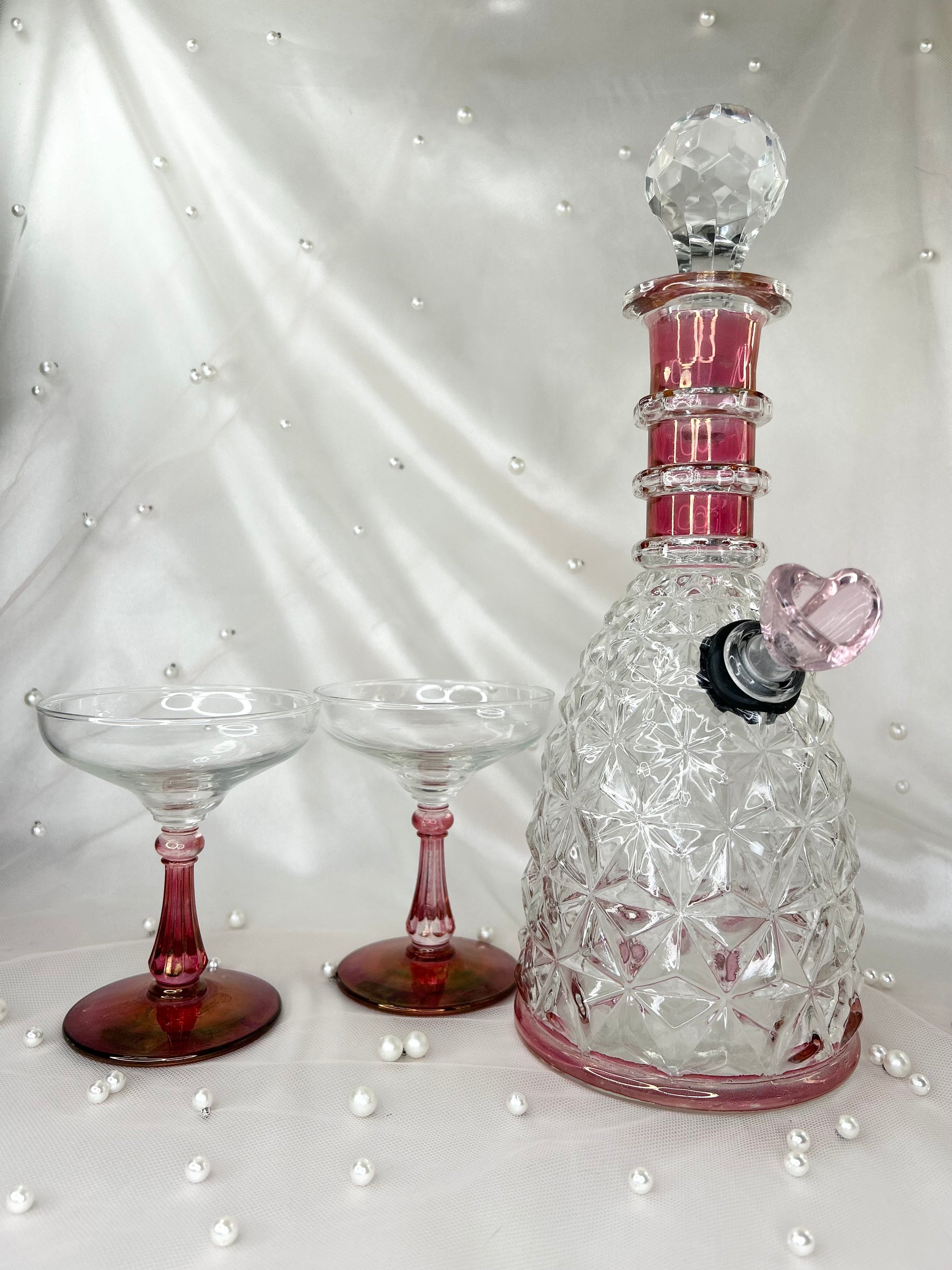 - Includes Bong, Pink Heart 14mm Bowl Piece & Two Matching Glasses