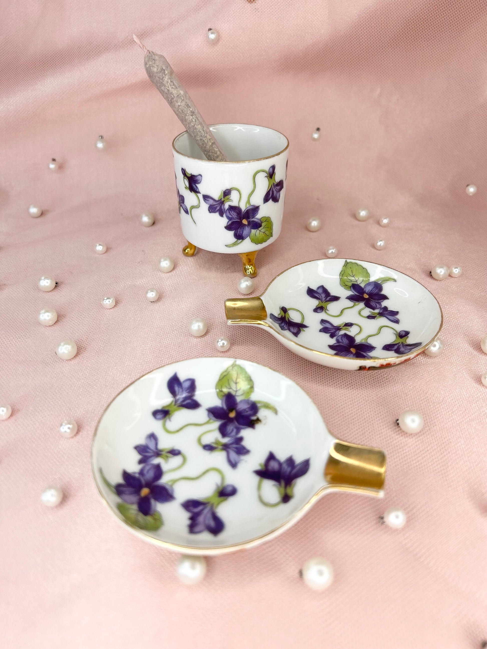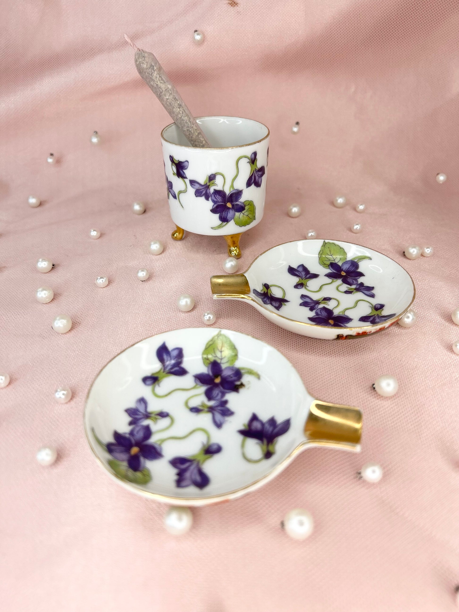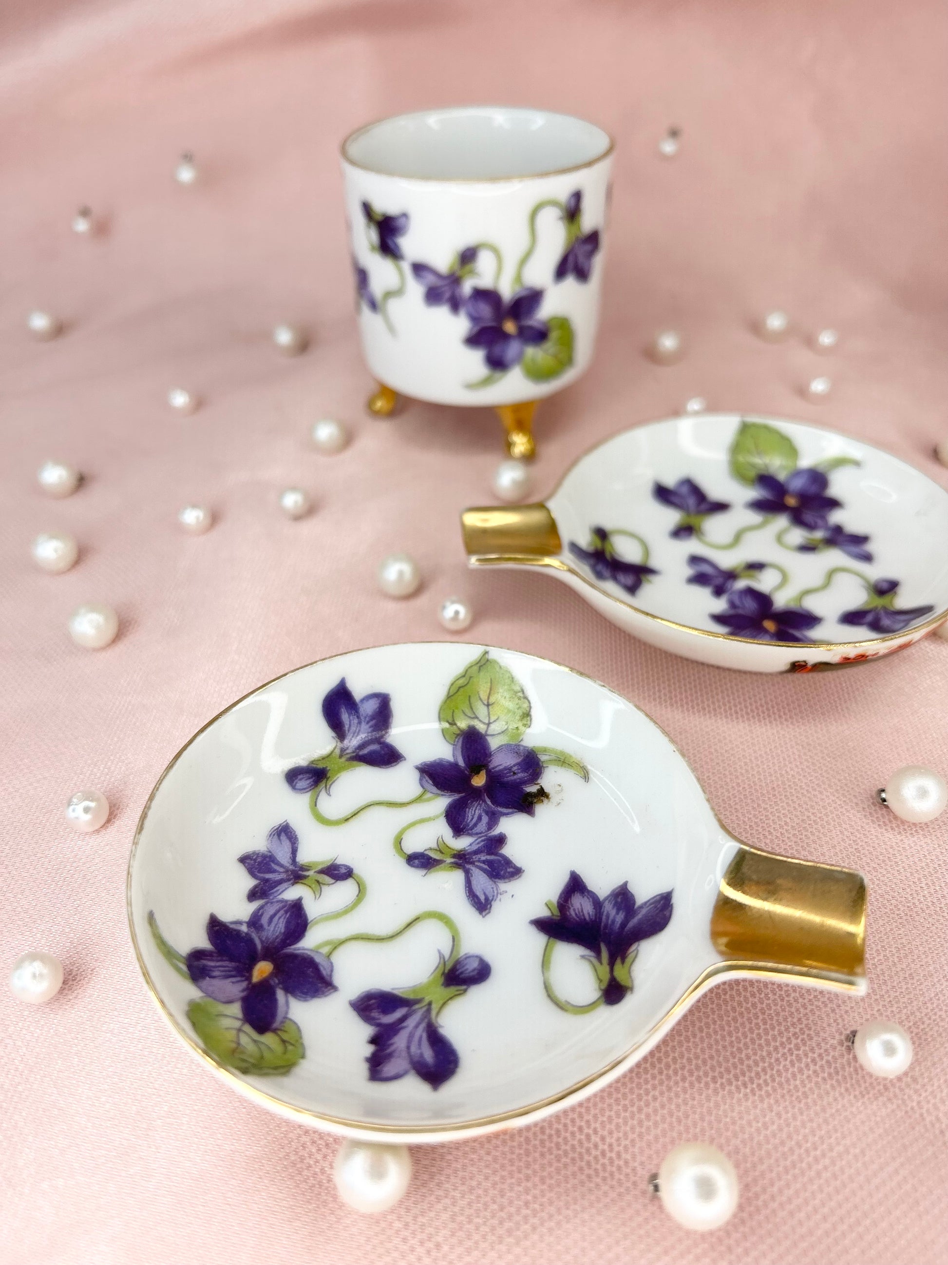 - Vintage Violet Lefton Ashtray Set