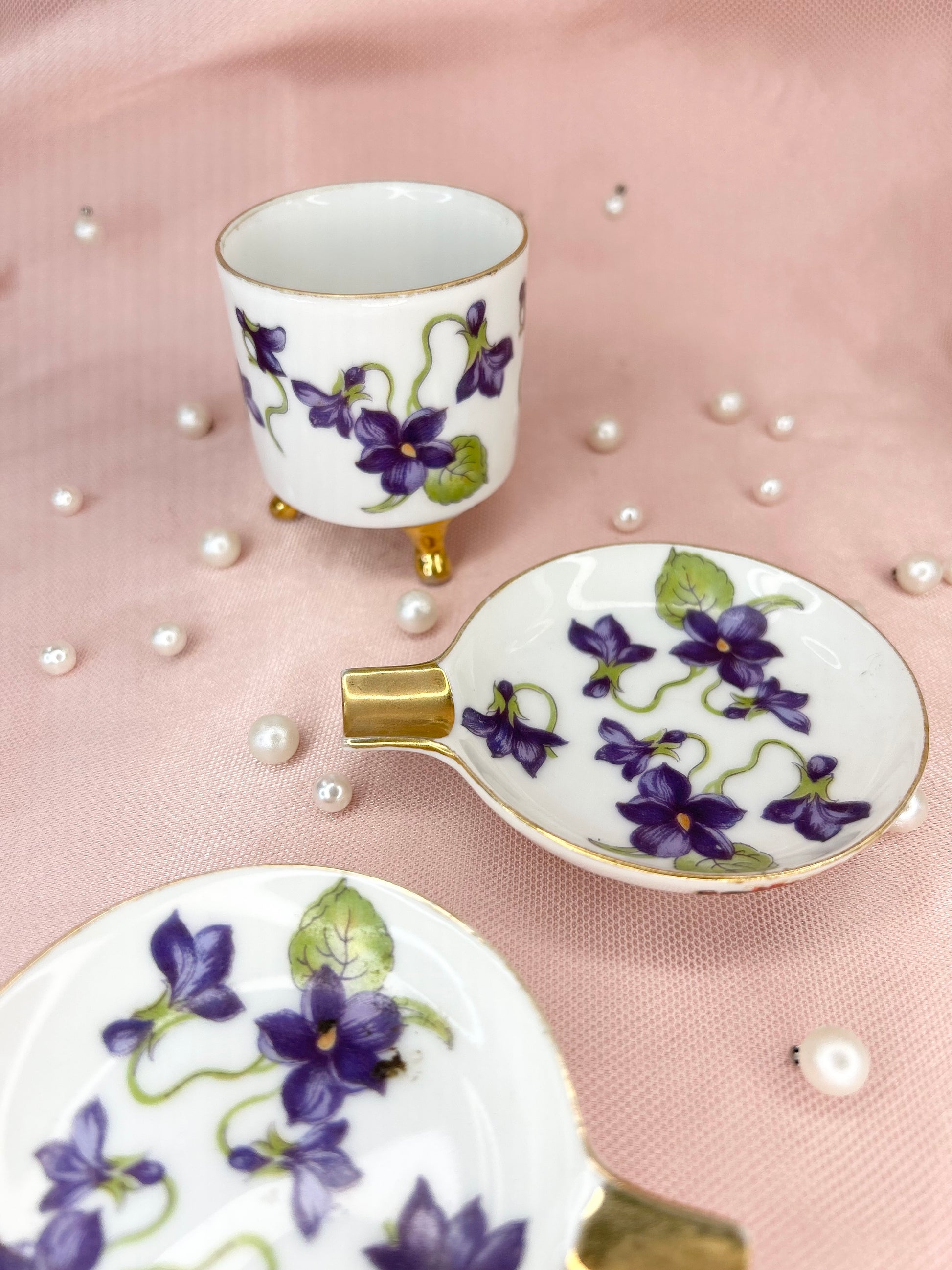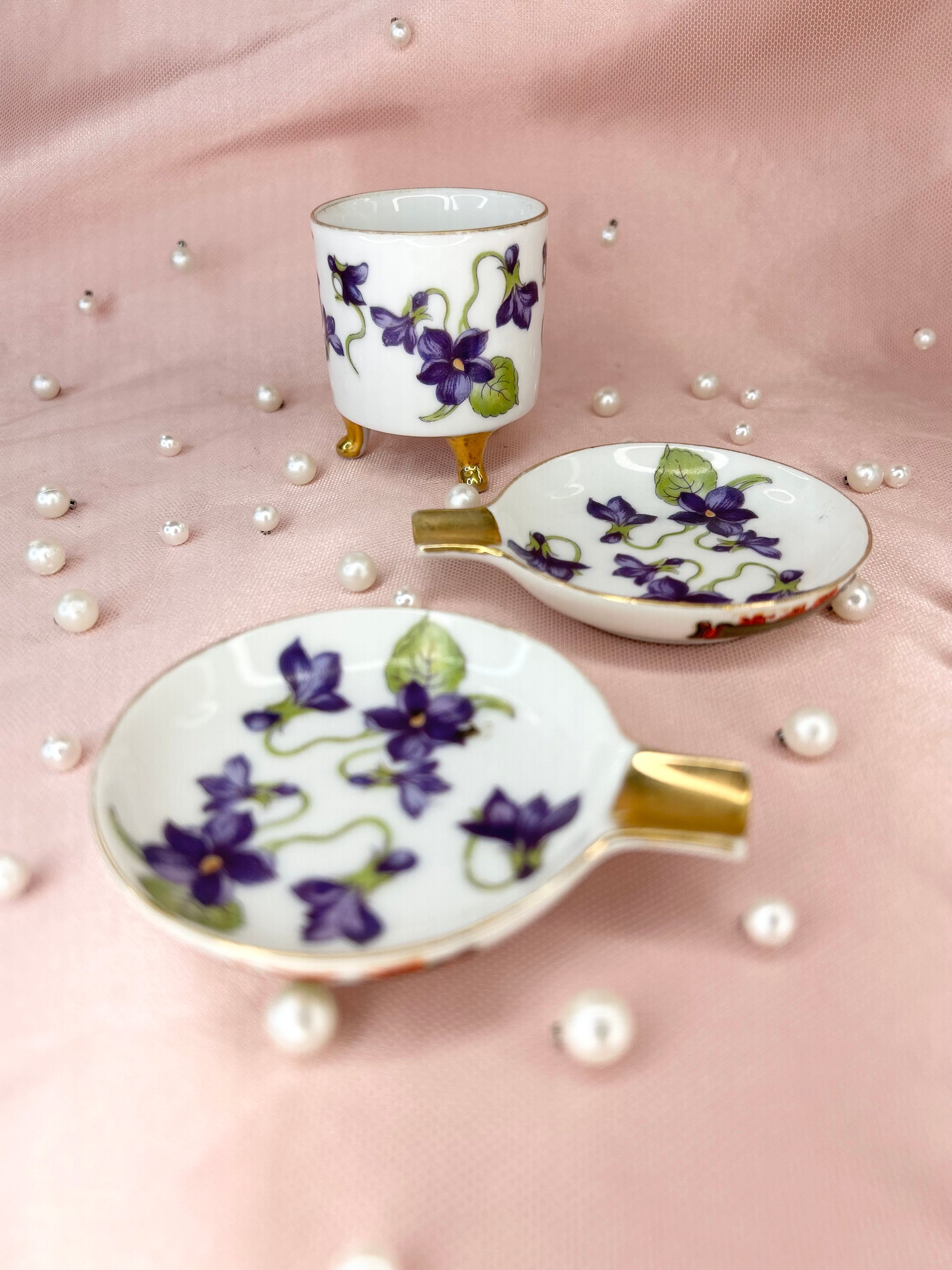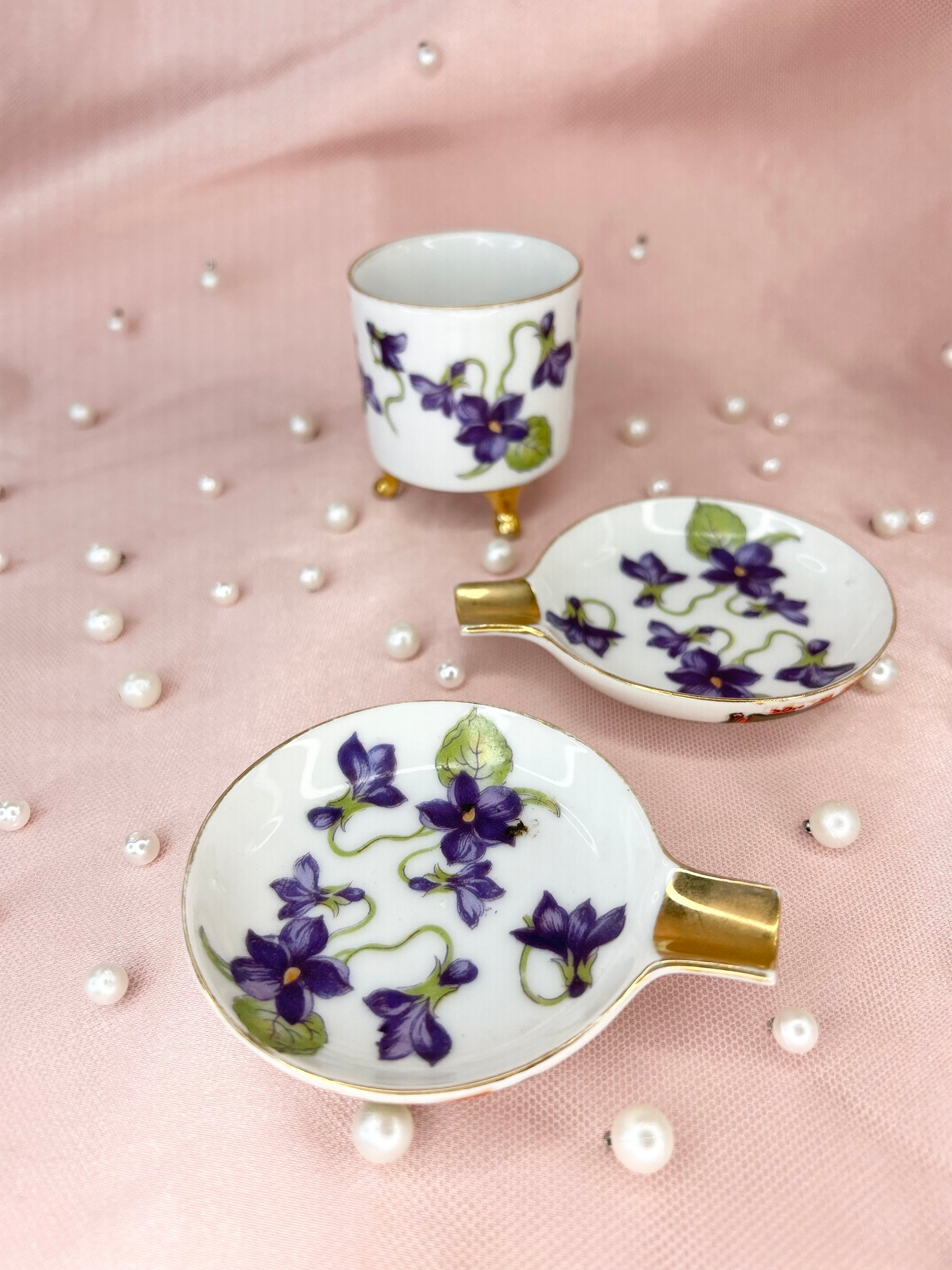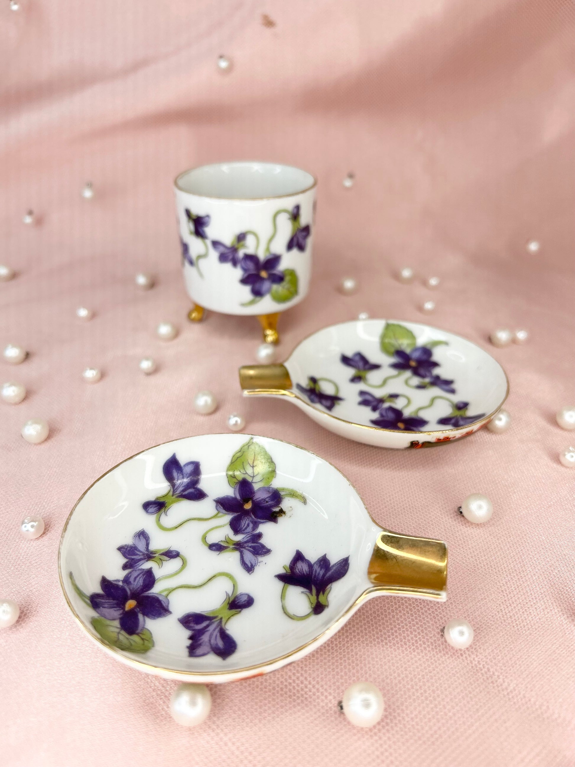 - Vintage Violet Lefton Ashtray Set